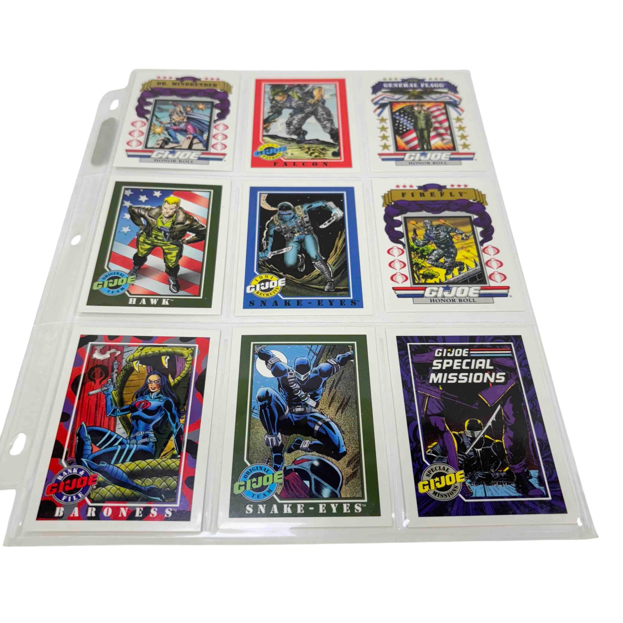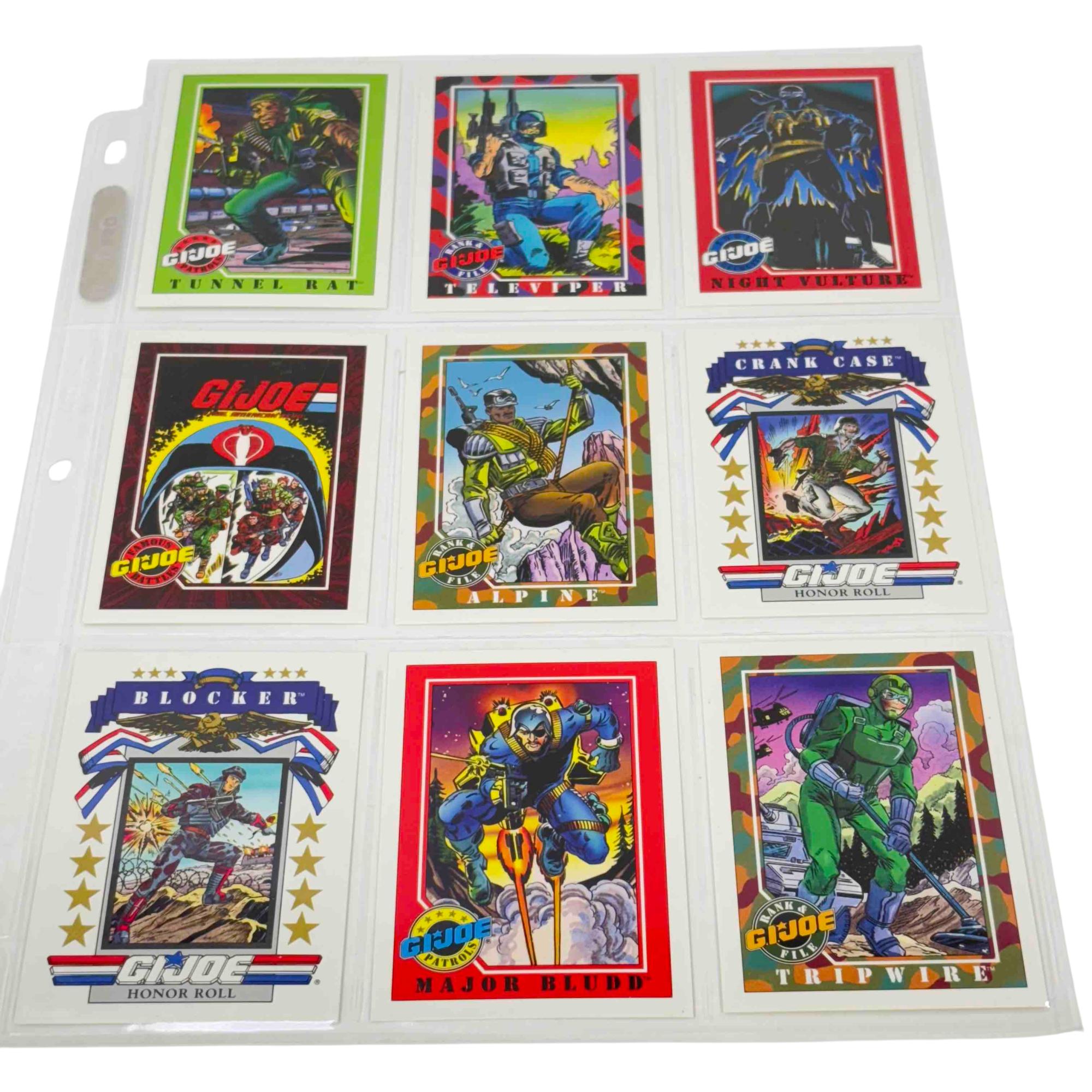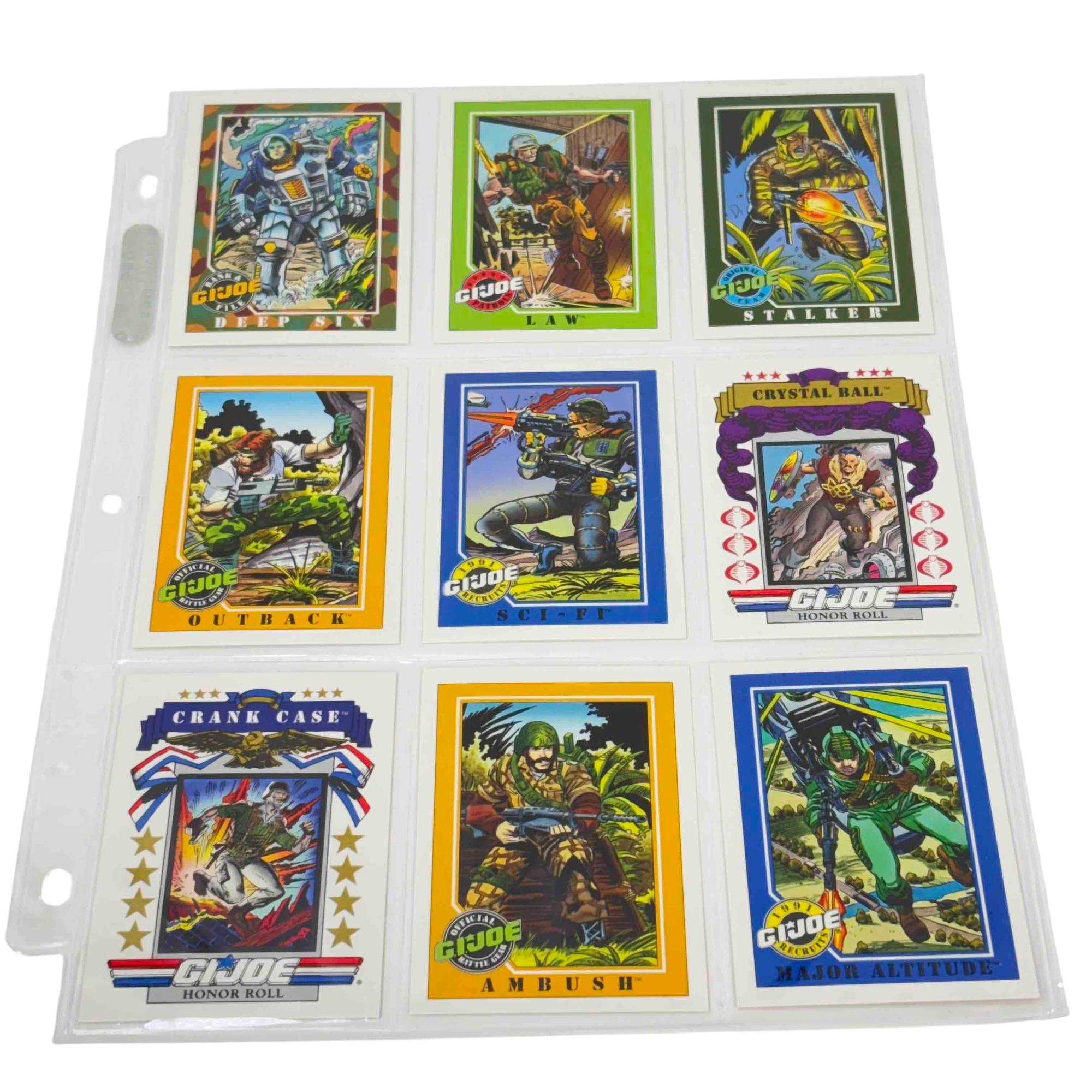 This is a complete set of 74 vintage G.I. Joe trading cards from Hasbro, featuring classic characters, action-packed scenes, and unique artwork that will excite any collector or fan of the iconic G.I. Joe franchise. Preserved in protective plastic sleeves, these cards are perfect for display or investment, bringing the nostalgia and adventure of the original G.I. Joe universe right to your collection.