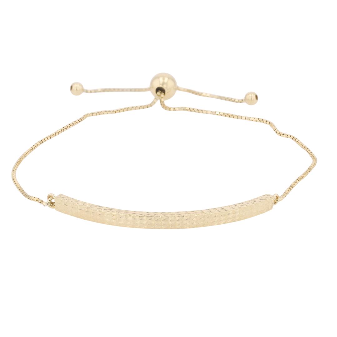 3mm Diamond Cut Curved Bar Box Chain 9" Bolo Bracelet 14k Yellow Gold 2.27 Grams