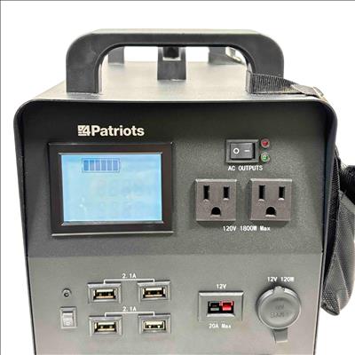 Get reliable, portable power anywhere with the 4Patriots Patriot Power Generator 1800. This high-capacity solar generator features 1800W AC outputs, multiple USB ports, and a 100-watt solar panel for efficient charging. Perfect for emergencies, outdoor adventures, and backup energy needs, it offers quiet, fume-free operation for peace of mind and convenience.