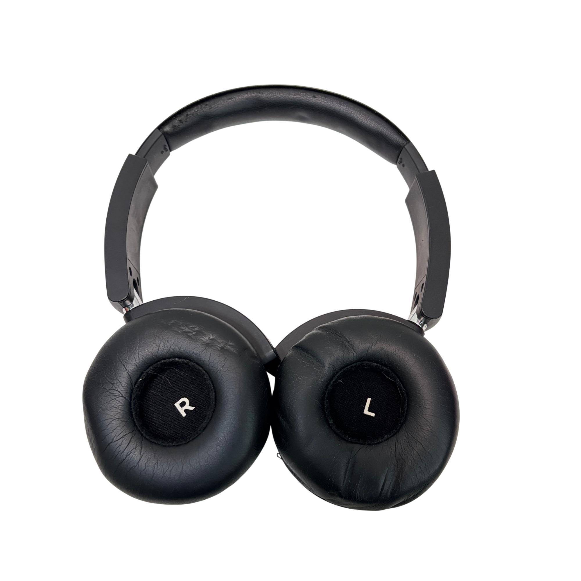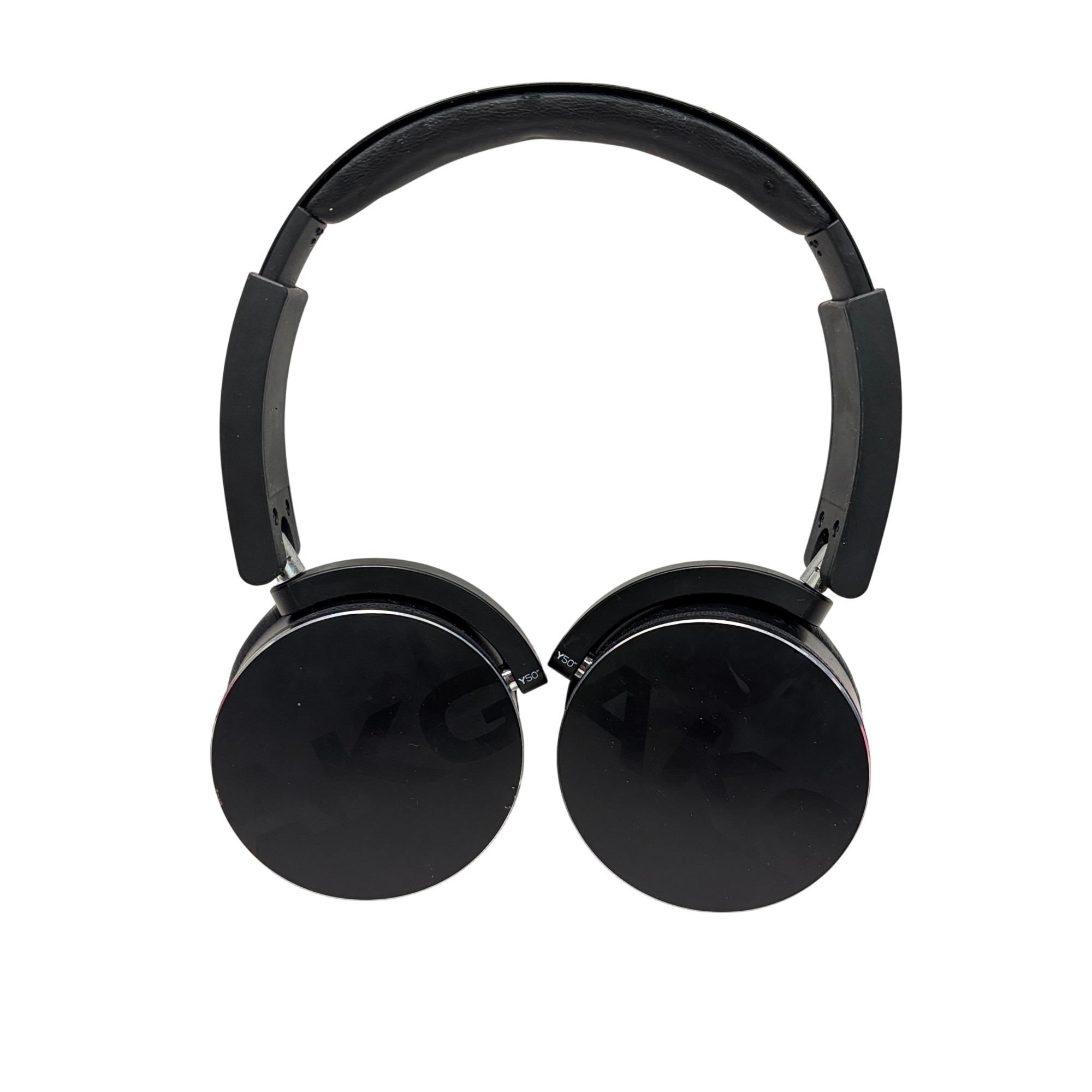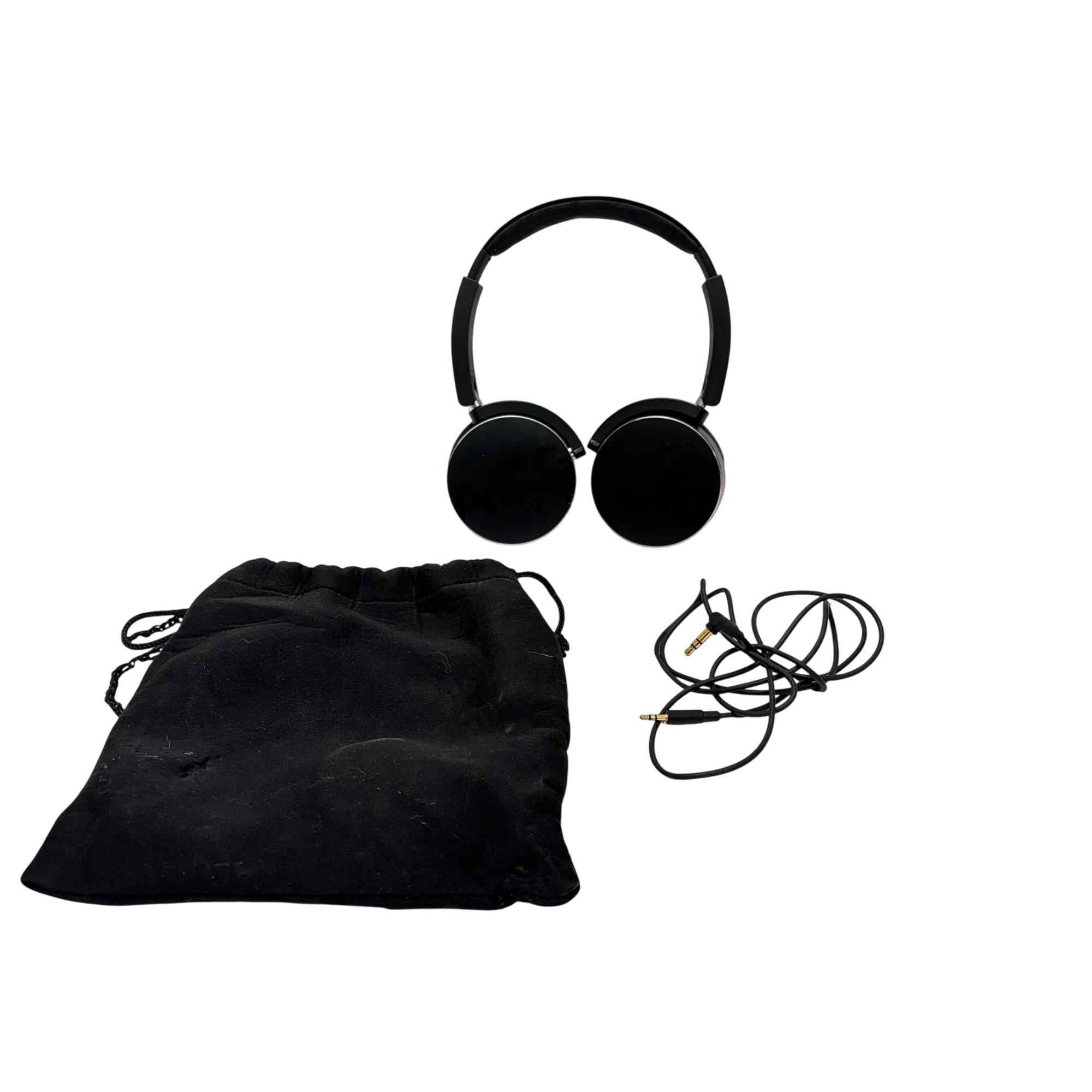 AKG Y50 On-Ear Headphones offer a sleek black design with comfortable ear pads and distinctive white lettering on the ear cups. These headphones feature a durable construction with high-quality audio performance and come equipped with a gold-plated audio cable that ensures clear sound transmission. The included carrying bag provides convenient portability for daily use or travel.