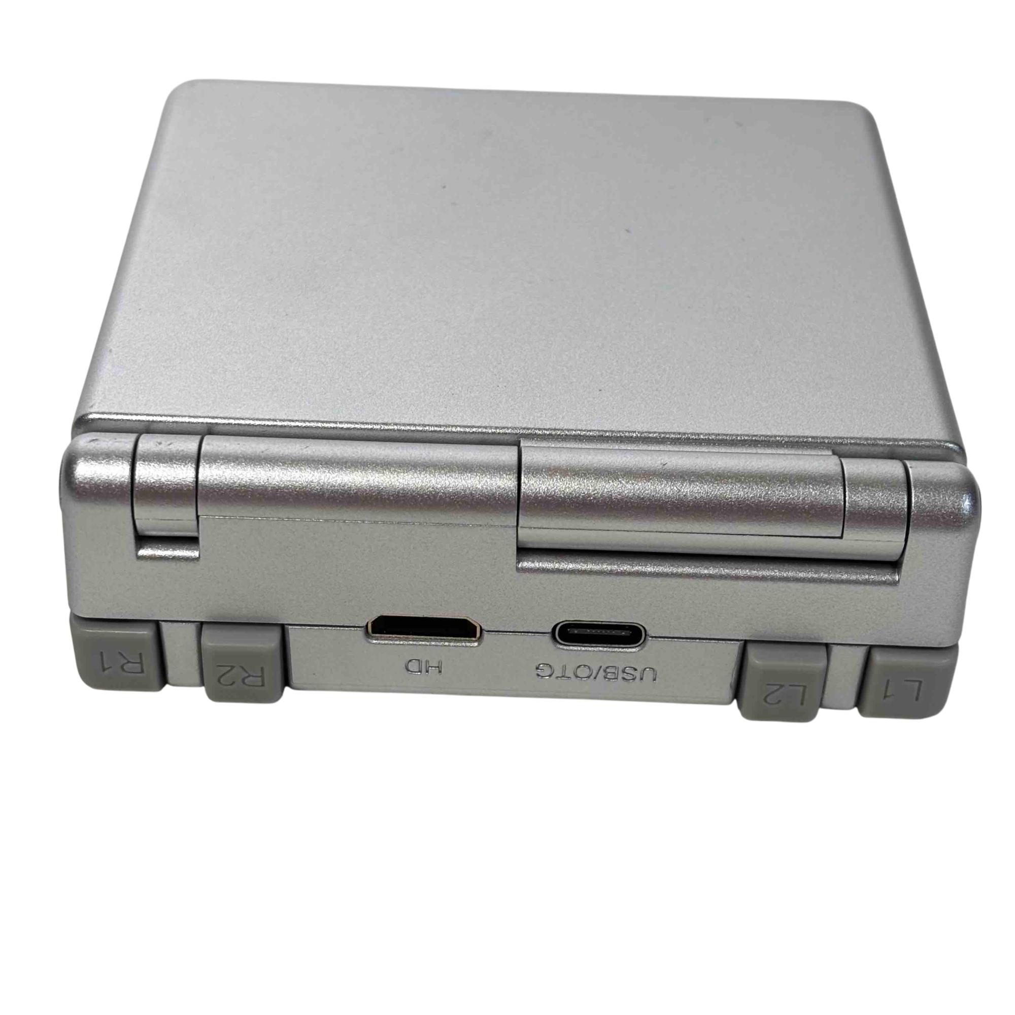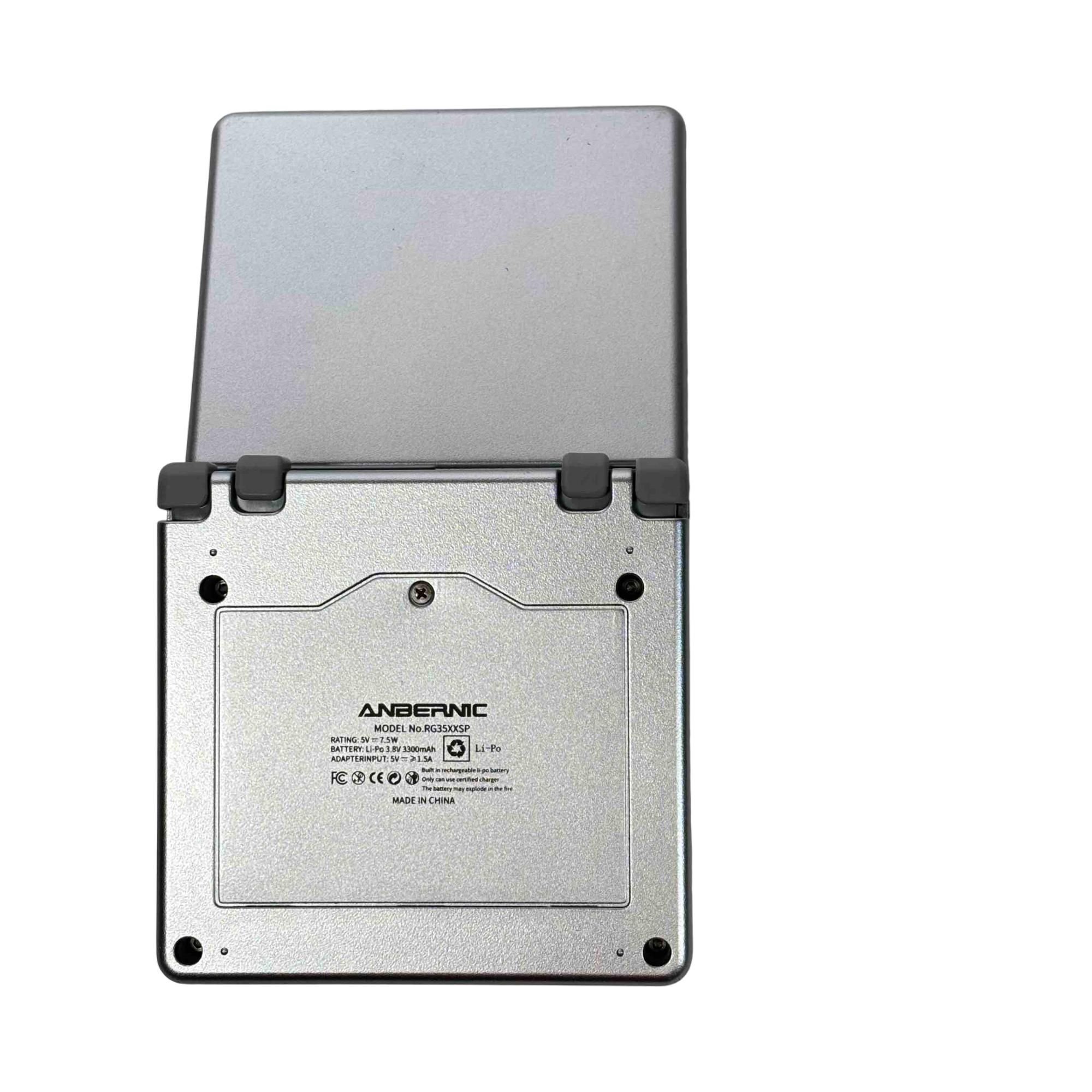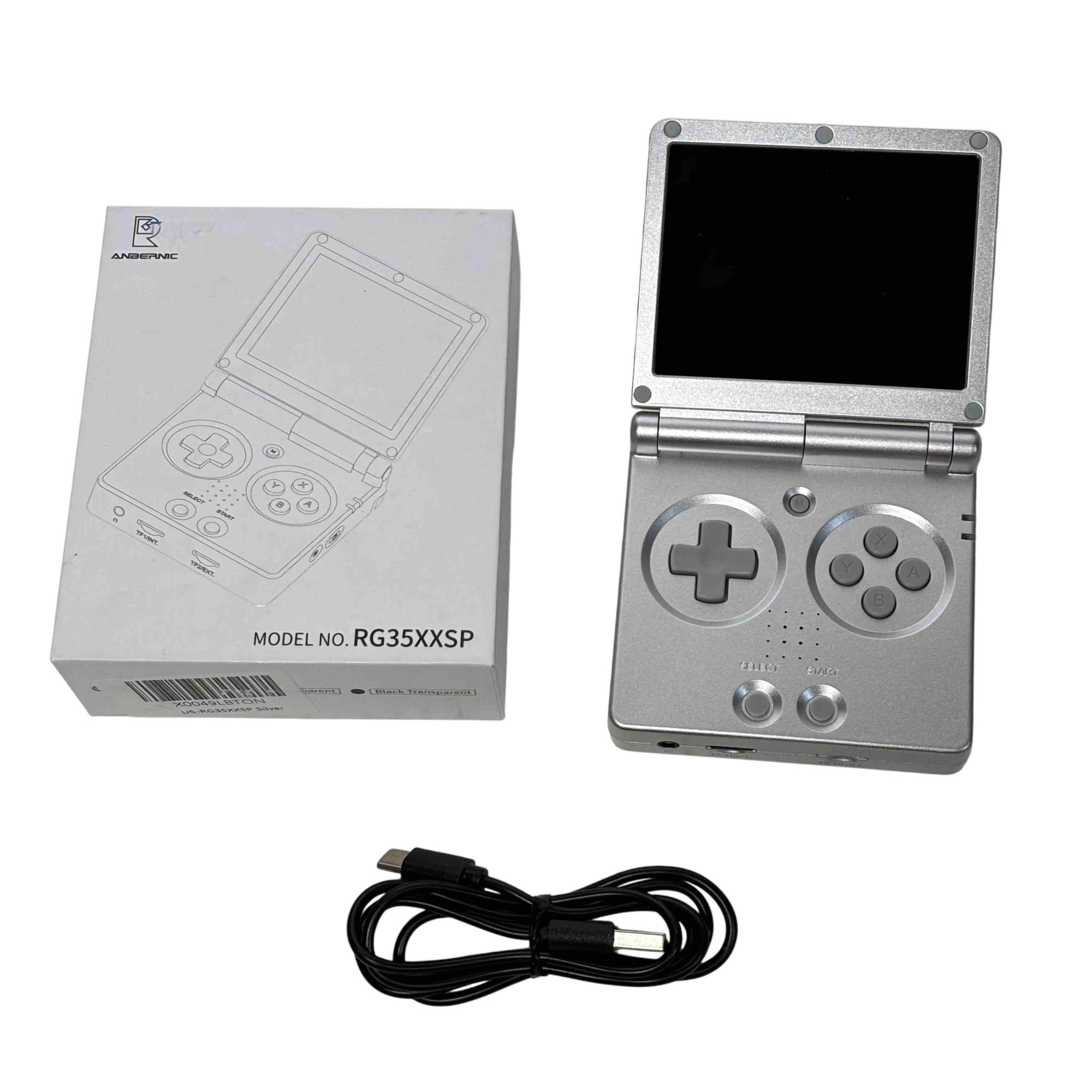 Experience the thrill of retro gaming with the ANBERNIC RG35XXSP Portable Emulator. This sleek, silver handheld game console delivers a vast library of classic games right at your fingertips, featuring convenient USB/OTG and HD ports for seamless connectivity and enhanced gameplay. Comes complete with its original box, making it perfect for collectors or casual gamers alike.