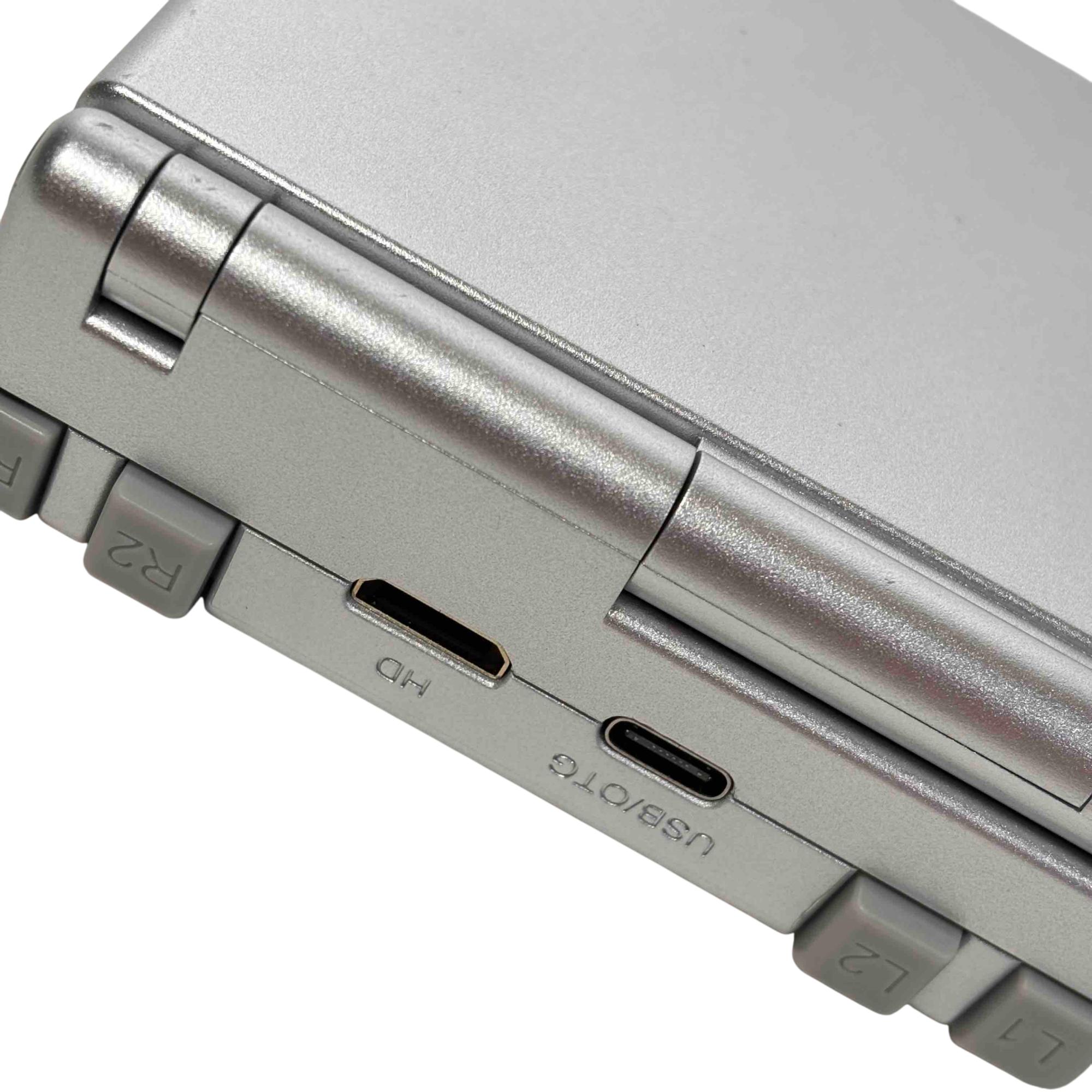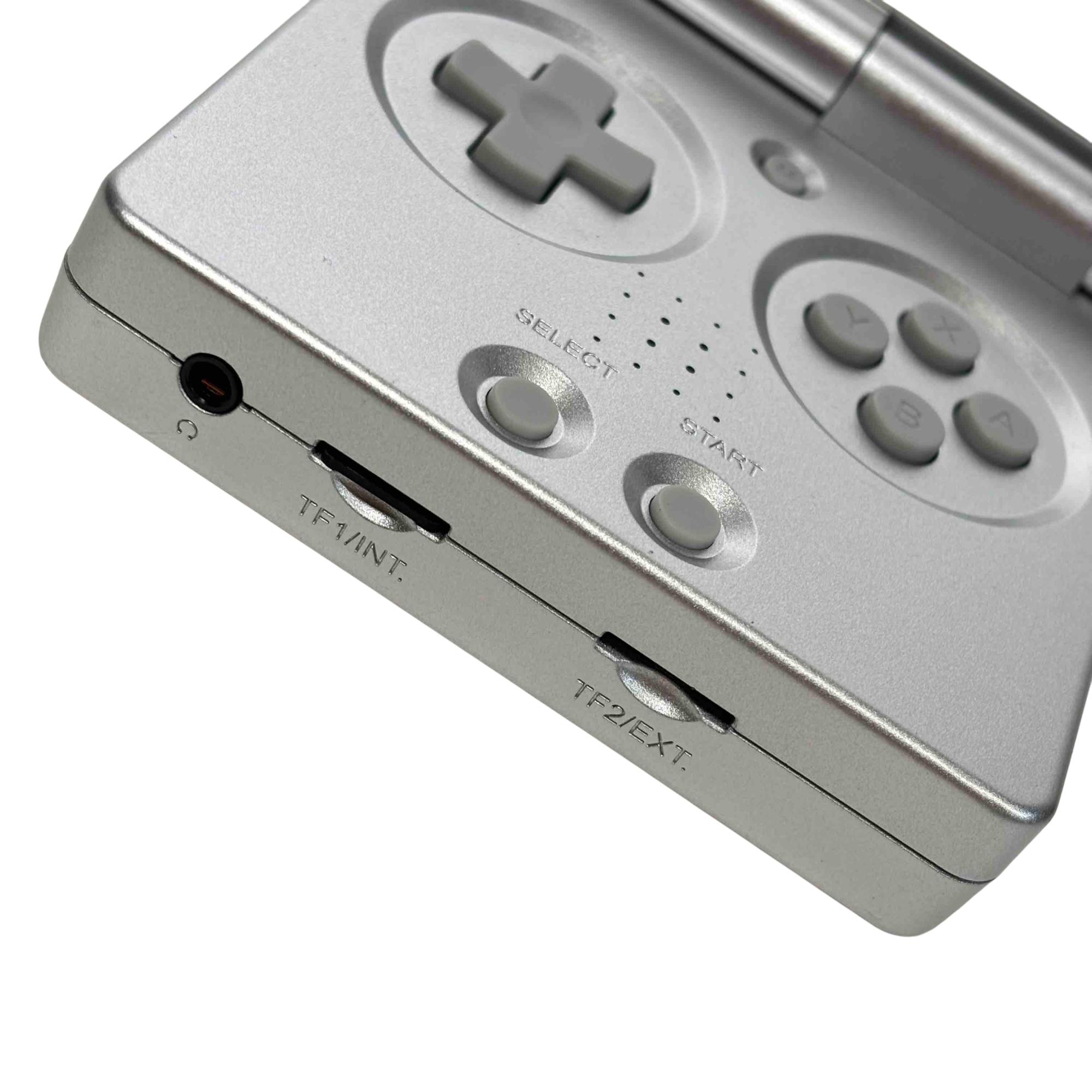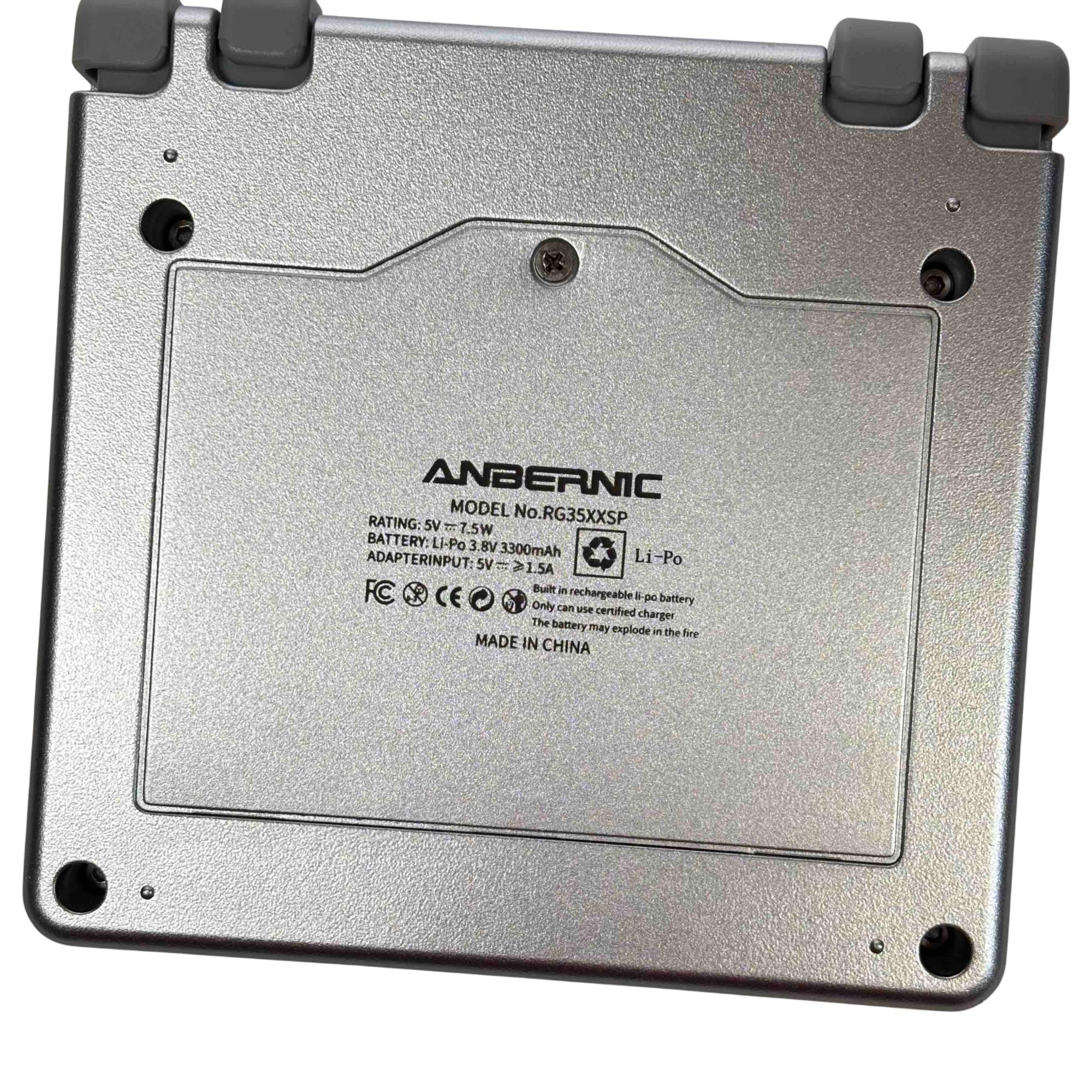 Experience the thrill of retro gaming with the ANBERNIC RG35XXSP Portable Emulator. This sleek, silver handheld game console delivers a vast library of classic games right at your fingertips, featuring convenient USB/OTG and HD ports for seamless connectivity and enhanced gameplay. Comes complete with its original box, making it perfect for collectors or casual gamers alike.