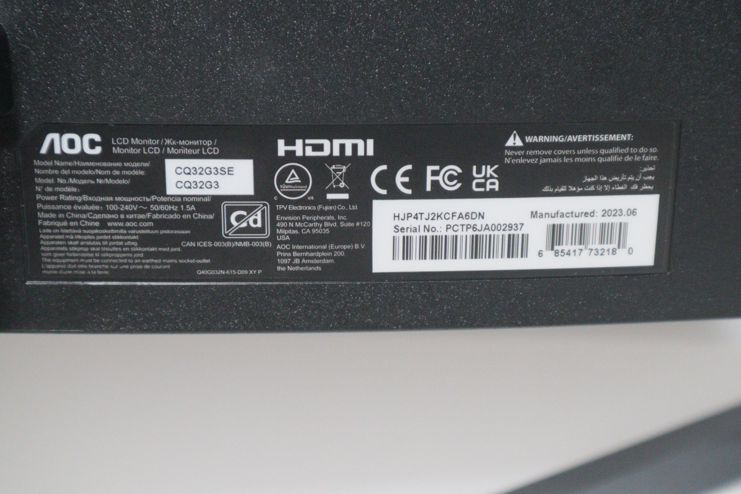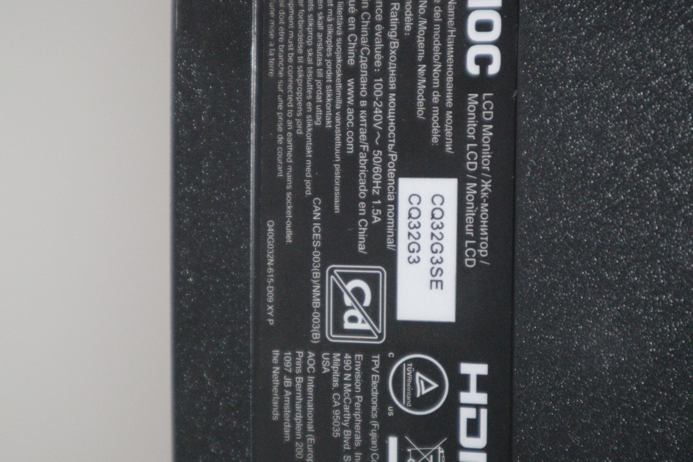 AOC CQ32G3SE Black 2K QH/1000R Curved VA 32" Curved Frameless Gaming Monitor 2180 & Power Cord