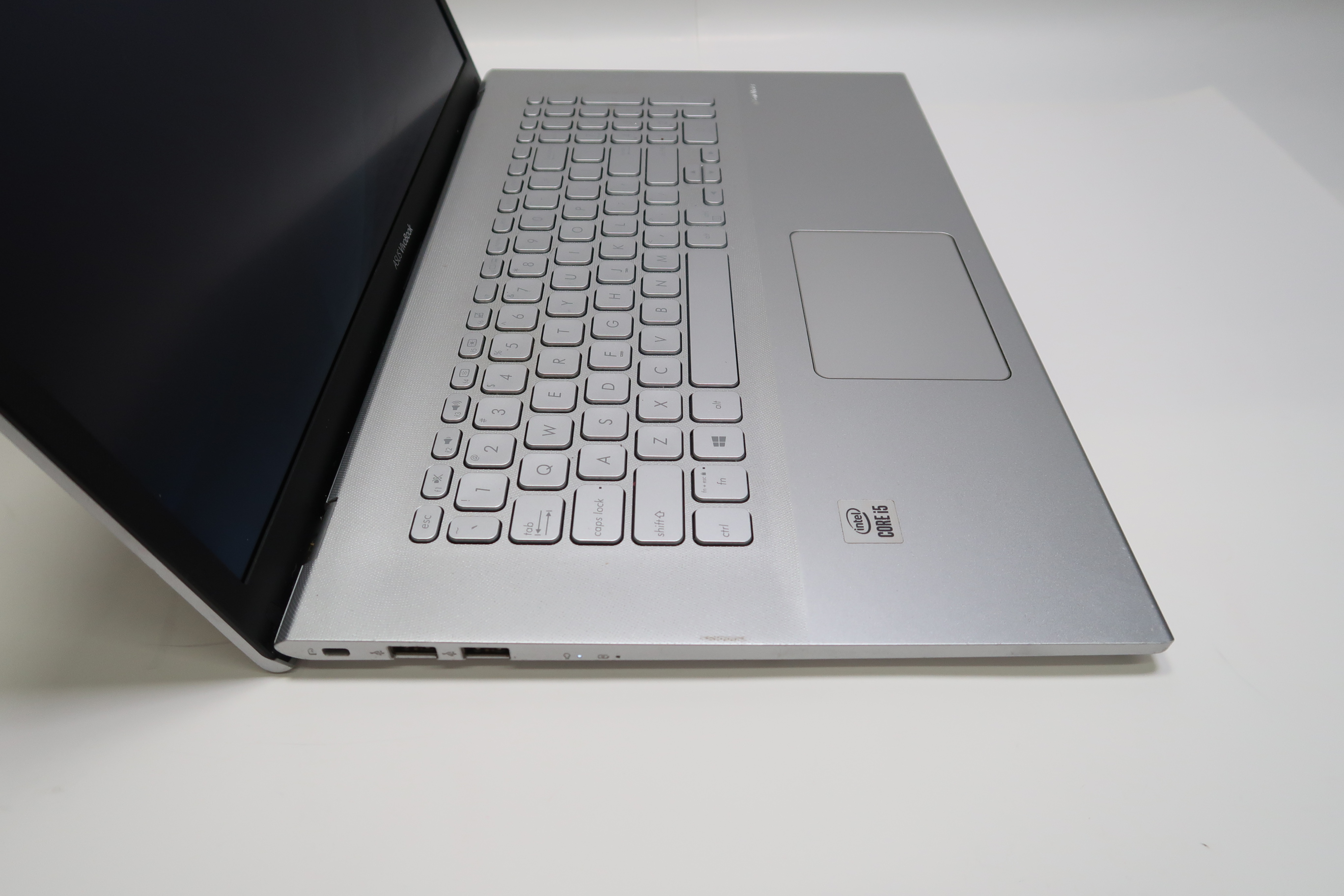 This Asus VivoBook laptop is used but has been tested and is in working condition. There are scratches around the edges of the bottom inner casing of the laptop, as well as scratches and scuffs on the top and bottom outer casing of the laptop. Please see pictures for details.