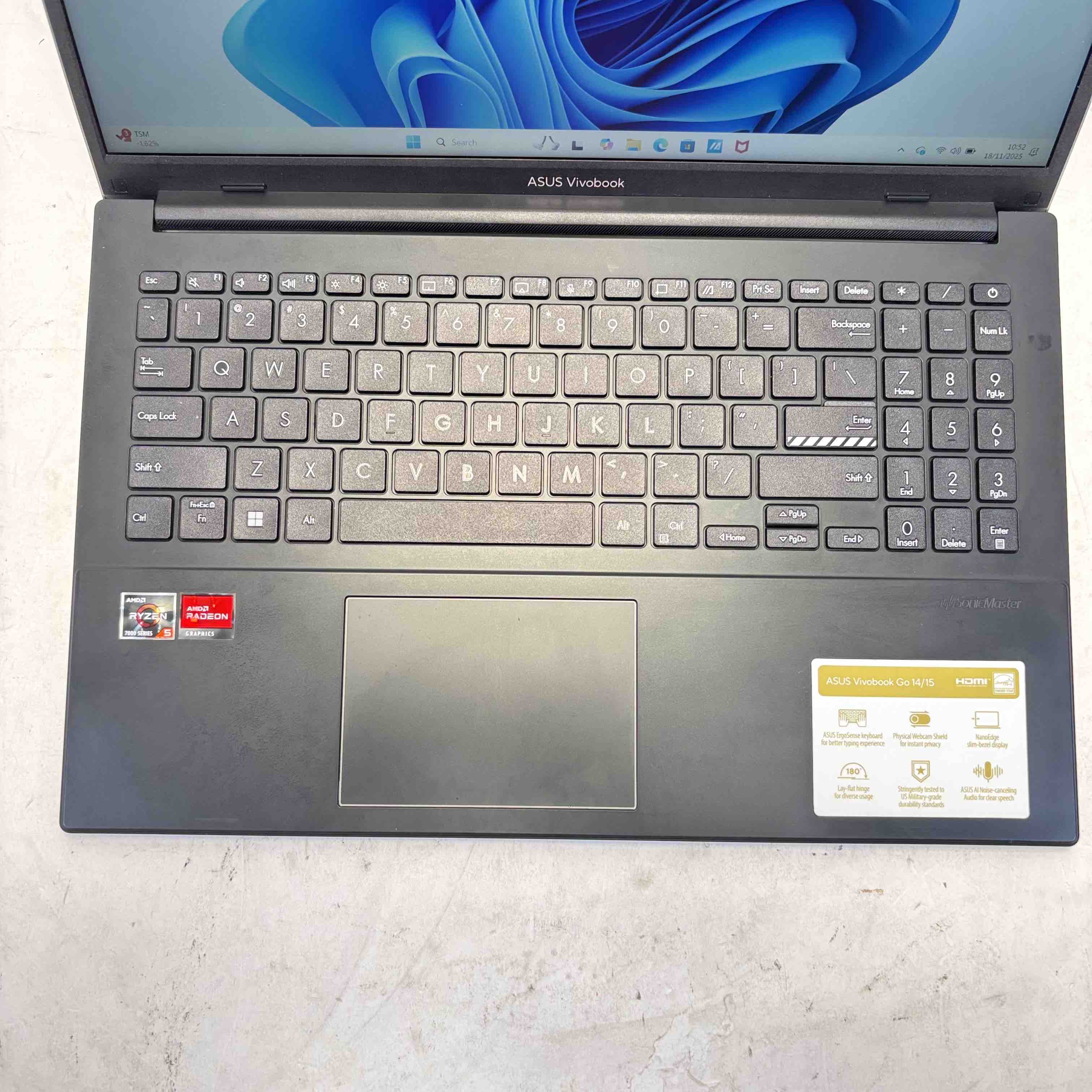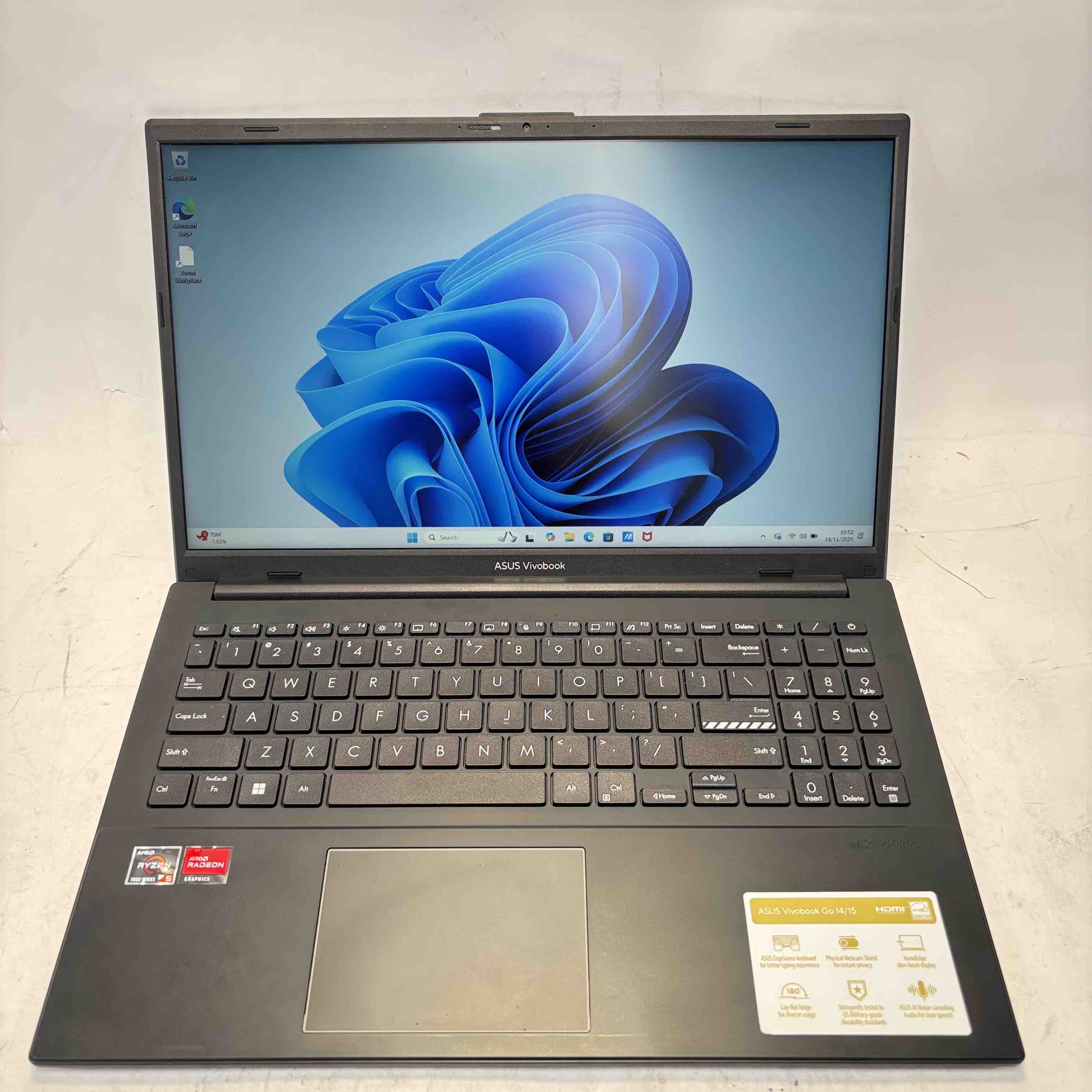 The ASUS Vivobook Go 15 laptop features an AMD Ryzen processor paired with Radeon graphics, delivering reliable performance for everyday computing tasks. It includes an ErgoSense keyboard designed for enhanced typing comfort and a nanoedge display with a lay-flat hinge for versatile usage. This laptop is engineered with MIL-STD durability standards and incorporates noise-canceling audio technology for clear sound during calls and multimedia.