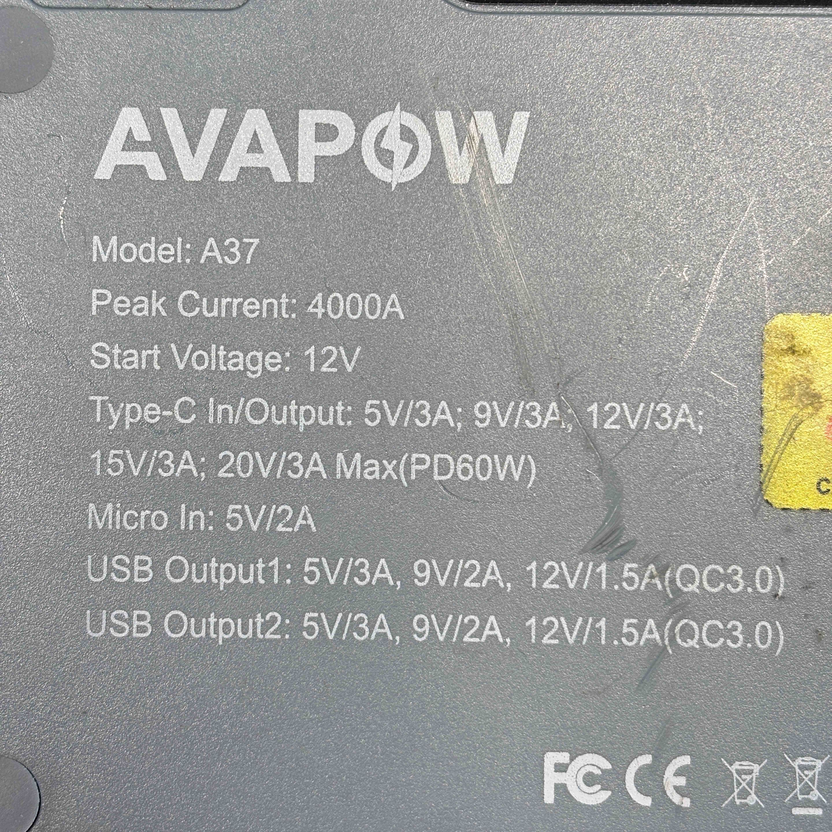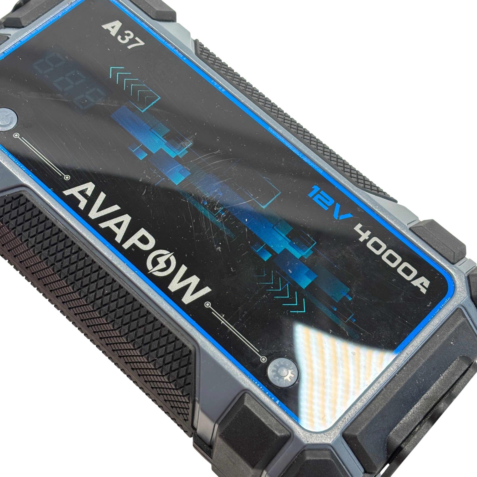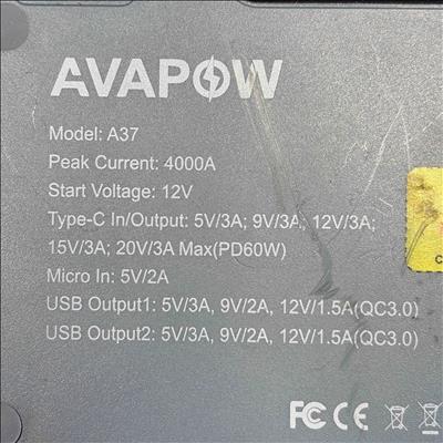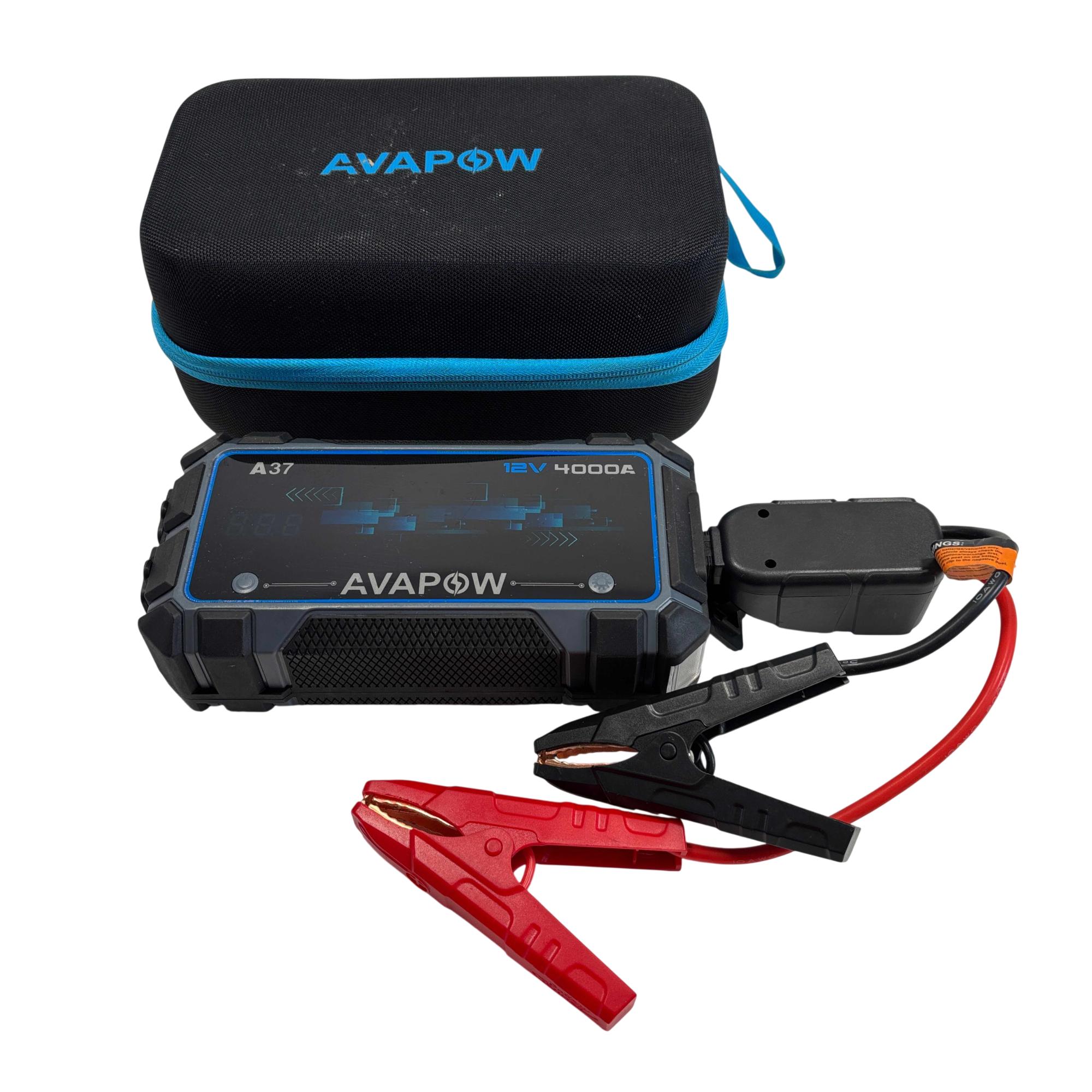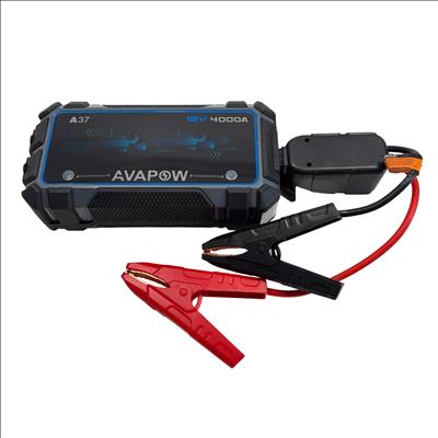 The AVAPOW A37 4000A 12V Portable Car Battery Jump Starter delivers powerful peak current of 4000 amps for jump-starting a variety of vehicles with a 12V start voltage. This compact device features multiple input and output ports, making it versatile for both emergency power and everyday device charging needs.