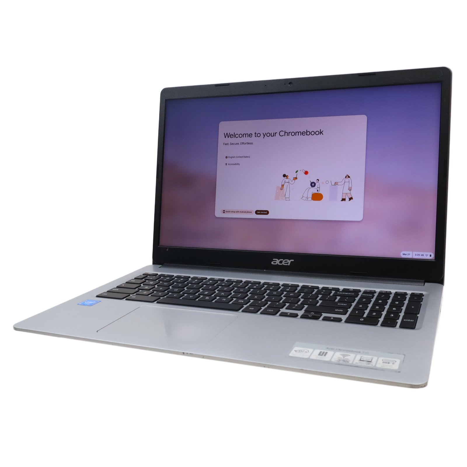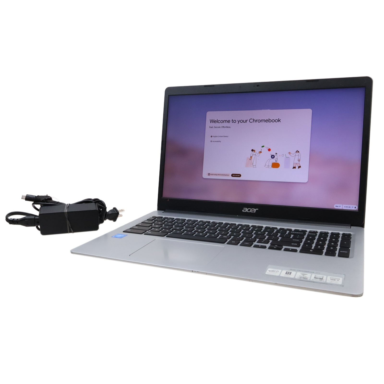 Equipped with an Intel Celeron N4000 dual-core processor running at 1.1GHz, 4GB of LPDDR4 RAM, and 32GB of eMMC storage, providing a suitable platform for everyday tasks. It features a 15.6-inch display with a resolution of 1920 x 1080, ensuring clear visuals, and is powered by Intel UHD Graphics 600. Connectivity options include Wi-Fi 5 and Bluetooth 5.0 for wireless connections, along with two USB 3.1 Gen 1 ports, two USB-C 3.1 Gen 1 ports, and a headphone/microphone combo jack for peripherals. The Chromebook also comes with a built-in webcam, making it convenient for video conferencing and online interactions.