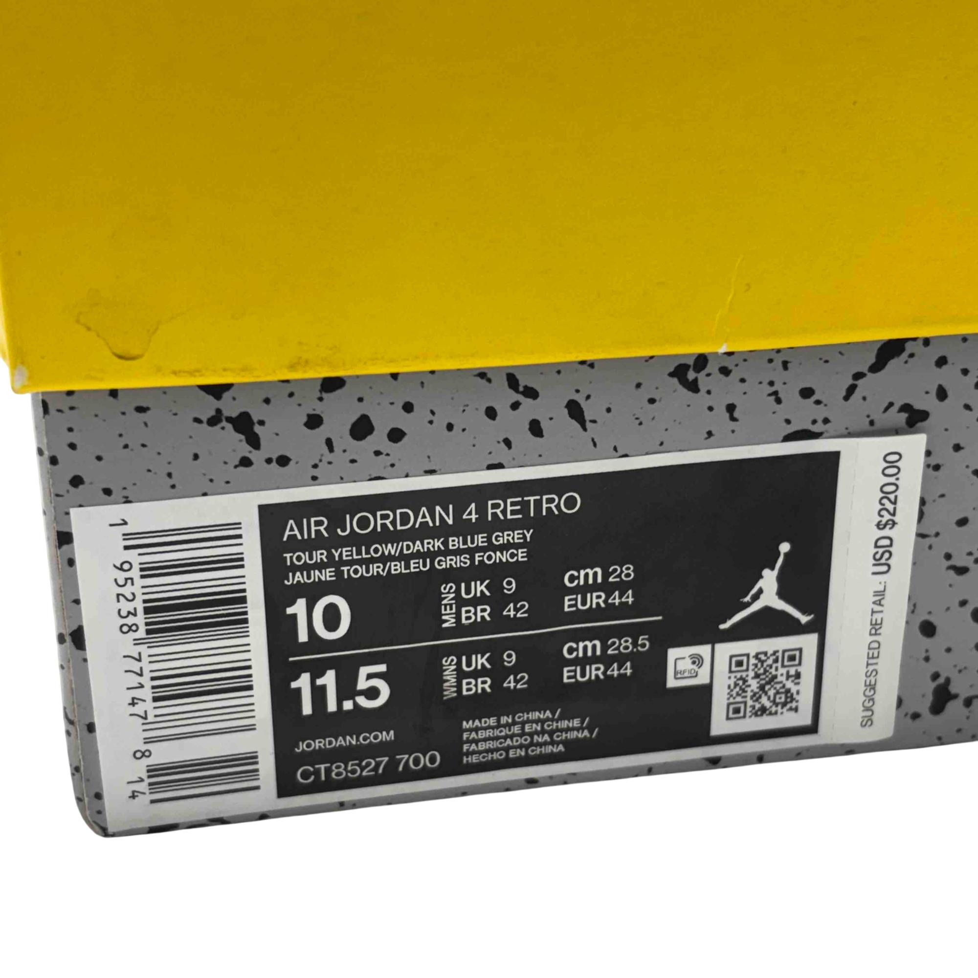 Step up your sneaker game with the Air Jordan 4 Retro Tour Yellow/Dark Blue Grey CT8527-700. These vibrant yellow and black sneakers combine iconic Jordan brand style with premium comfort, making them perfect for any sneaker enthusiast looking to make a bold statement. Perfect for both casual wear and styling up your streetwear look.
