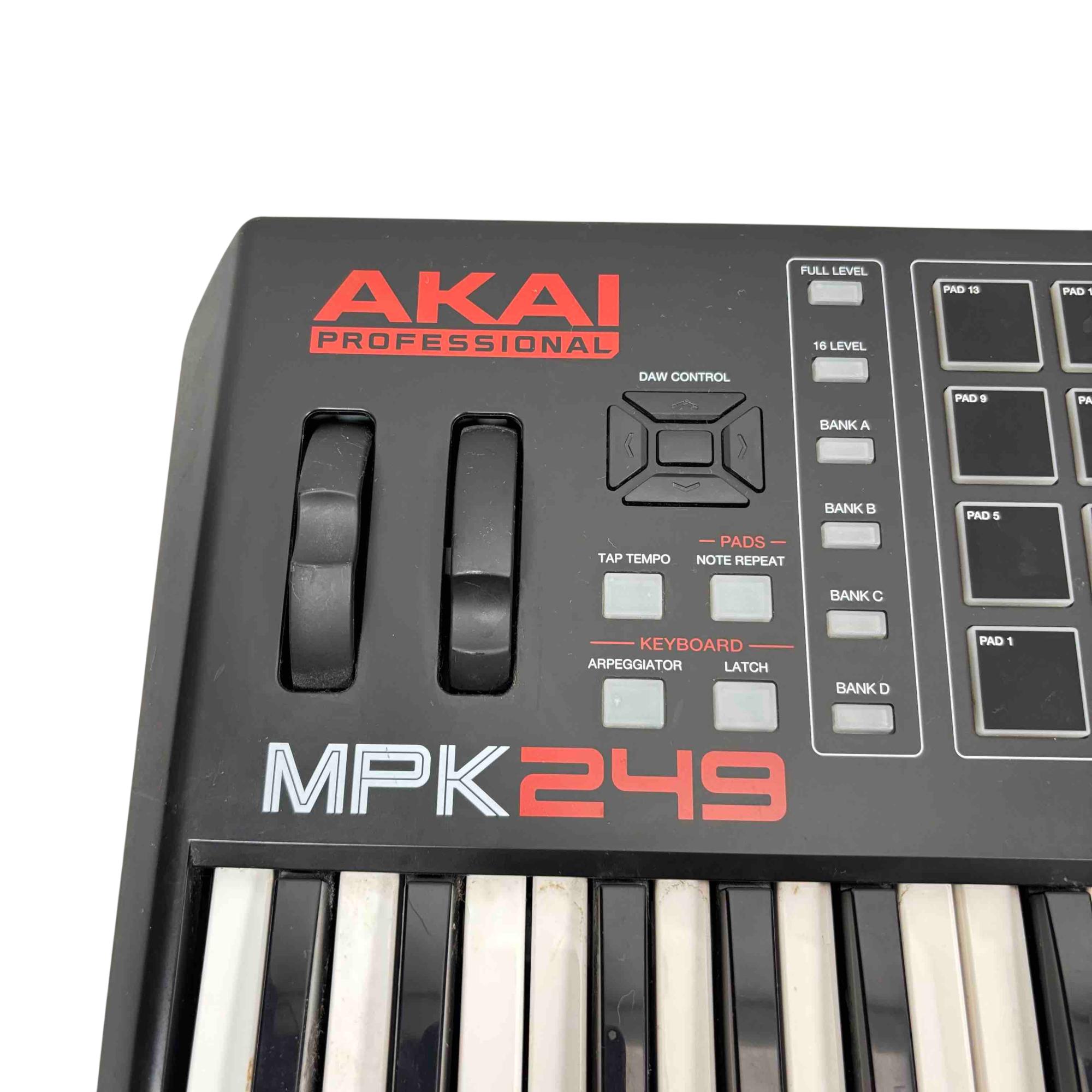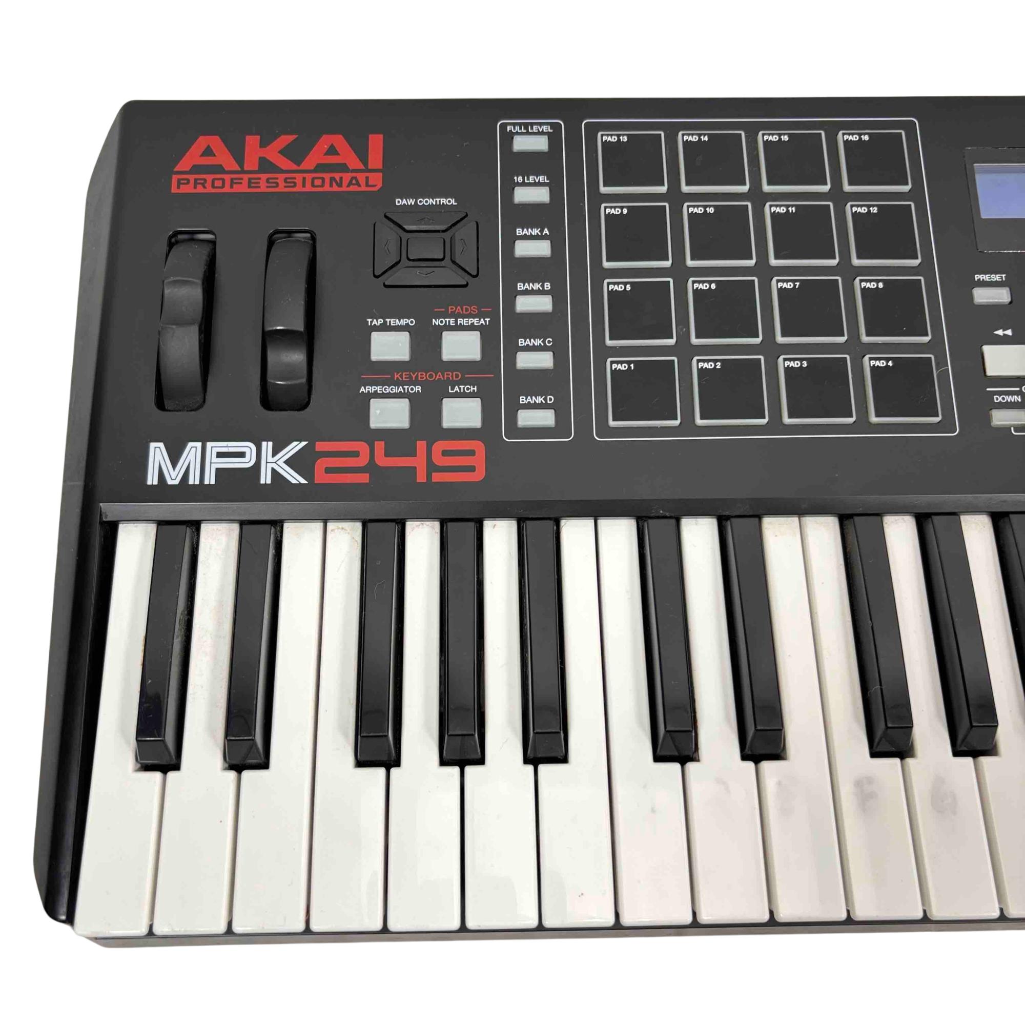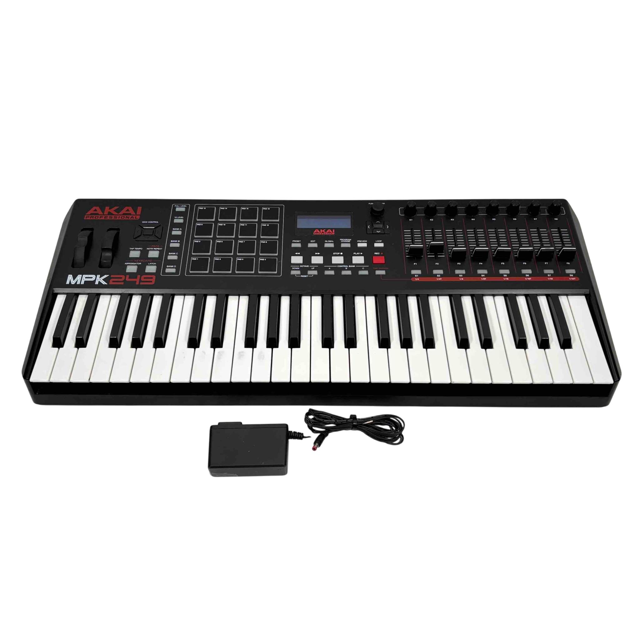 Elevate your music production with the Akai Professional MPK249 MIDI Keyboard Controller, featuring 49 semi-weighted keys, 16 backlit MPC-style pads, 8 control knobs, and 8 faders for total creative control. Perfect for studios and live performances, the MPK249 offers seamless integration with all major DAWs, giving you hands-on access to your software instruments and loops. Built for musicians looking for premium hardware quality and advanced MIDI performance, this controller is an industry favorite for serious producers.