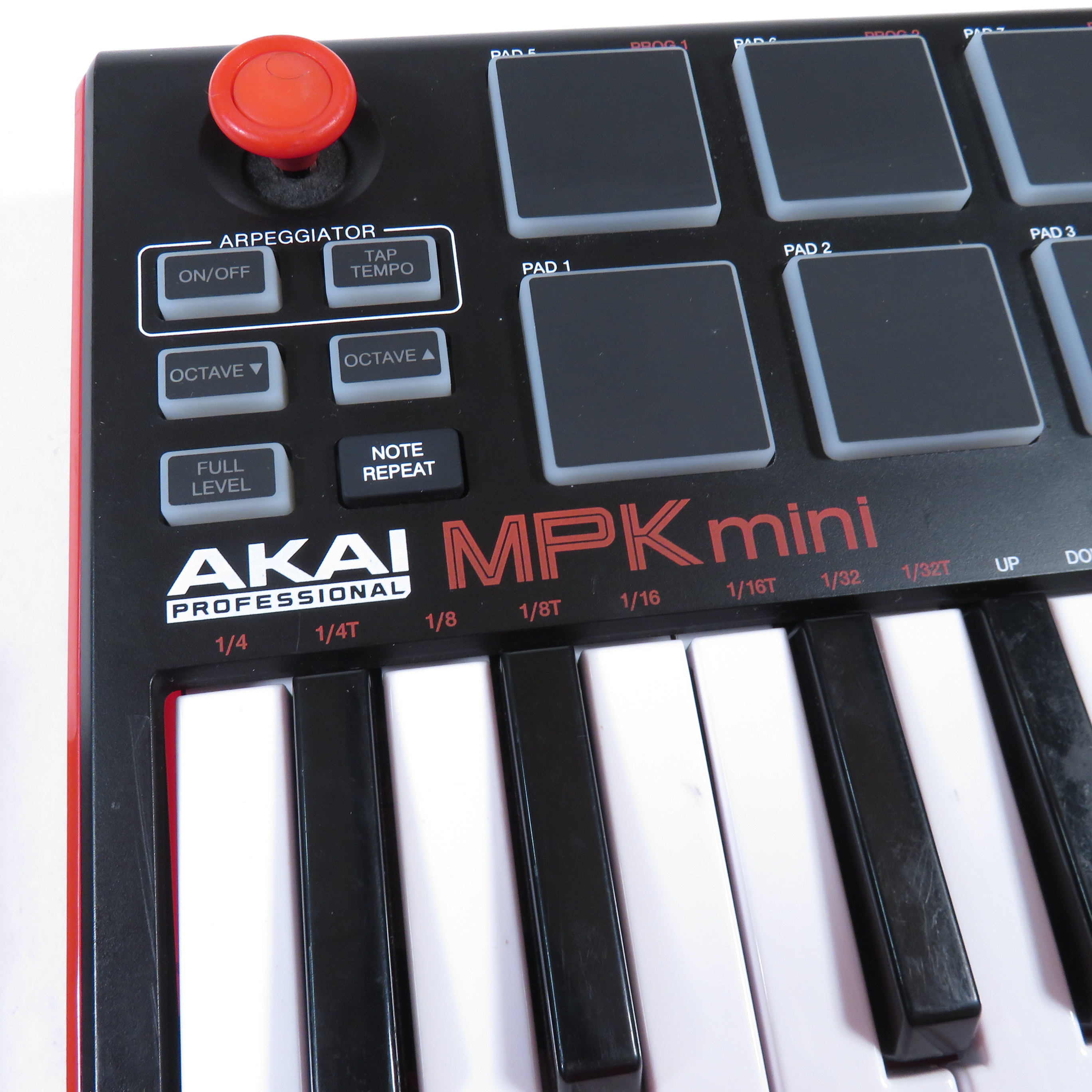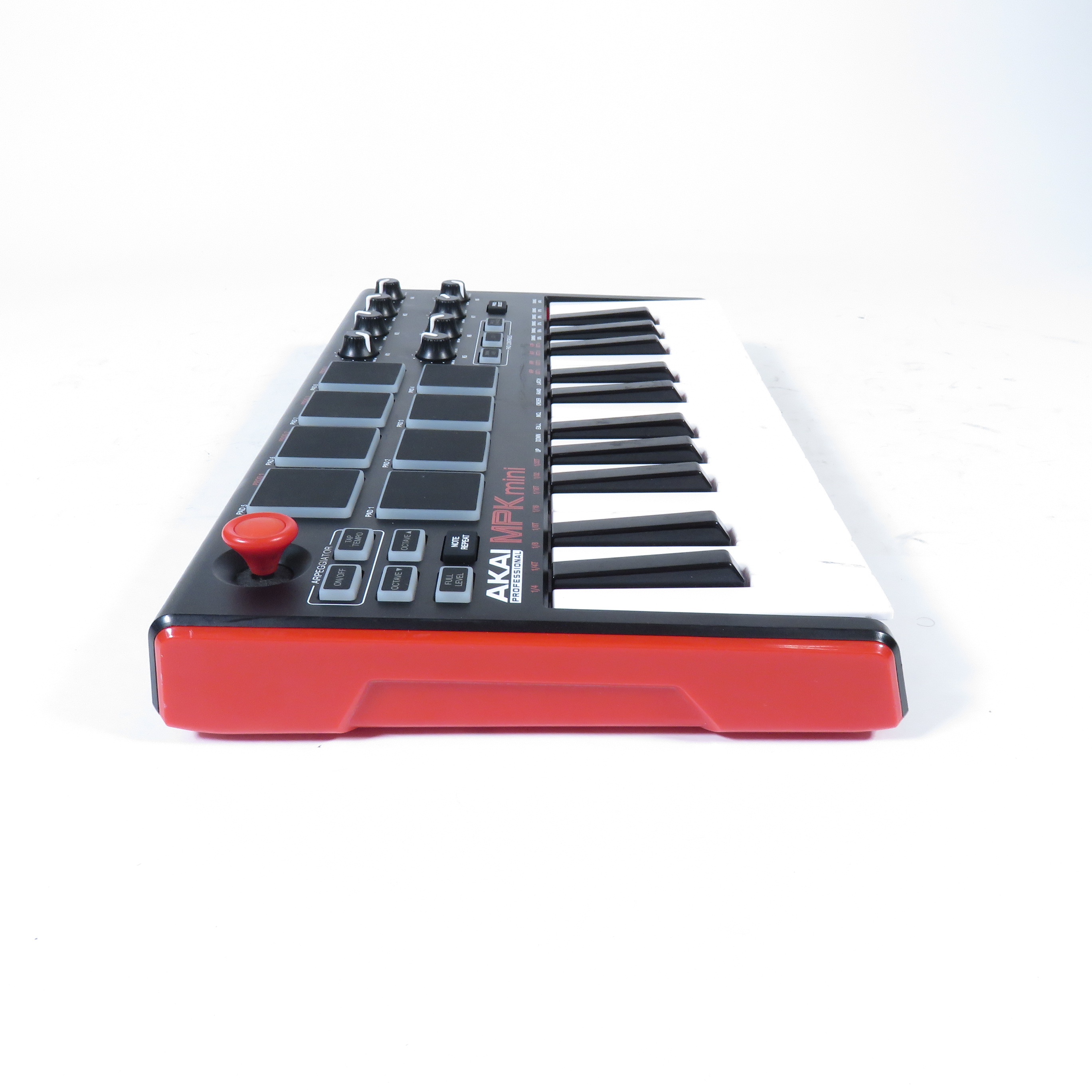 8 backlit velocity-sensitive MPC-style pads with Note Repeat & Full Level