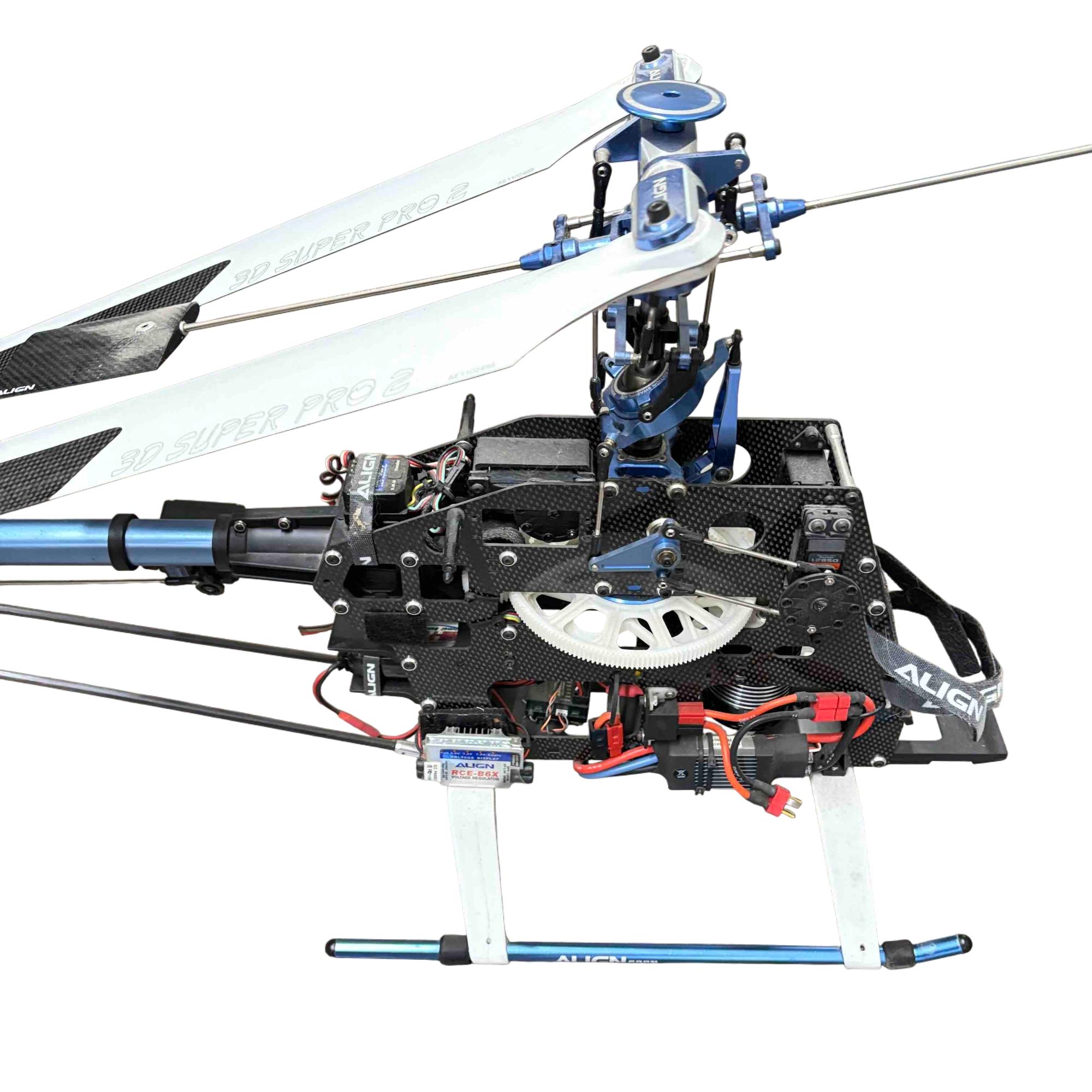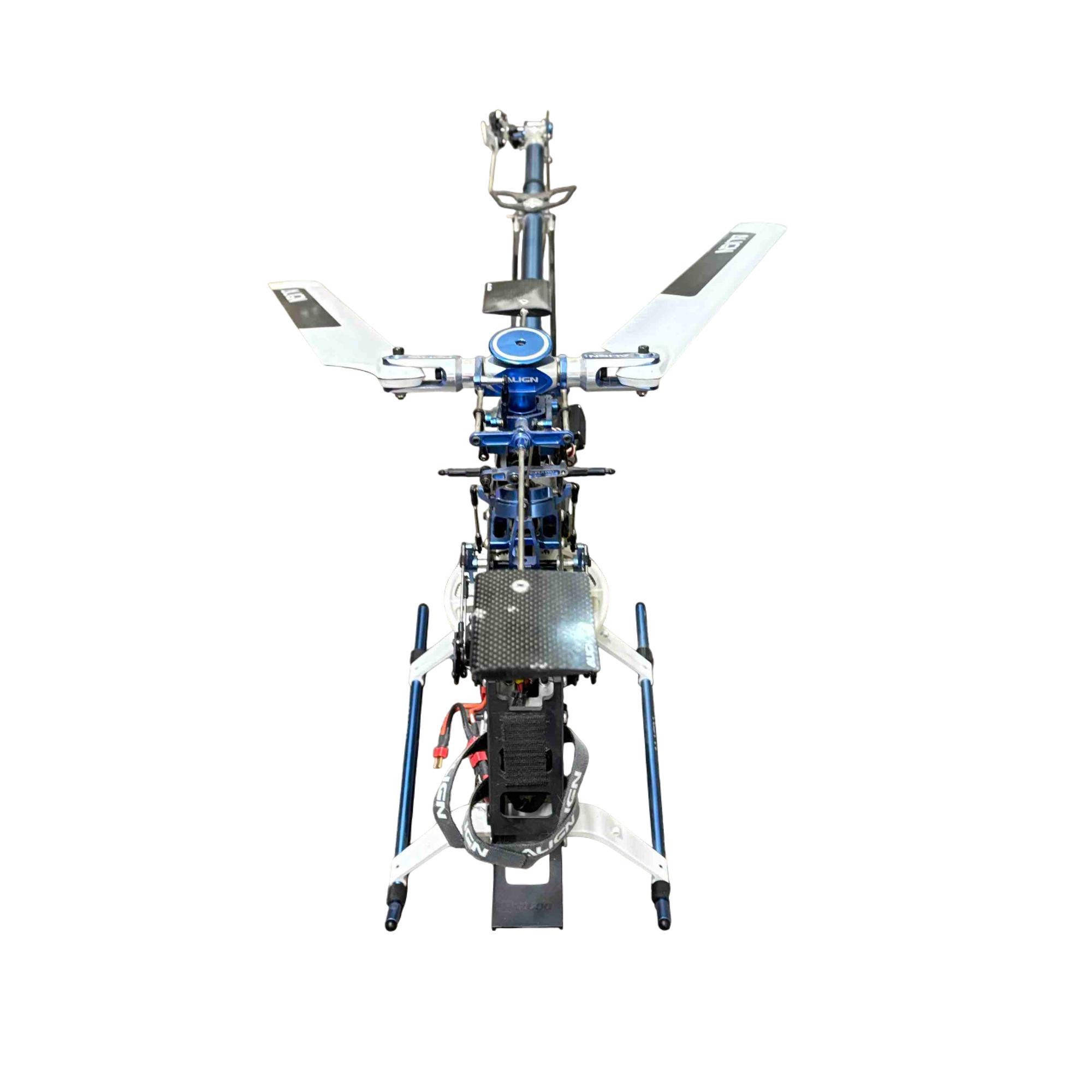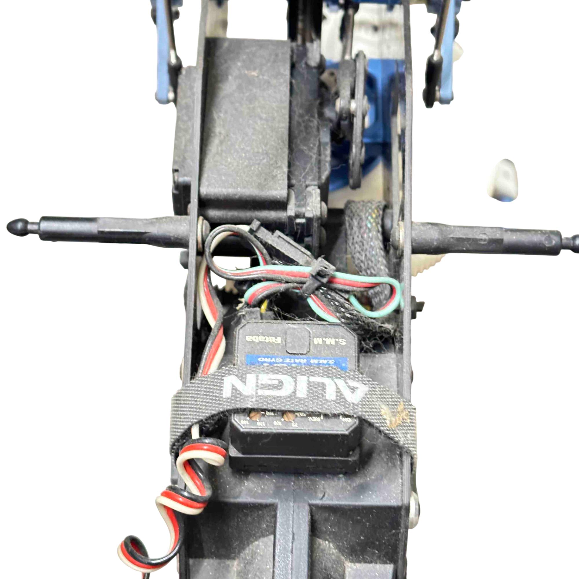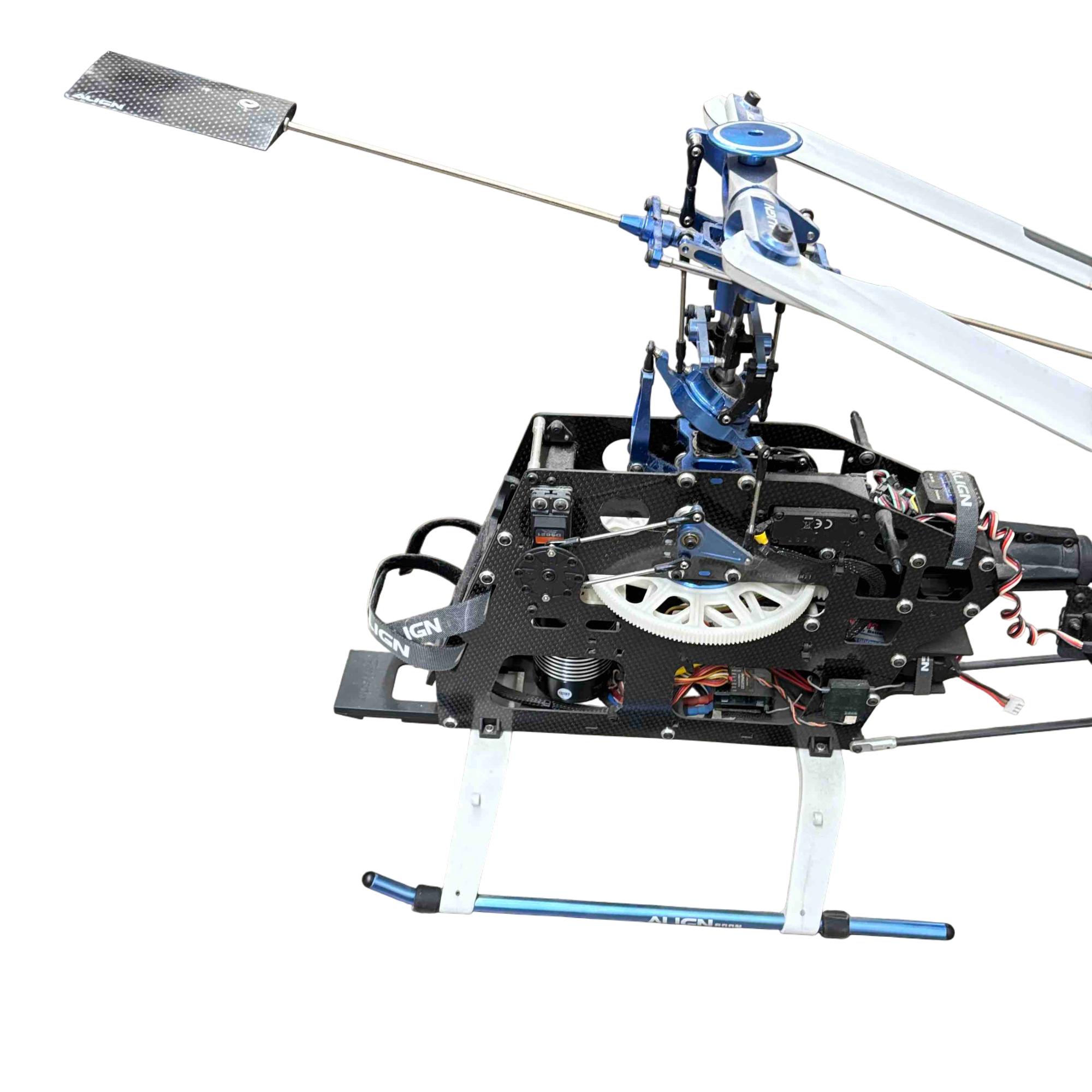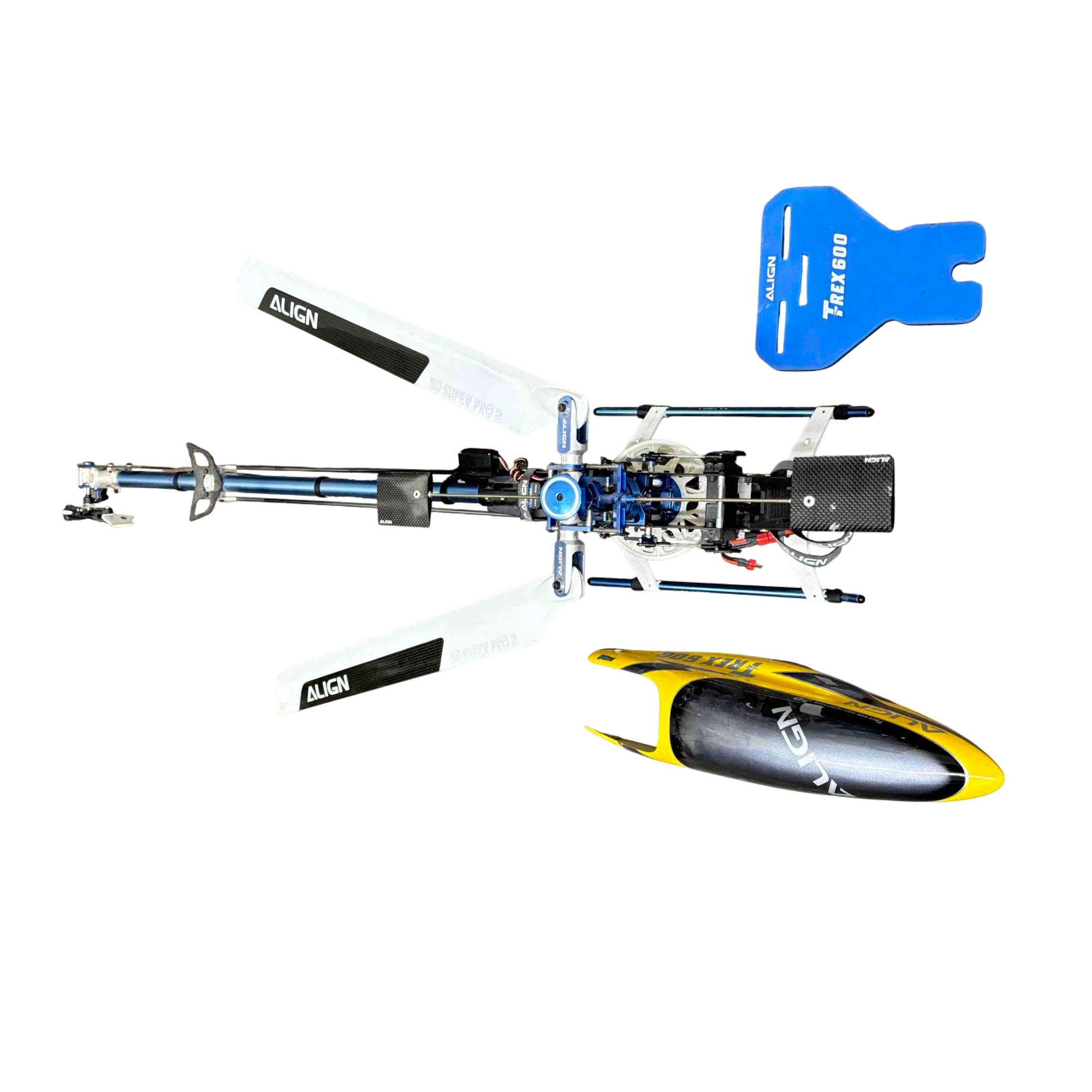 Experience the thrill of flying with the Align TREX 600 RC Helicopter. Equipped with a striking blue canopy, this helicopter is perfect for both seasoned pilots and hobbyists looking to elevate their flying skills. Take command of the skies with this high-performance rotorcraft today!