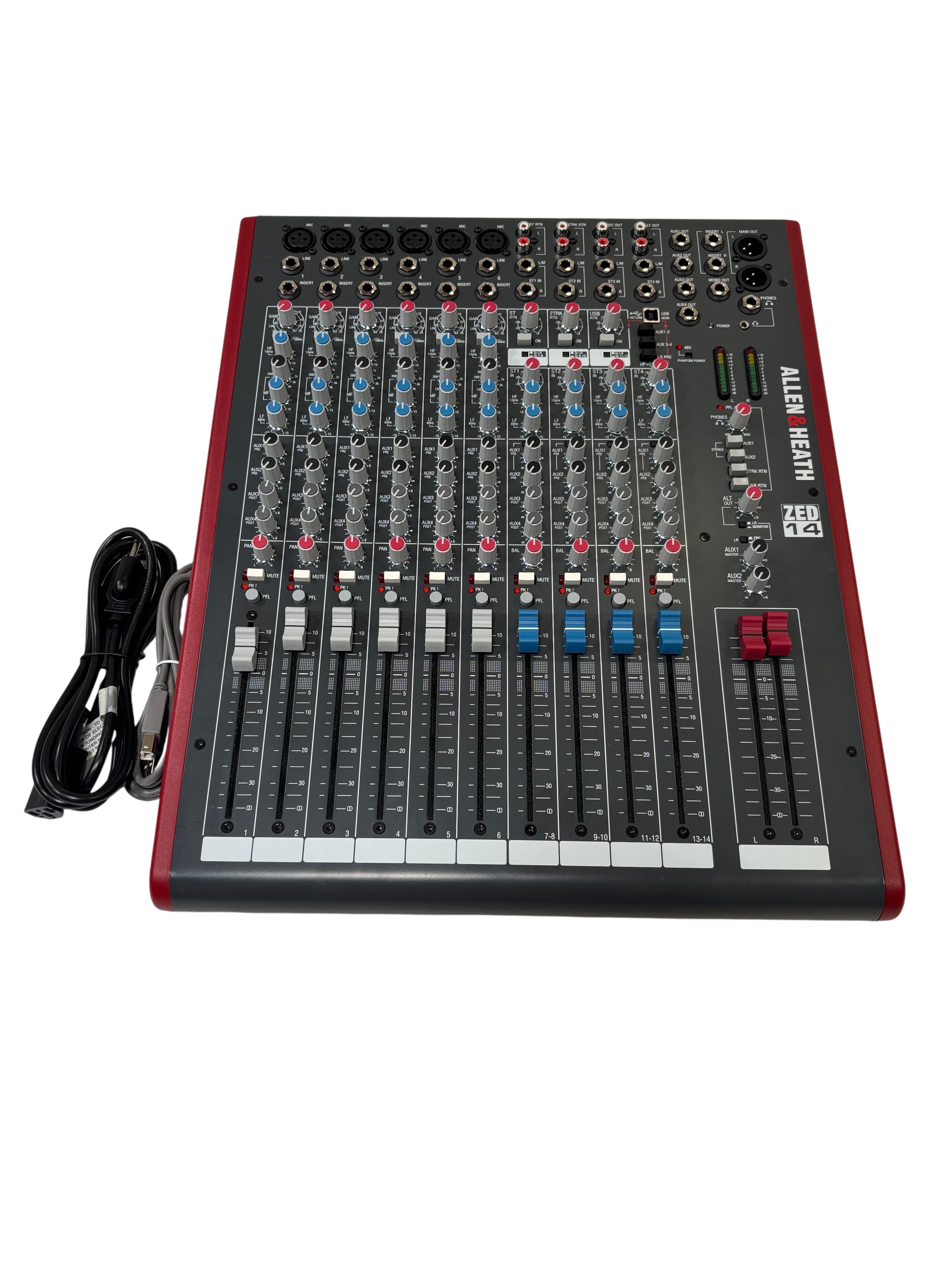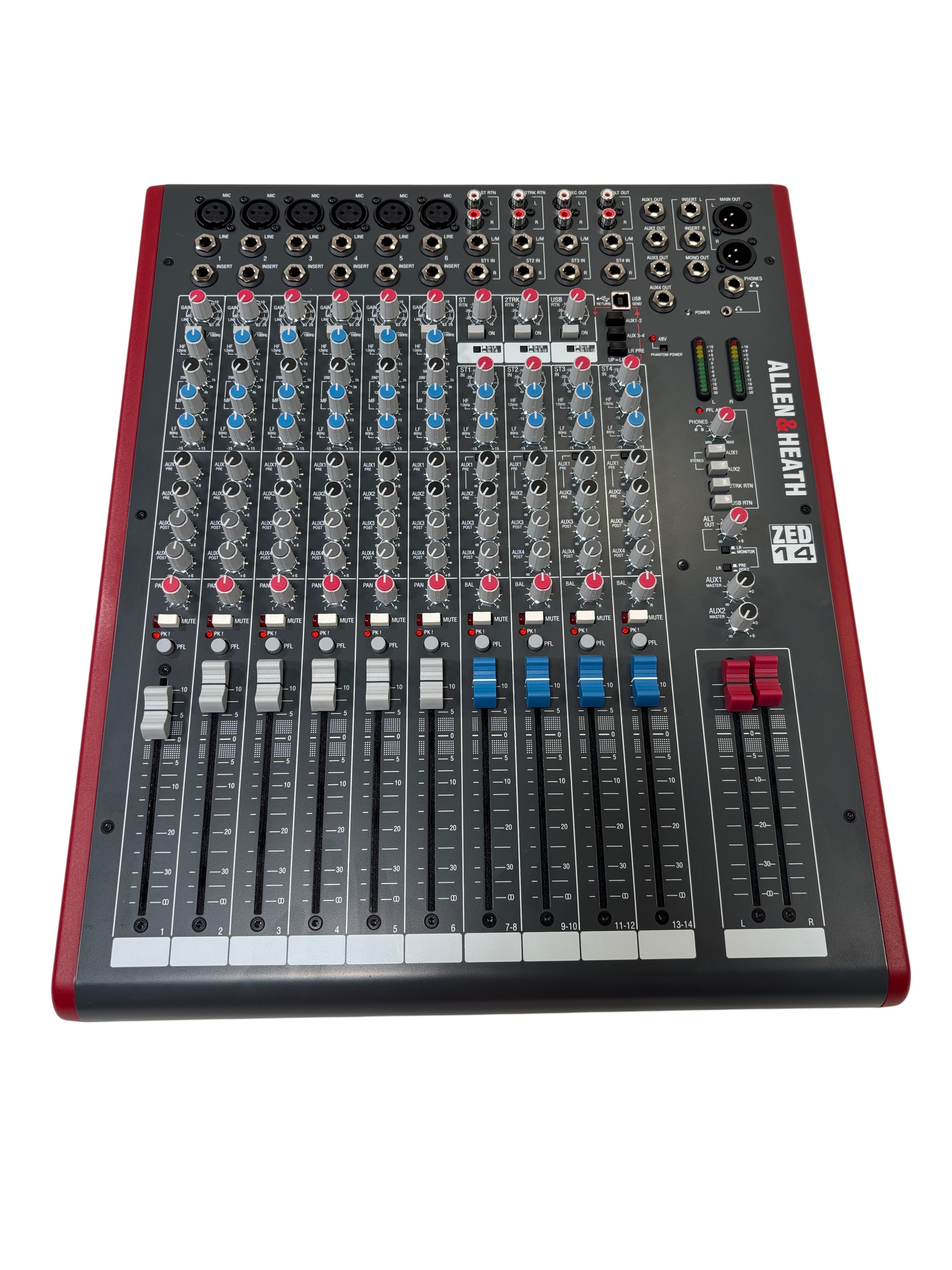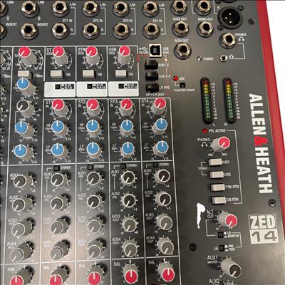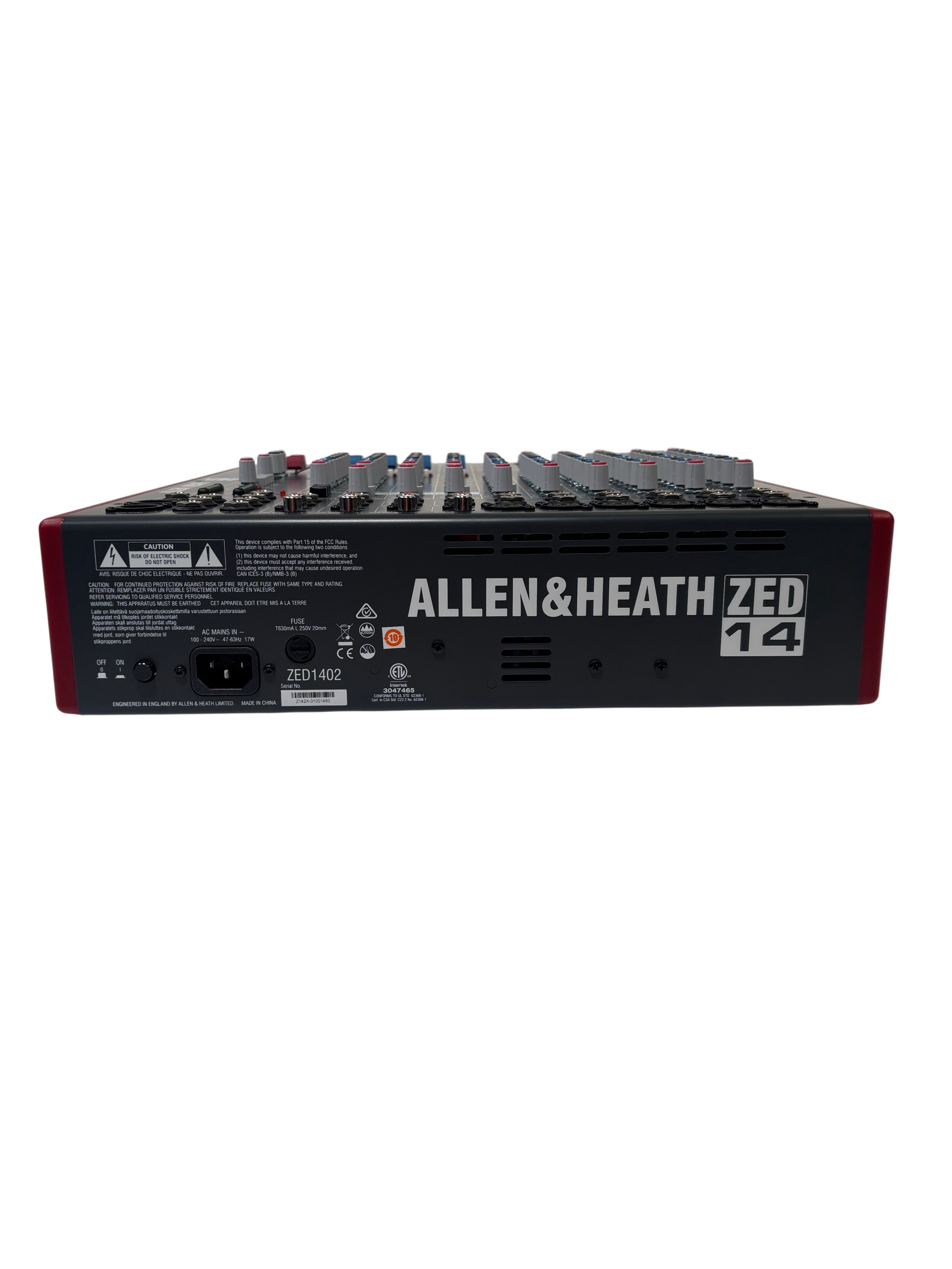The Allen & Heath ZED1402 Audio Mixer is a versatile 14-channel analog mixing console designed for live sound and studio applications. Featuring 6 mono mic/line inputs with insert points and 4 stereo line inputs, this mixer offers flexible routing and control. It includes 48V phantom power for condenser microphones and a built-in USB interface for seamless recording and playback with your computer. Compact yet robust, the ZED1402 provides multiple aux sends, main XLR outputs, and a headphone output, making it ideal for musicians, podcasters, and sound engineers who need a reliable and feature-rich mixer.