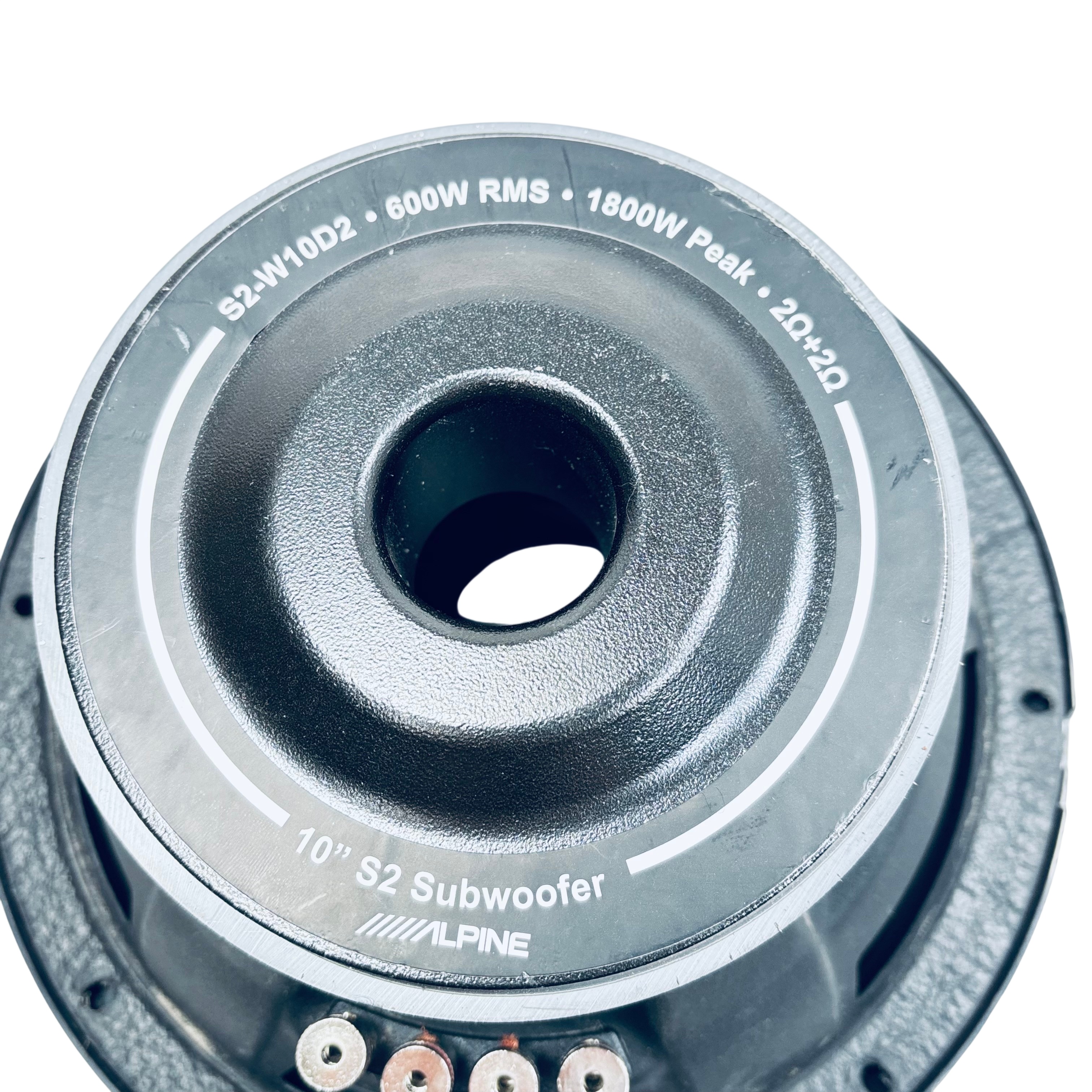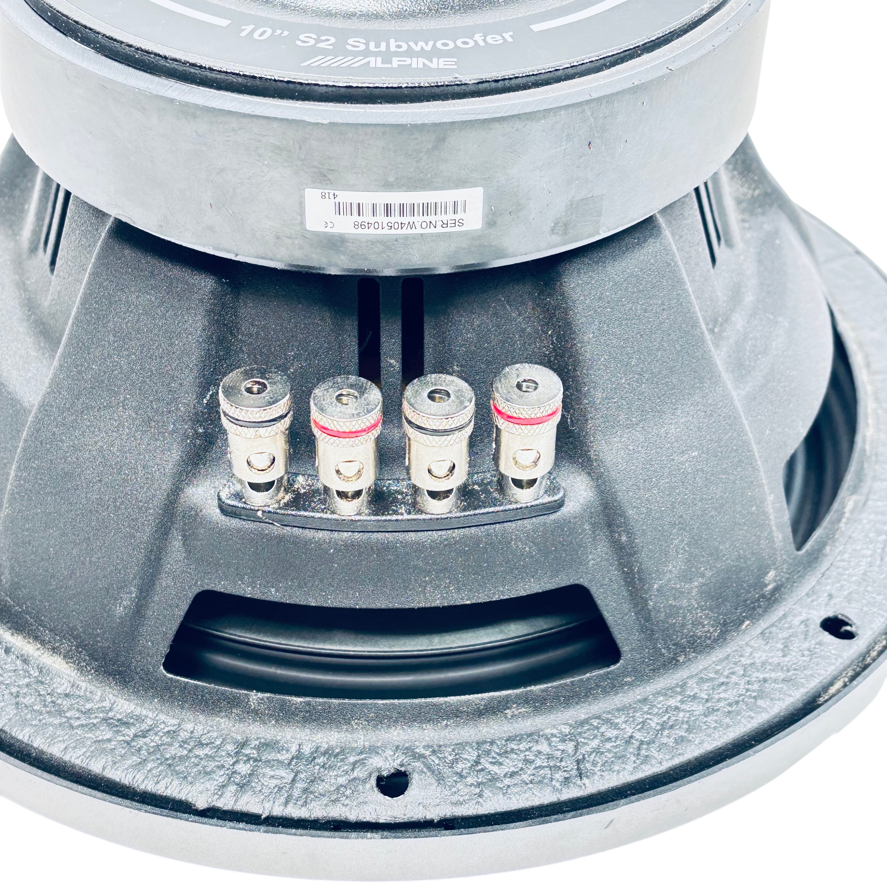 The Alpine 10" S2 Subwoofer (Model S2-W10D2) delivers powerful and clear bass with a 600W RMS and 1800W peak power rating. Featuring dual 2 ohm voice coils, this subwoofer offers flexible wiring options for custom audio setups. Its robust construction and Alpines renowned audio technology make it ideal for car audio enthusiasts seeking deep, rich low frequencies. Perfect for upgrading your vehicles sound system with high-performance bass.