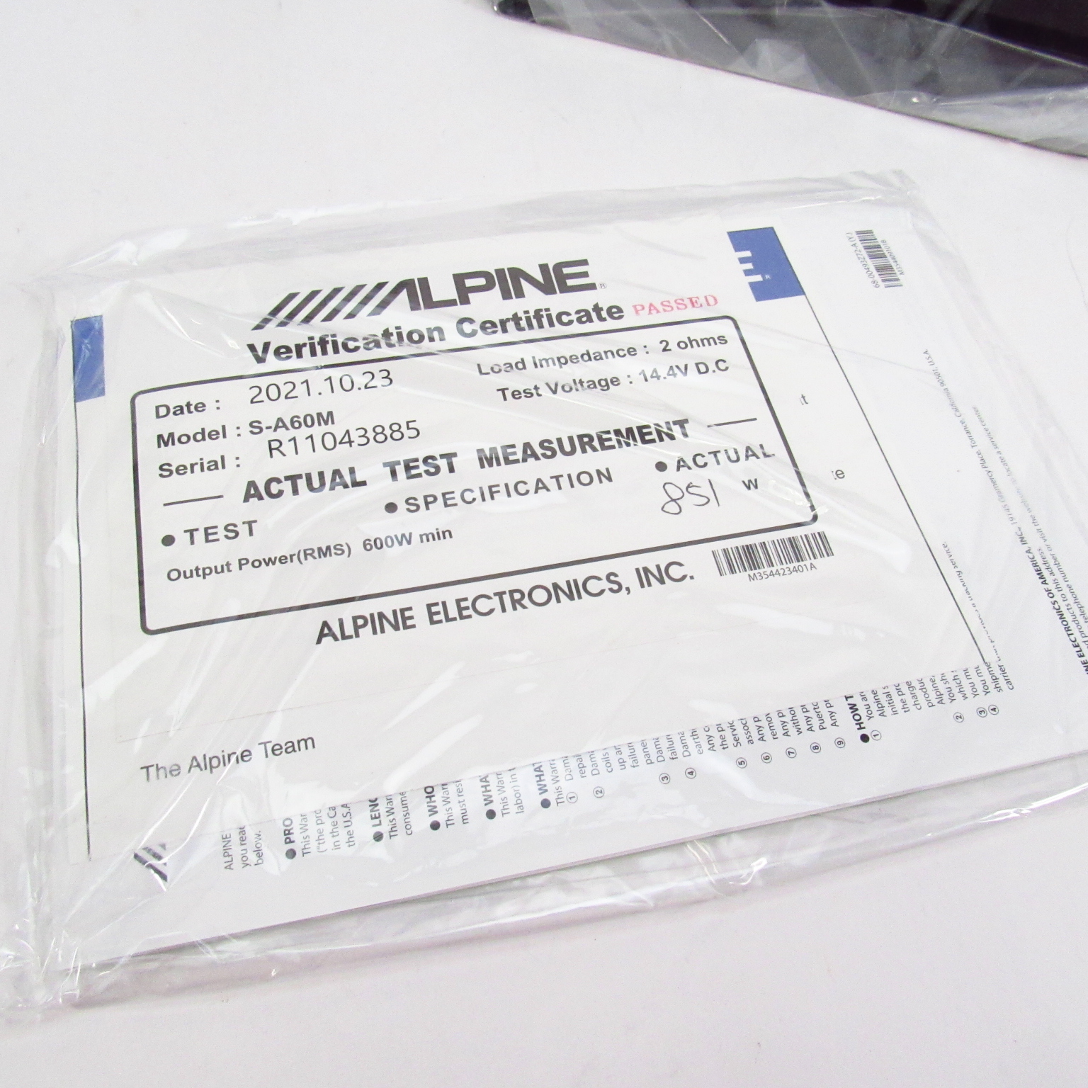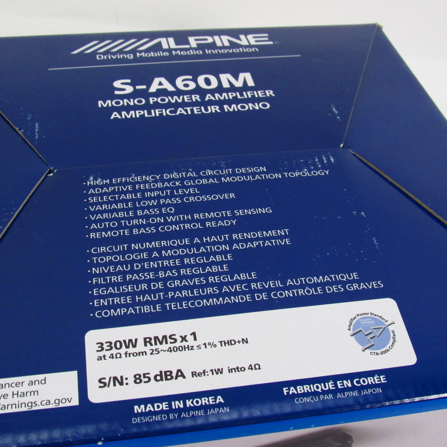 S/N: 85dBA Ref: 1W into 4-ohms
