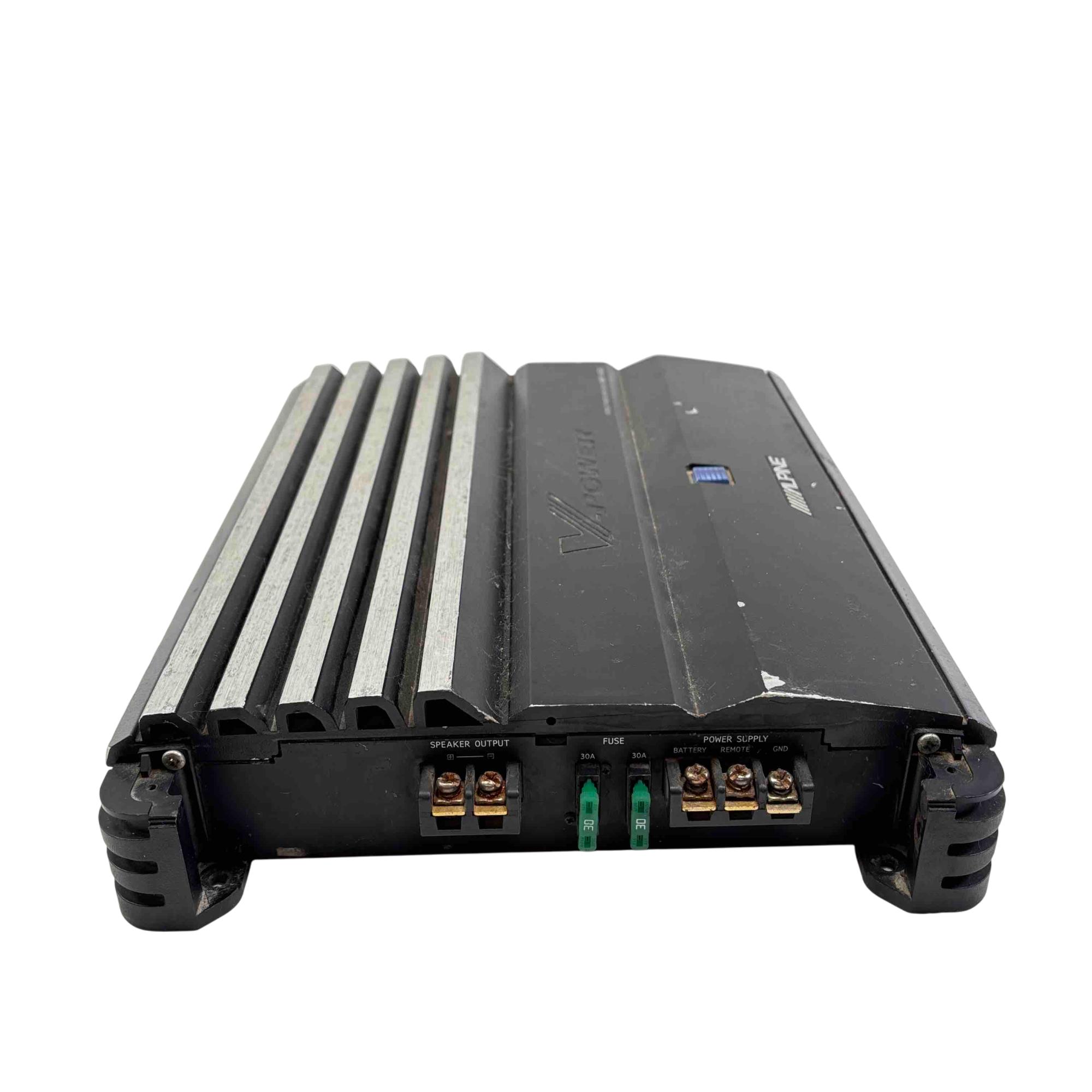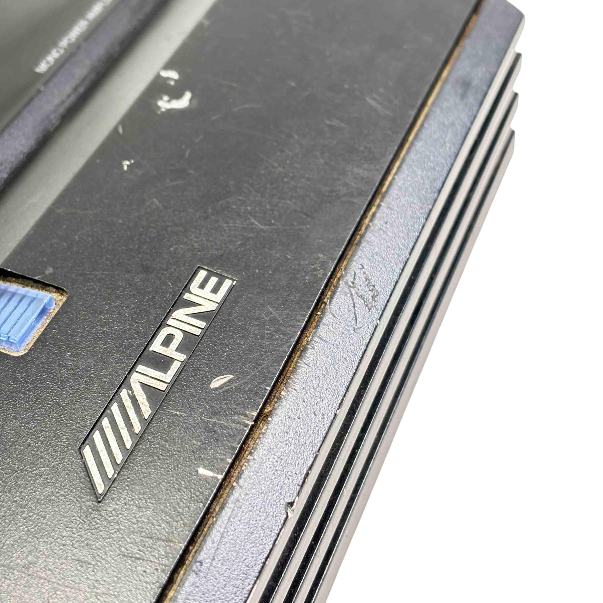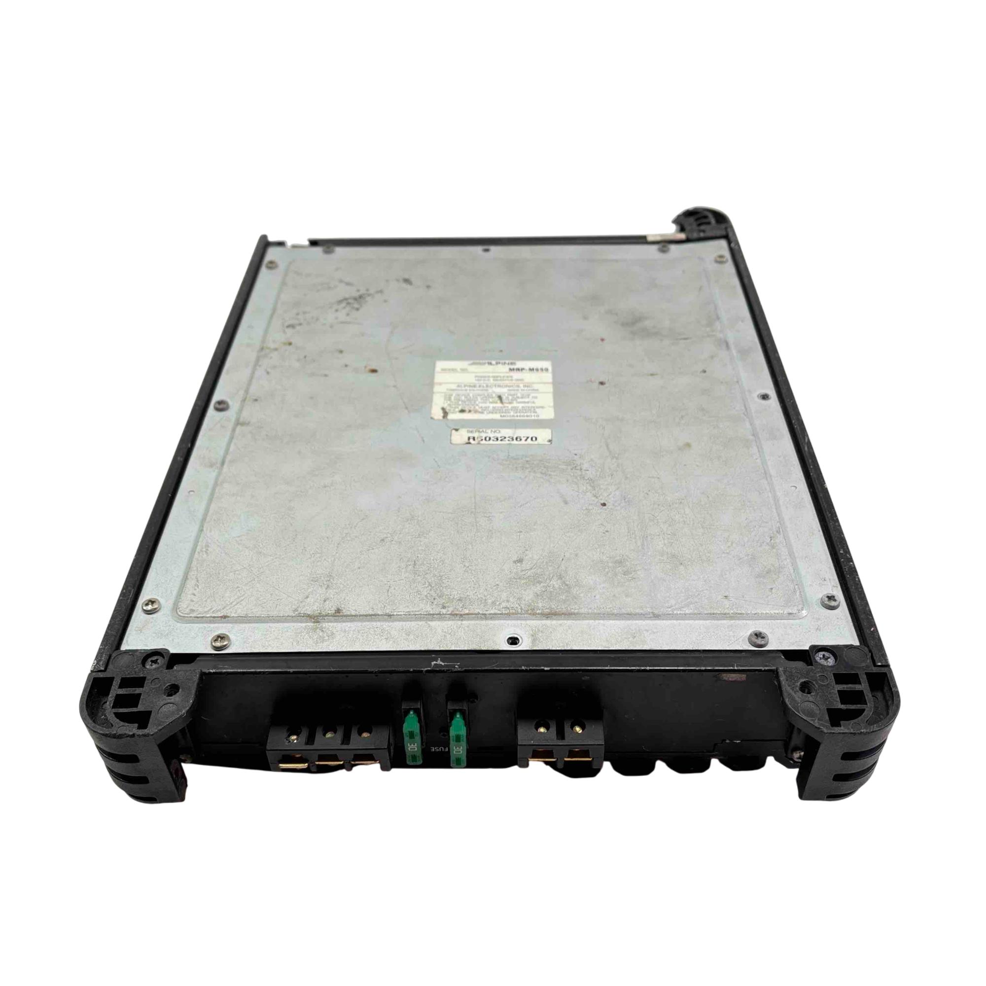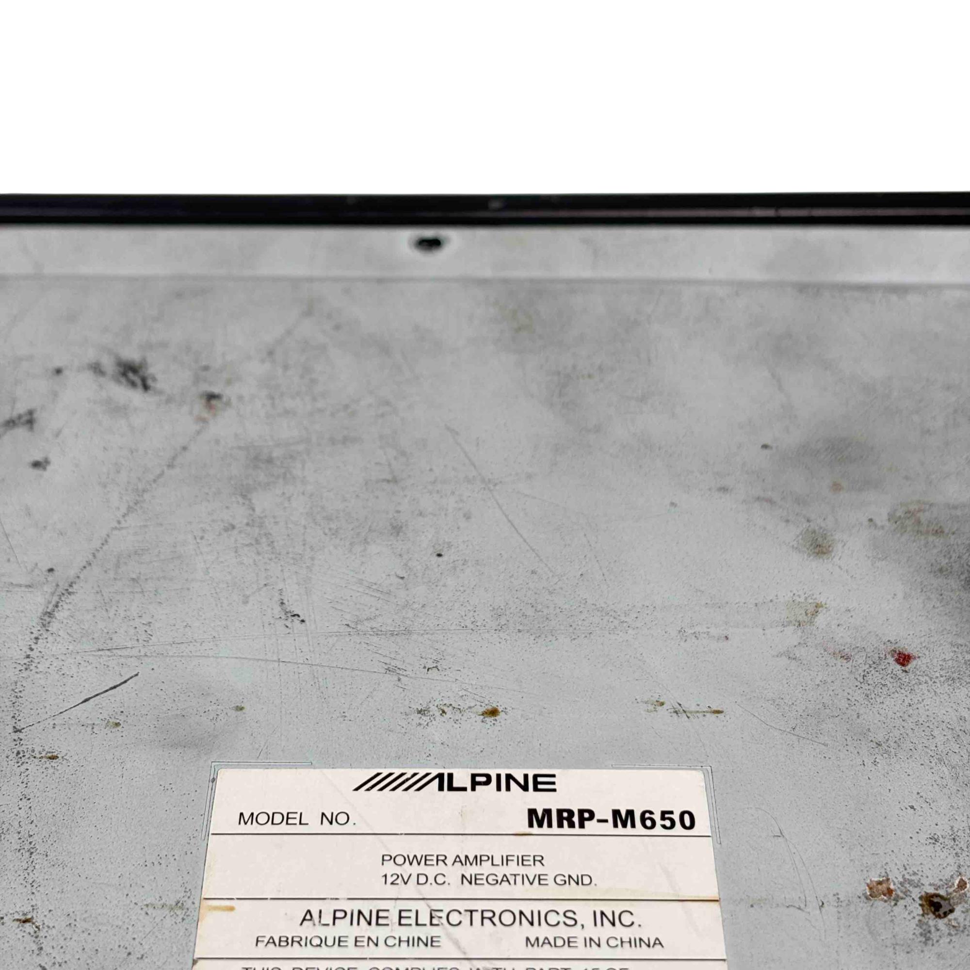 Alpine V-Power MRP-M650 Mono Power Amplifier is a high-performance car audio amplifier designed for powerful mono subwoofer output. Featuring a sleek black rectangular design with blue and white controls, this Alpine amplifier delivers clean and efficient power for enhanced audio clarity in automotive sound systems.