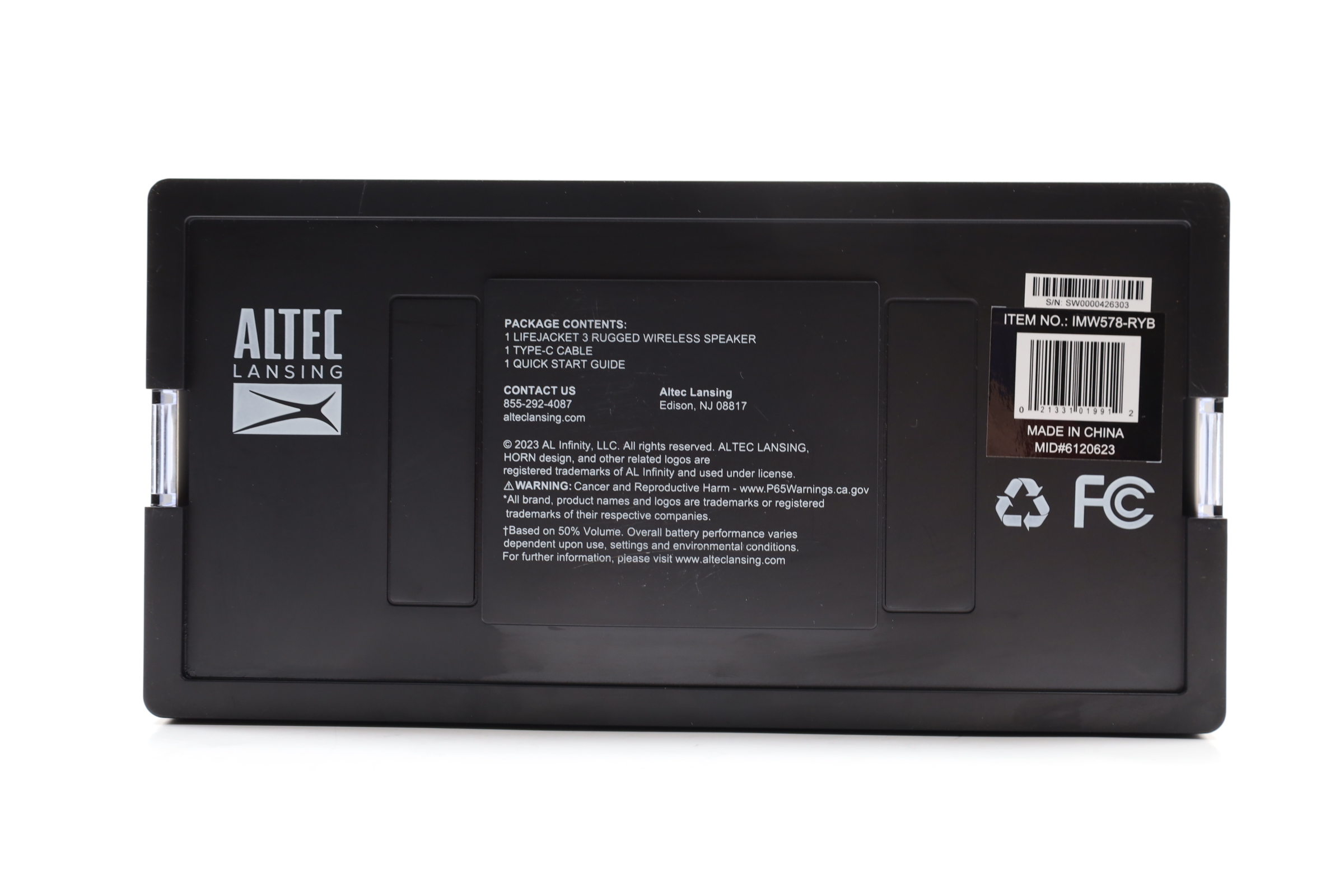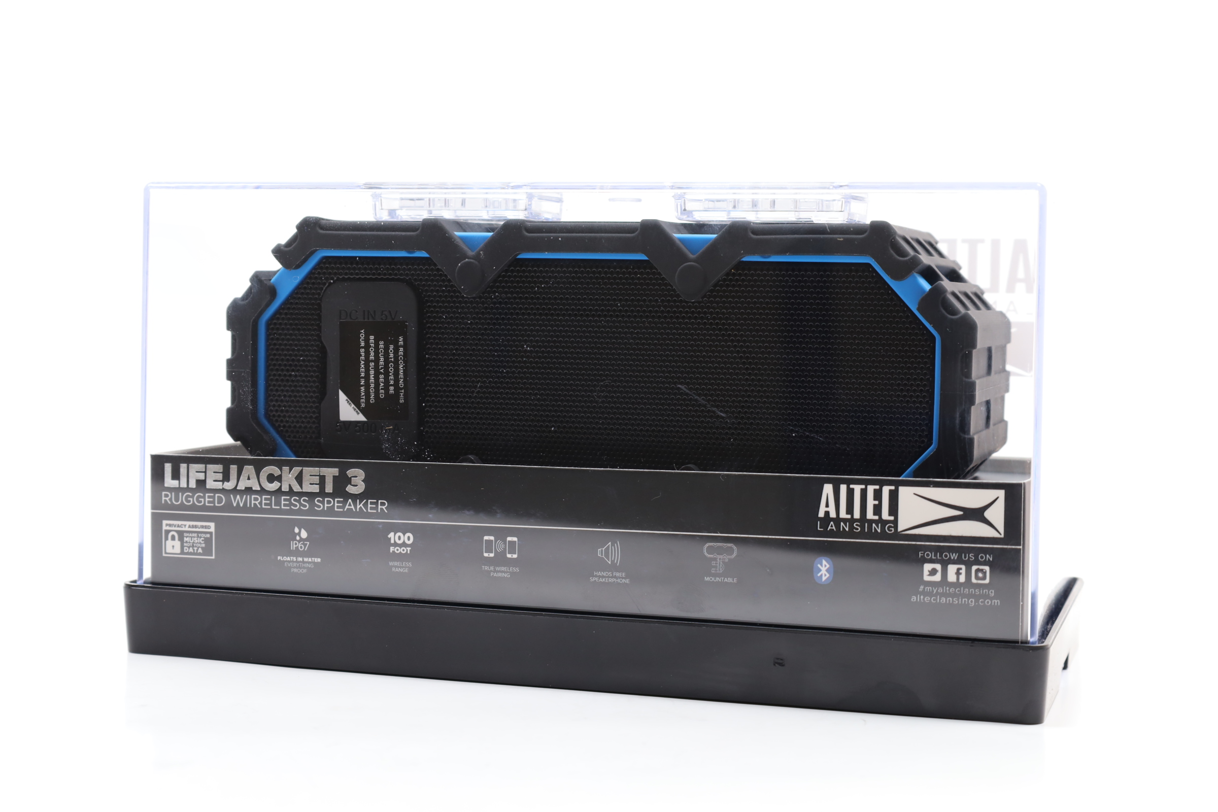 A rugged wireless Bluetooth speaker designed to withstand harsh conditions, making it an ideal companion for outdoor enthusiasts and adventure seekers. It features a washable rubberized skin and is IP67 rated, ensuring it is waterproof, dustproof, and shockproof. Additionally, it can float, allowing for music playback in aquatic environments. The speaker offers a considerable connectivity range of up to 50 feet and includes a built-in universal mounting bracket, facilitating attachment to various equipment such as bikes, kayaks, and motorcycles. It supports true wireless stereo plus pairing, enabling the connection of up to two speakers simultaneously to enhance the audio experience.