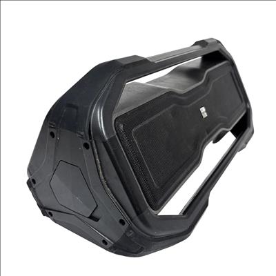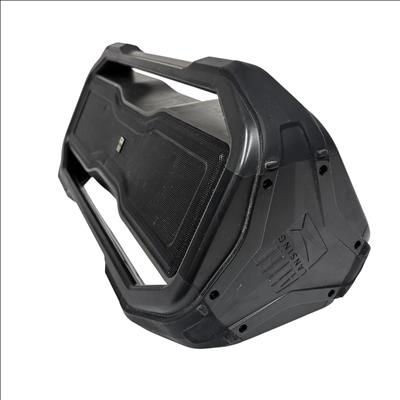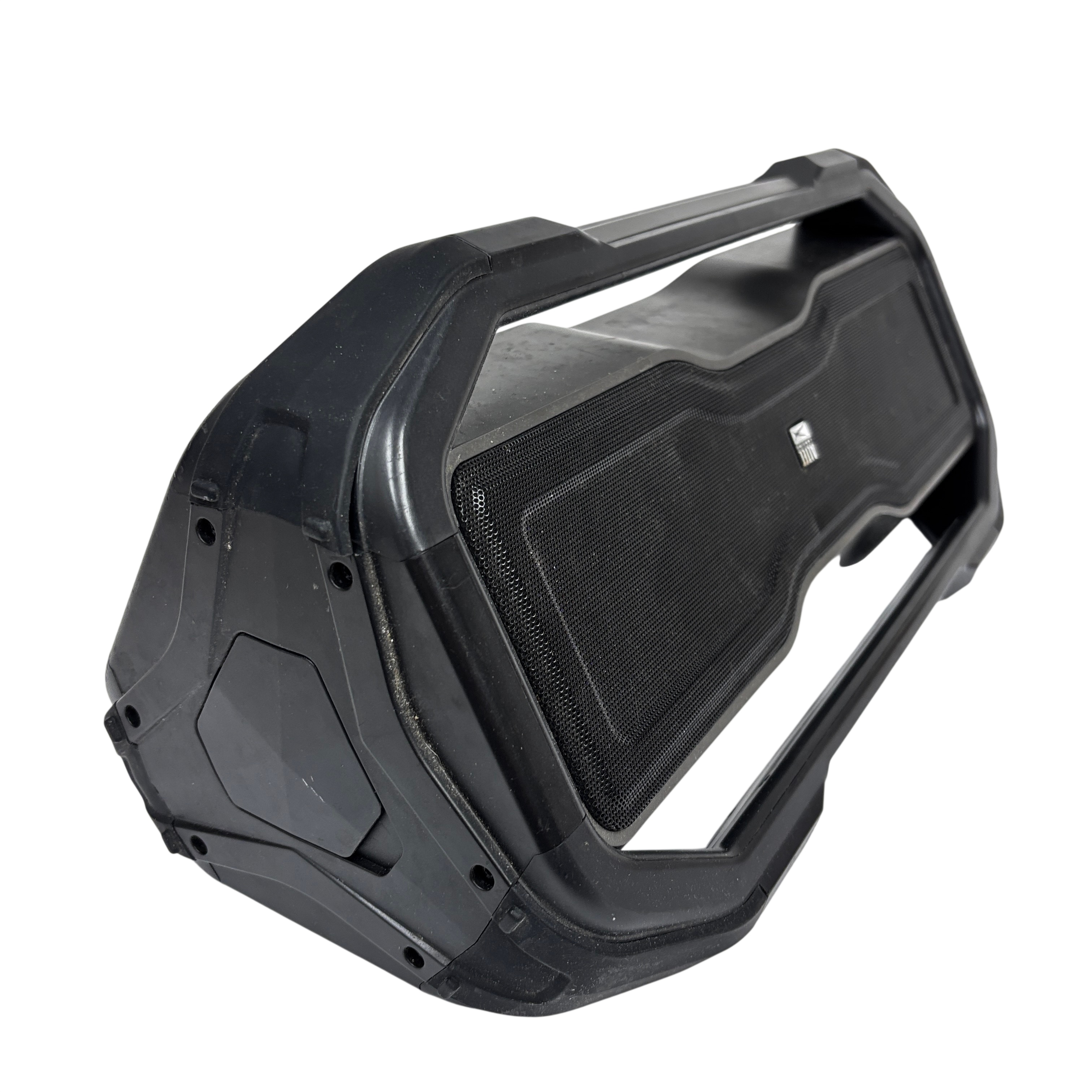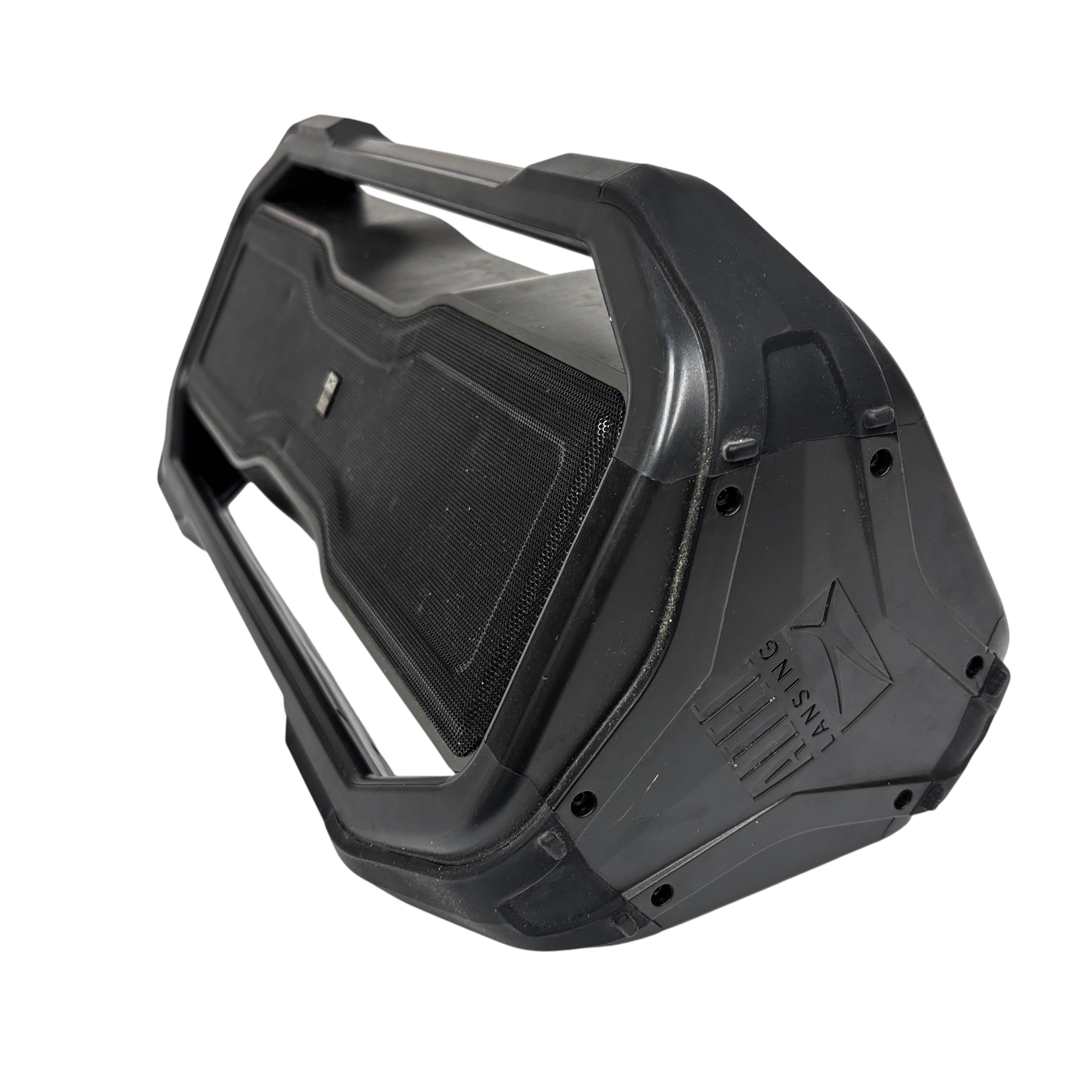 The Altec Lansing Rockbox IMW999 is a portable speaker designed for powerful audio output with a rugged and durable build. Operating on an 18V DC power source at 2.5A, this speaker delivers clear sound performance suitable for indoor and outdoor use. Included with the speaker is the original power adapter for convenient plug-in operation. Its compact size and integrated handle make it easy to carry, making it an ideal choice for music lovers seeking portability and reliable sound.