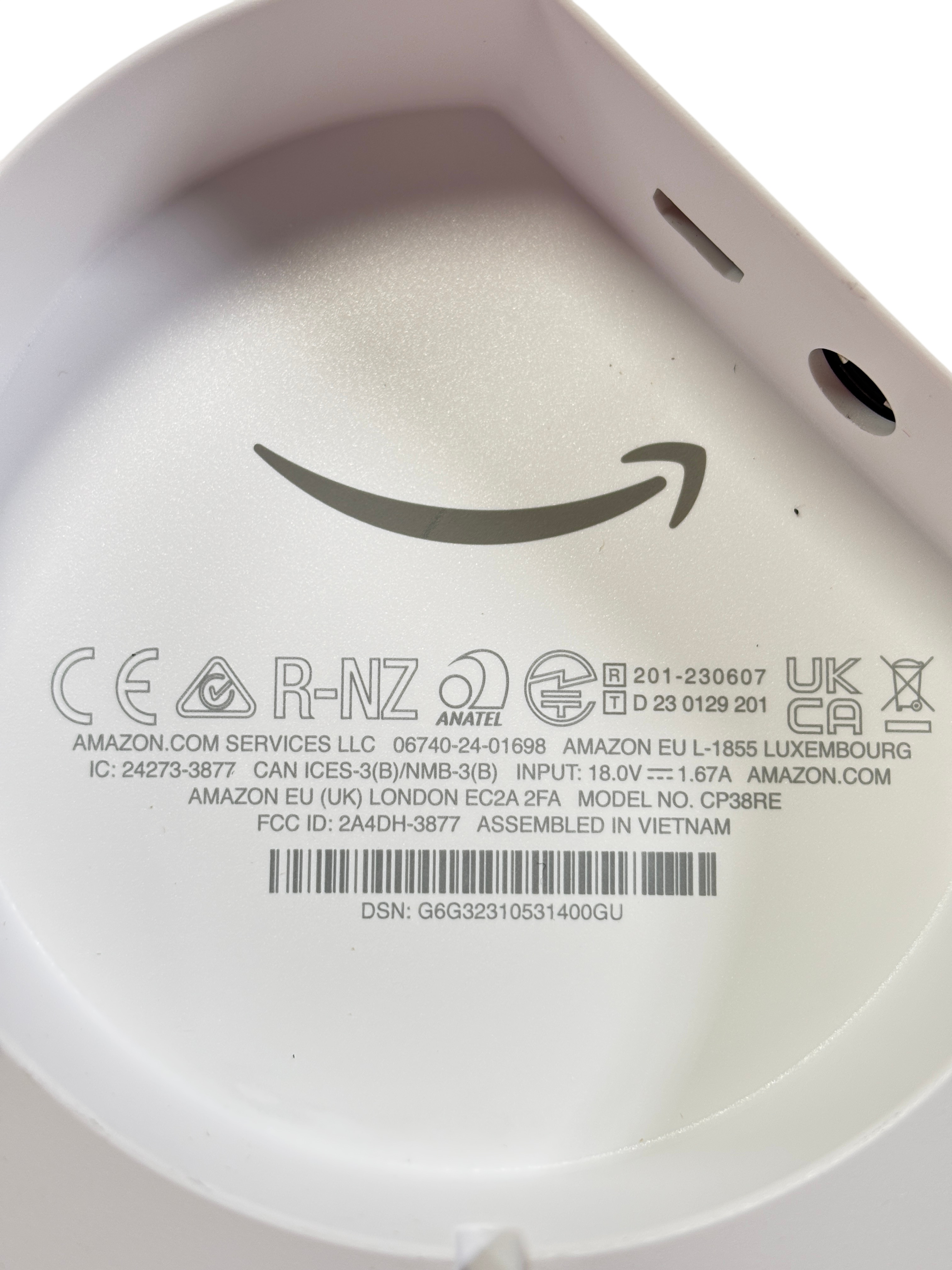 Amazon Echo Show 15 Gen 2 (Model CP38RE) is a 15-inch smart display designed to bring Alexa voice assistant and smart home control to your living space. Featuring an 18V power input, this device can be wall-mounted or placed on a stand for versatile use. The included remote control allows easy navigation, while the HD screen delivers clear visuals for video calls, entertainment, and smart home monitoring. Ideal for modern homes, this Echo Show combines functionality with sleek design.