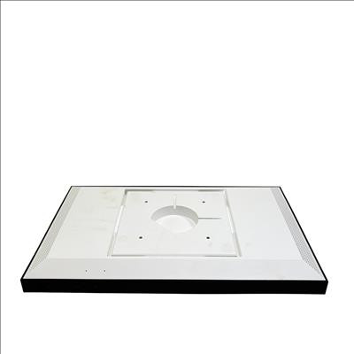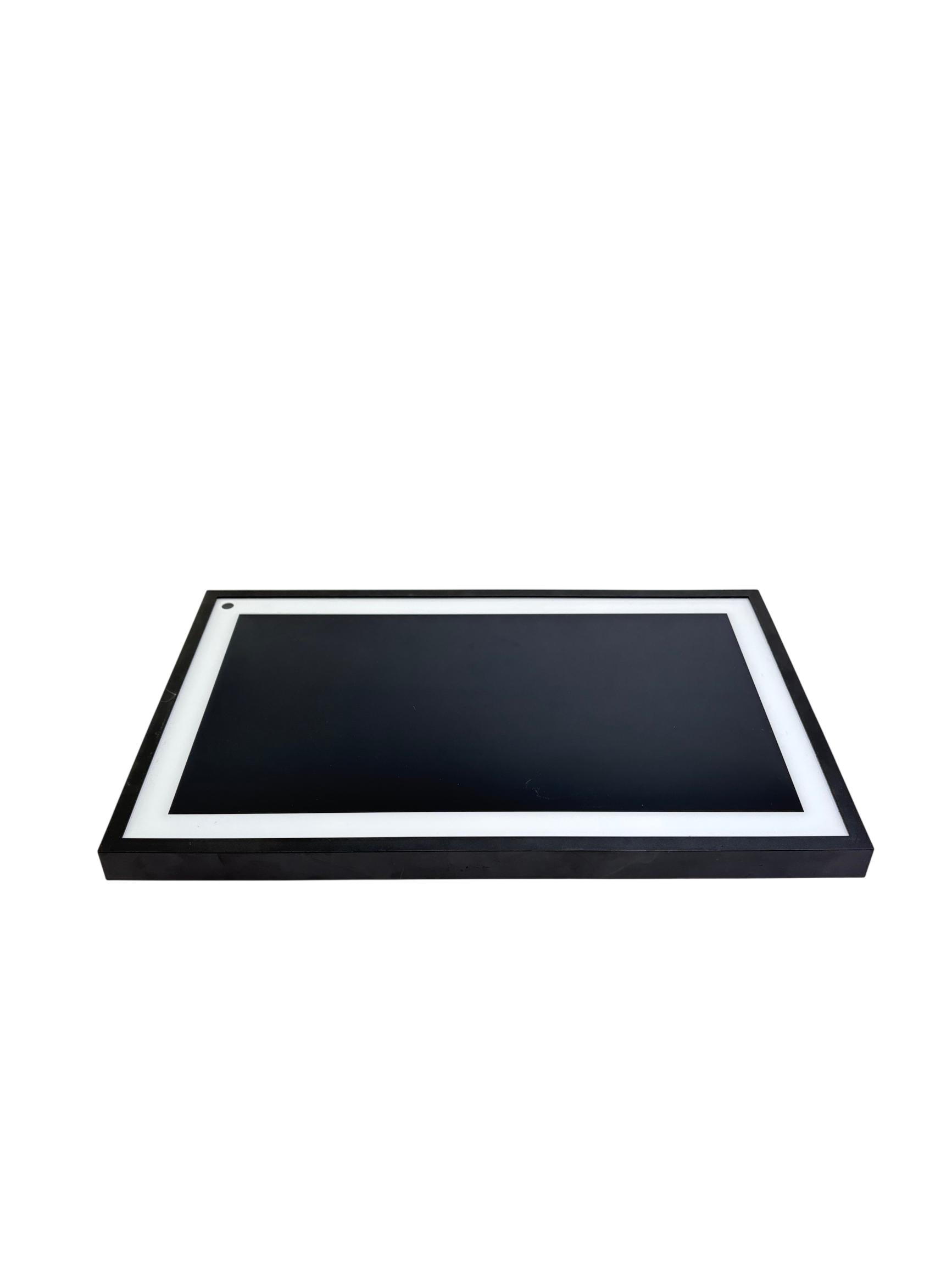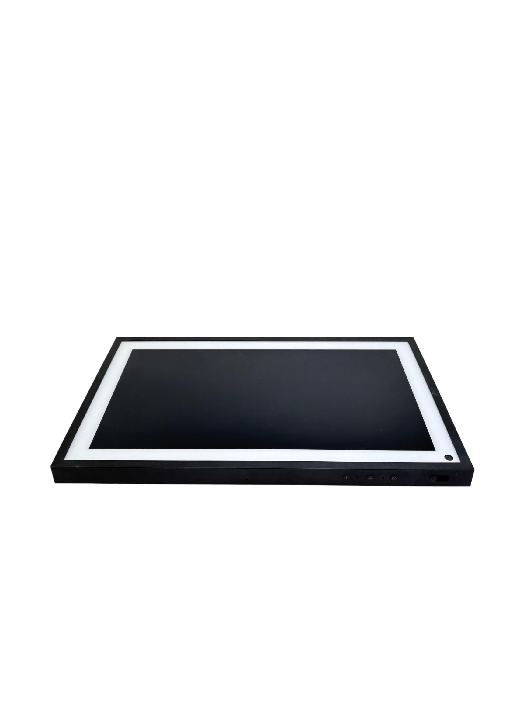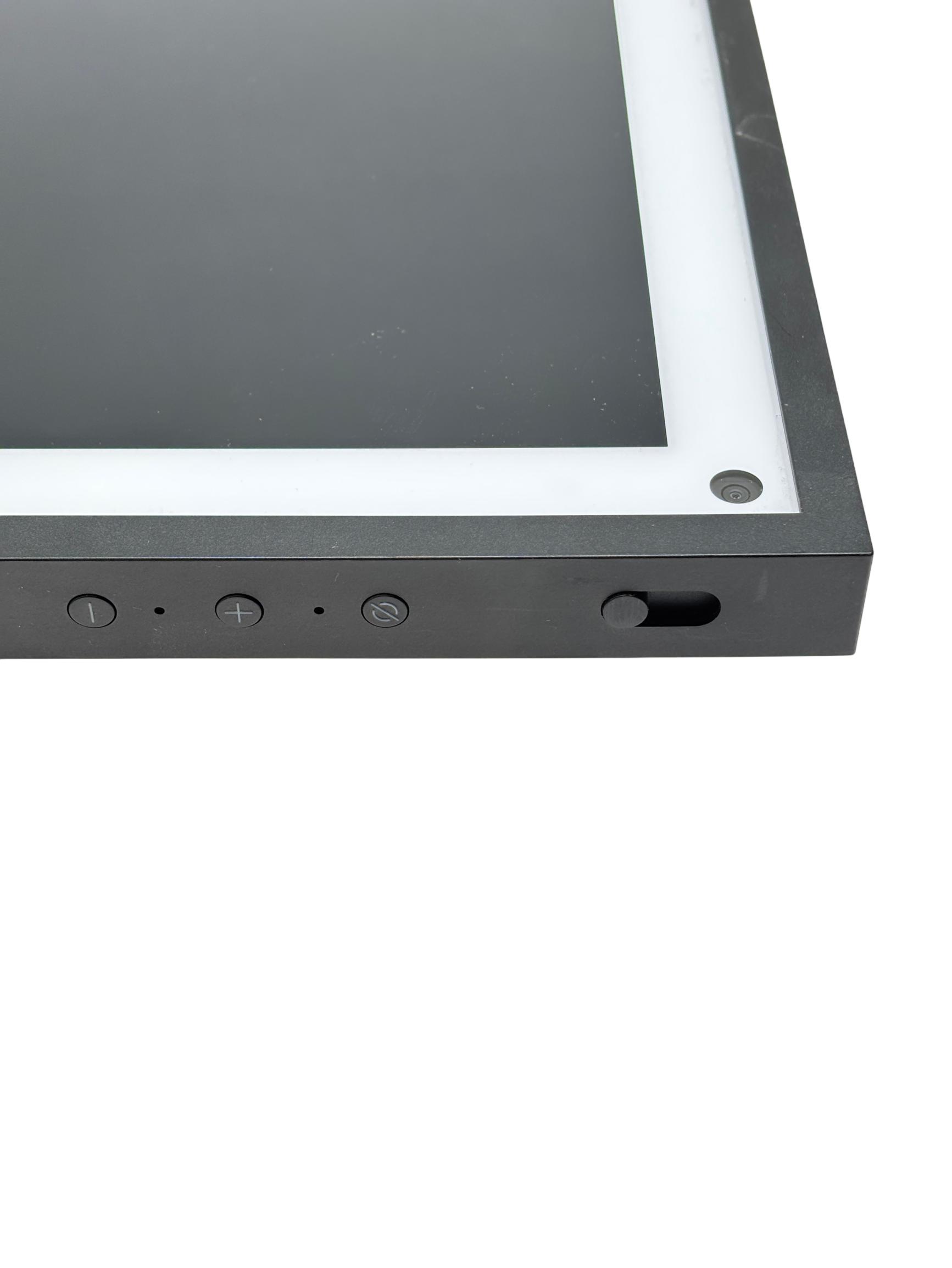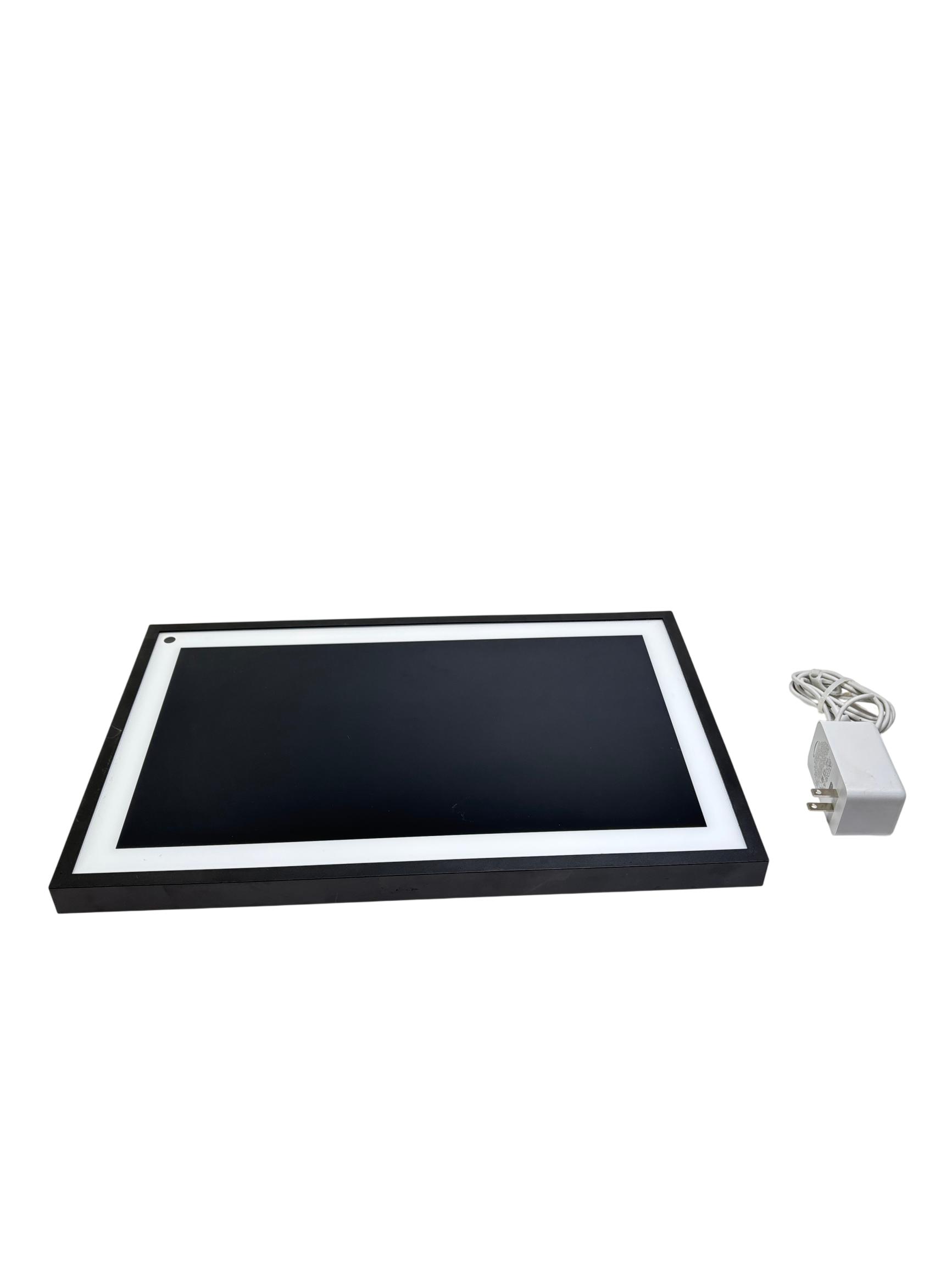 Amazon Echo Show 15 H6Y2A5 15.6" Smart Display features a sleek, rectangular design with a black and white color scheme and a thin profile. This smart display offers a vibrant 15.6-inch touchscreen that seamlessly integrates multimedia and smart home control functionalities, making it an advanced hub for entertainment and voice-activated assistance.