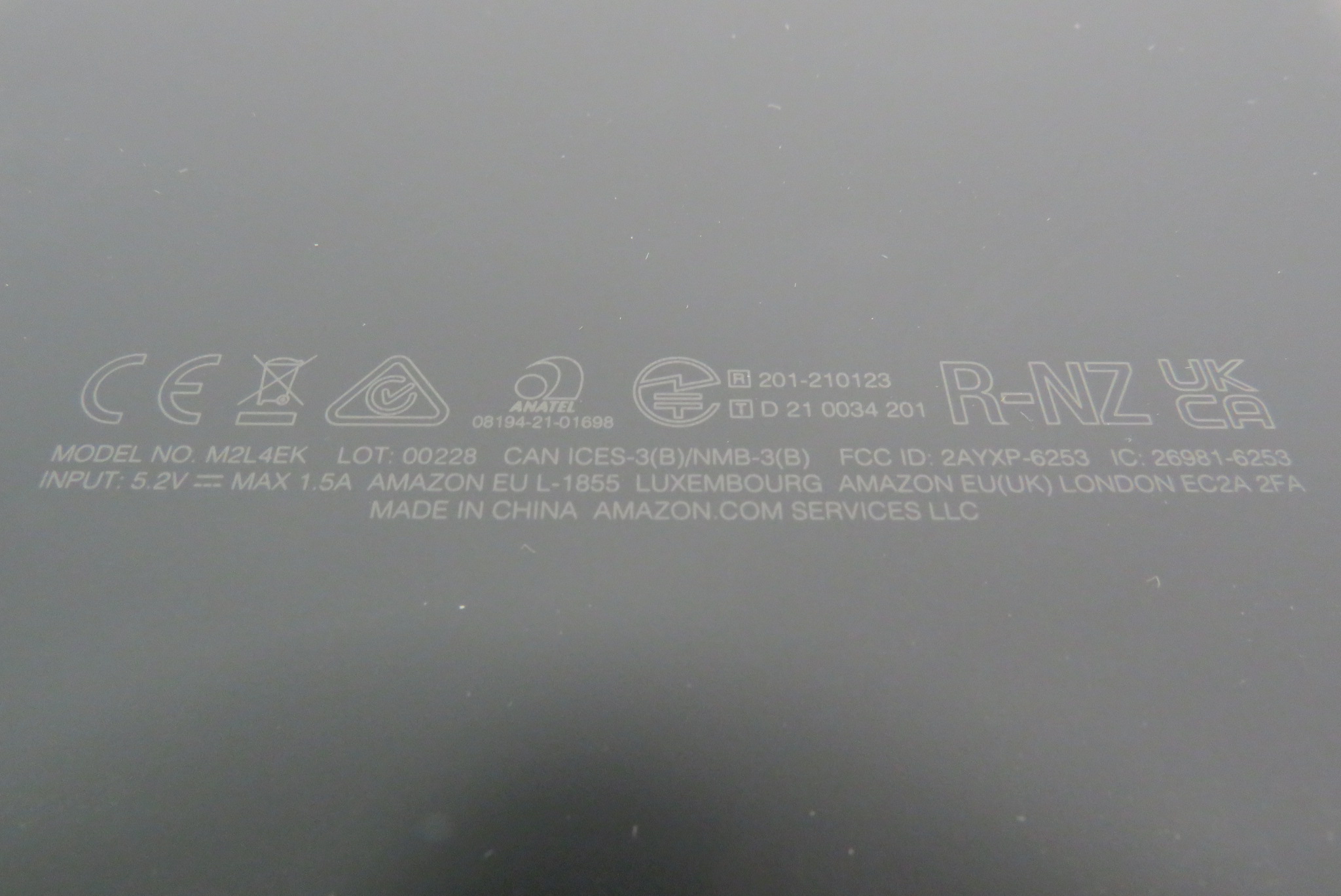 Model: Kindle M2L4EK Paperwhite Signature Edition