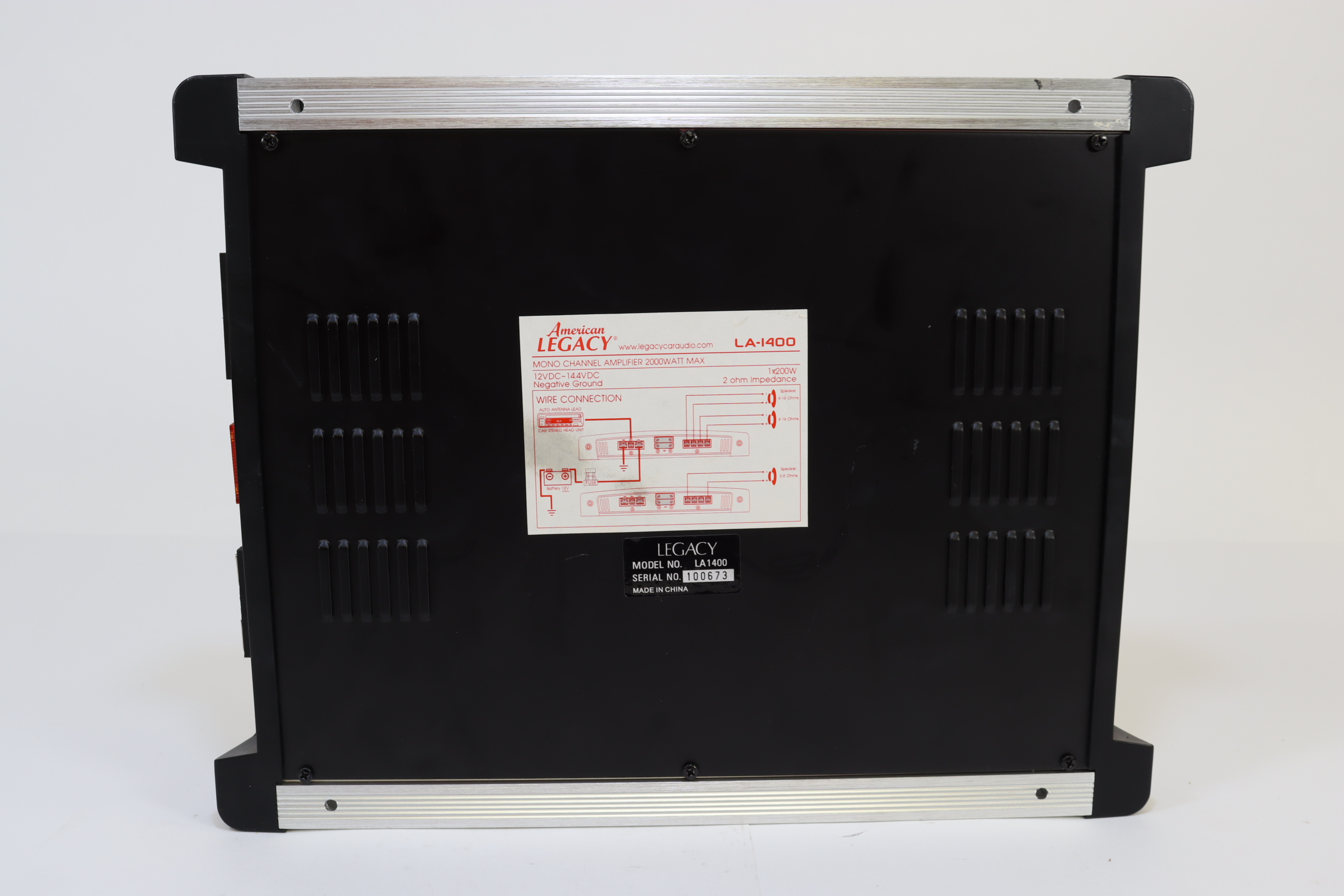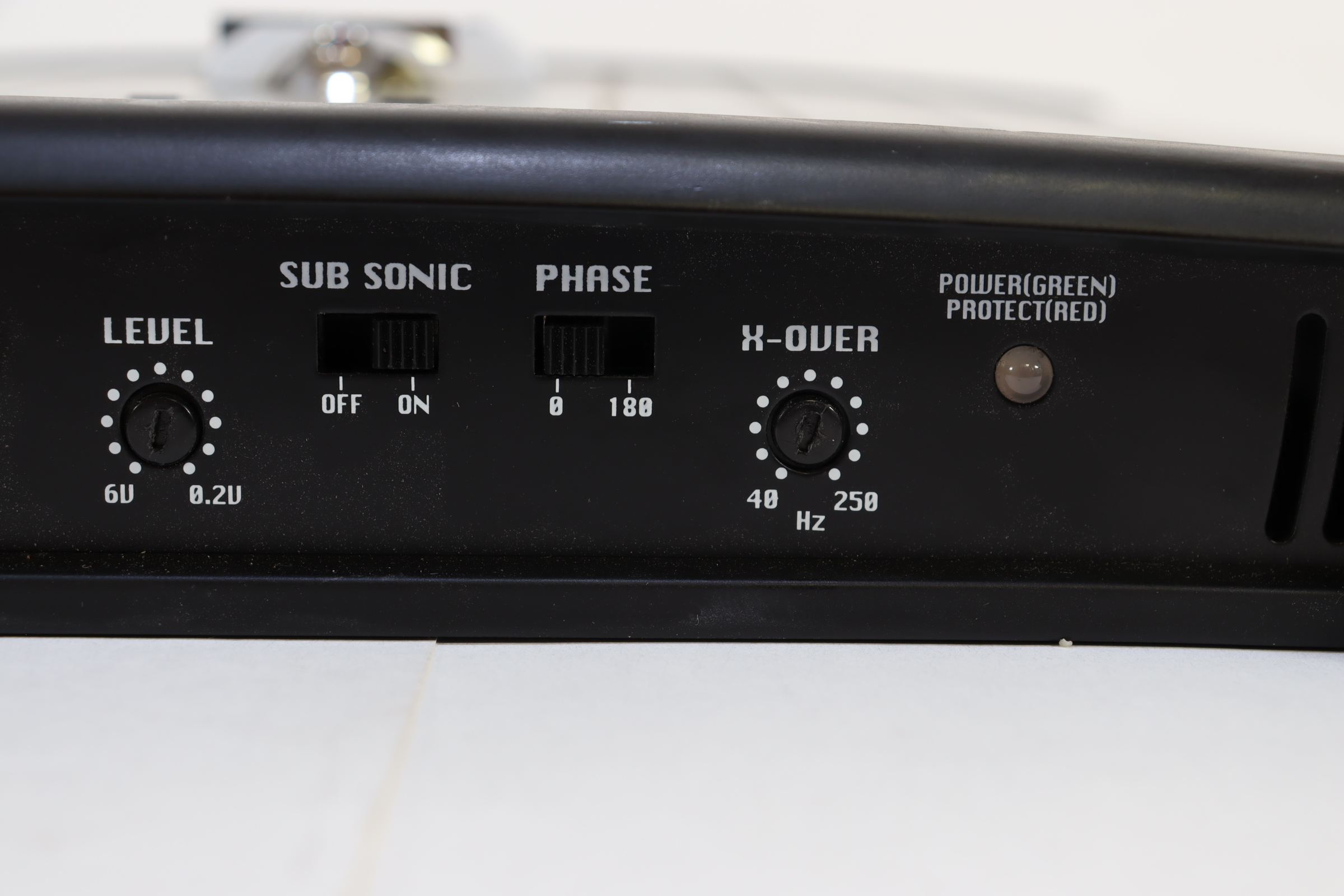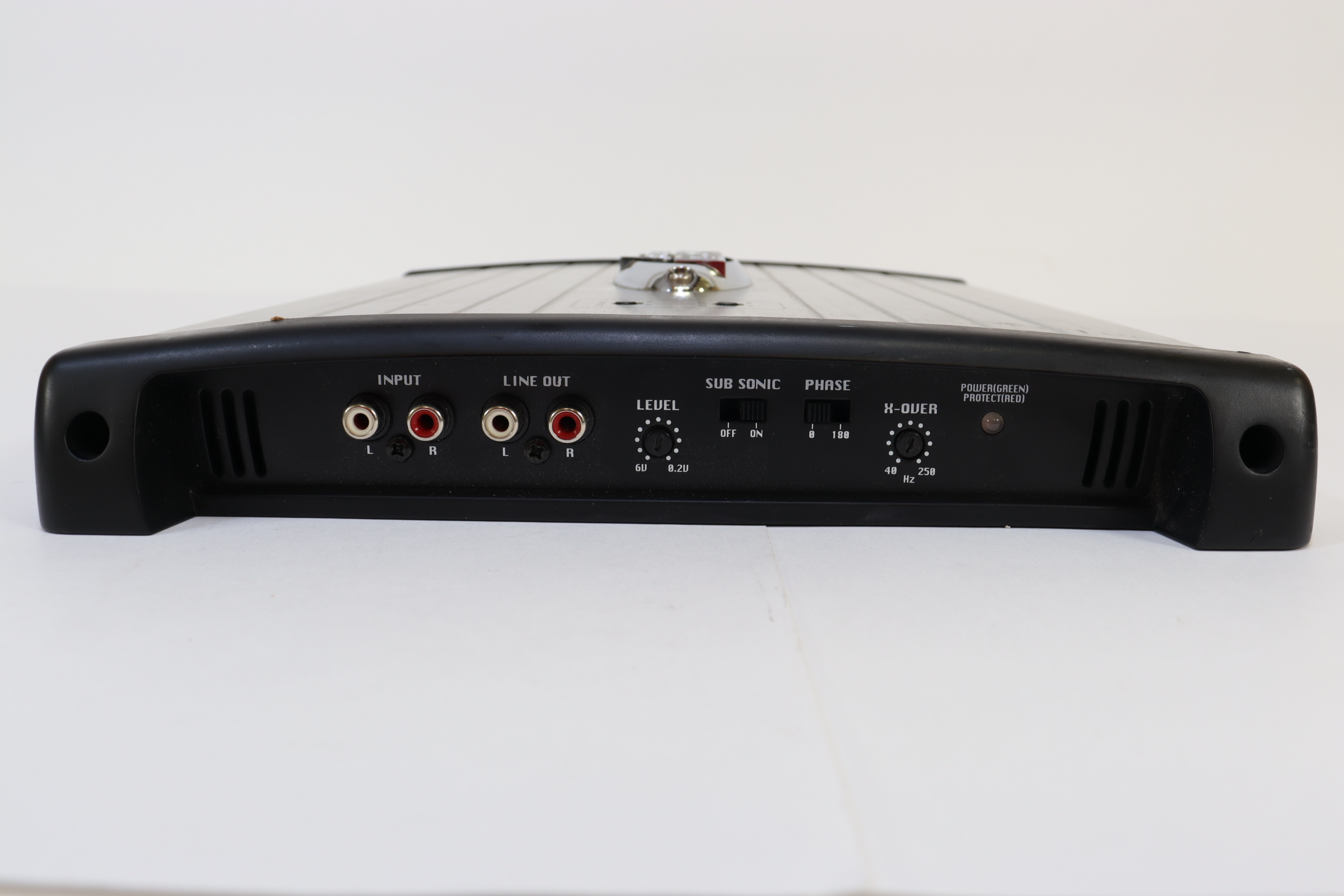 2000W x 1 Output @ 2 Ohms Mono Block Subwoofer Amplifier 2 Ohm Stable MOSFET Power Supply Variable Low-Pass : 40 Hz-250 Hz Variable Input Level (Gain) Control : 6V-200mV Variable Bass Boost : 0~+18dB Variable Subsonic Filter : 10Hz~100Hz, 24dB/Octave Sub Sonic Switch Thermal / Overload / Short Circuit Protection Soft Turn On/Off Phase Control 0-180 degree Custom Terminal Block for Speaker Connection Power & Protection LED Indicator Low Level RCA Input : 10K Ohms Line Level RCA Output Frequency Response : 20 Hz-250 Hz Signal to Noise Ratio: >90dB THD:0.1 % 2x40 Amp Maxi Type Fuse Slim Size Amplifier Design For Easy Installation Dimensions: 10.74''W x1.69''H x 12''L