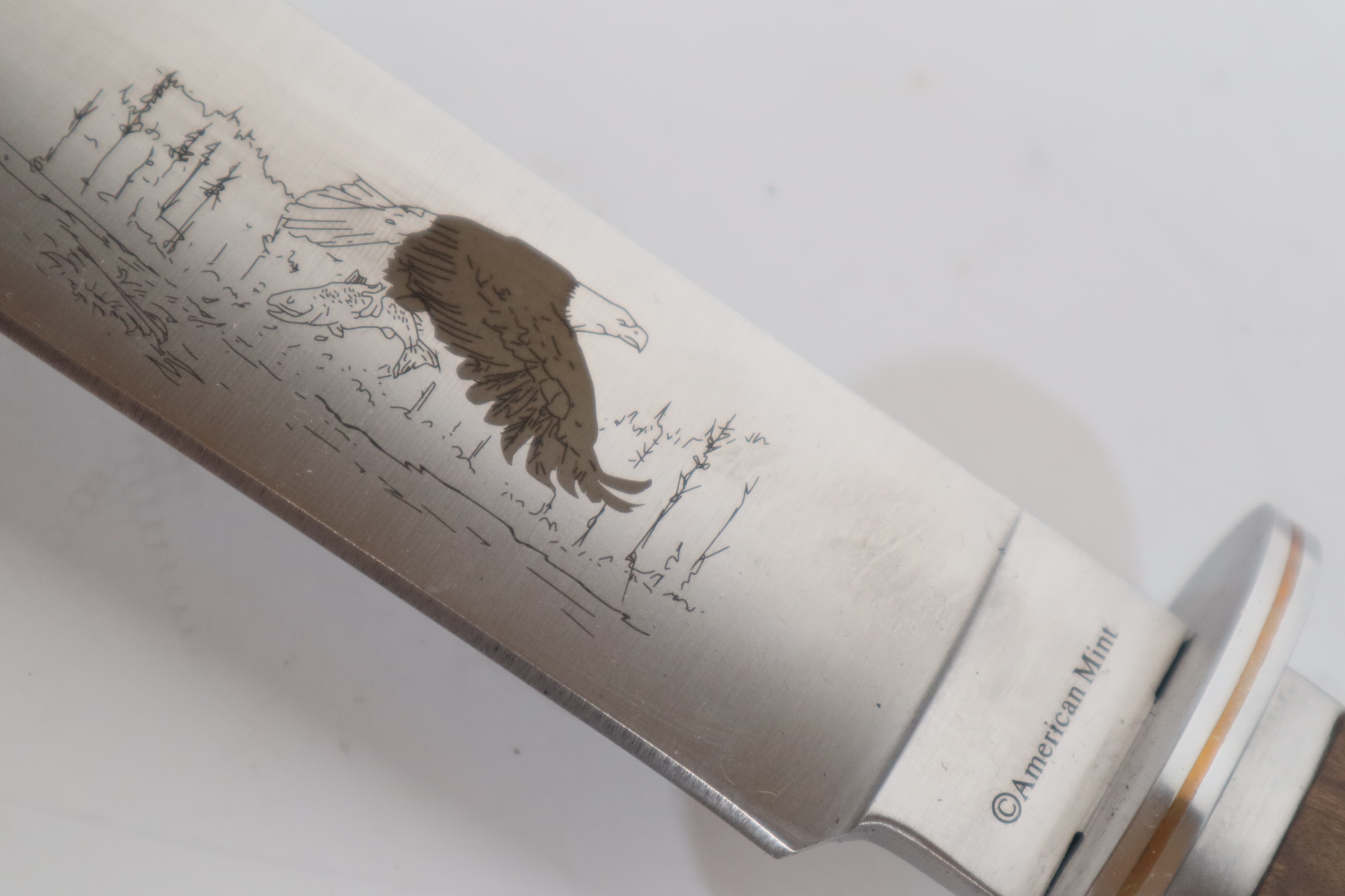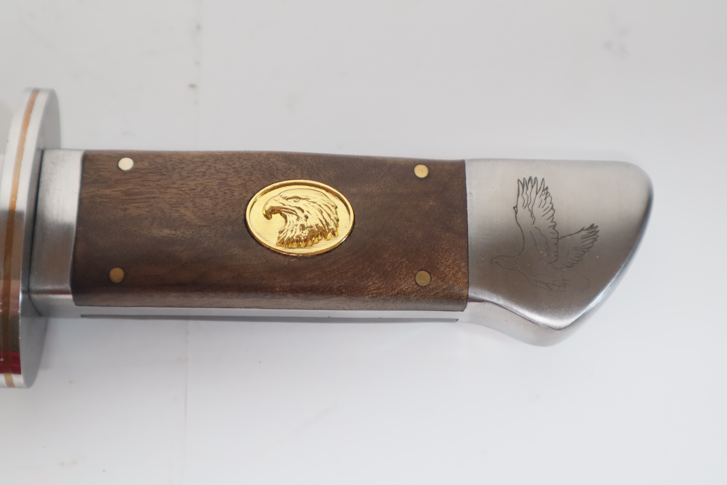 * Blade crafted in 420 Stainless Steel with detailed etching of the Bald Eagle