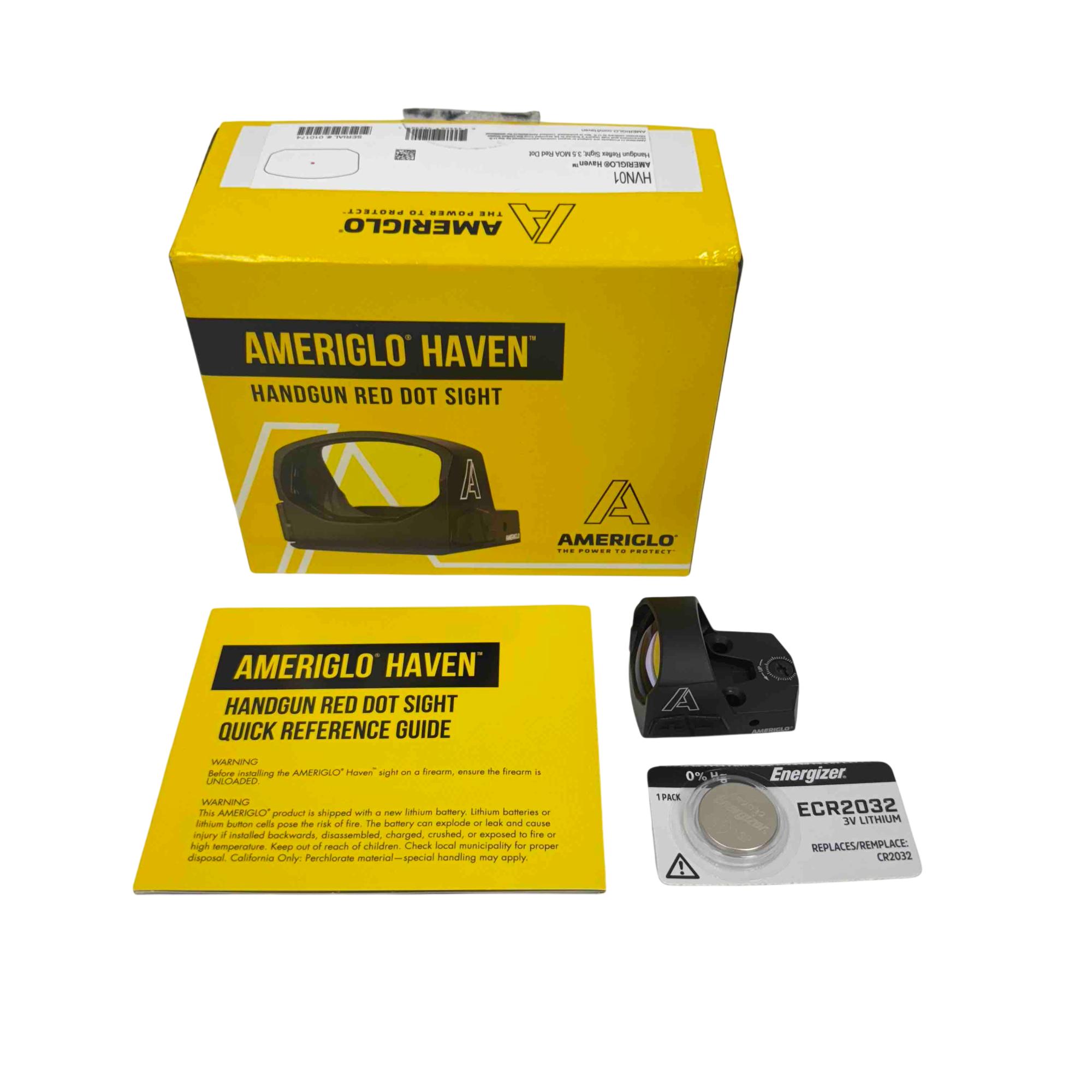 Enhance your shooting precision with the Ameriglo Haven Handgun Red Dot Sight. Featuring a 3.5 MOA reflex lens, this sight ensures rapid target acquisition and superior accuracy. Perfect for both tactical and recreational use, its durable design and clear optics make it an essential addition to your firearm accessories.