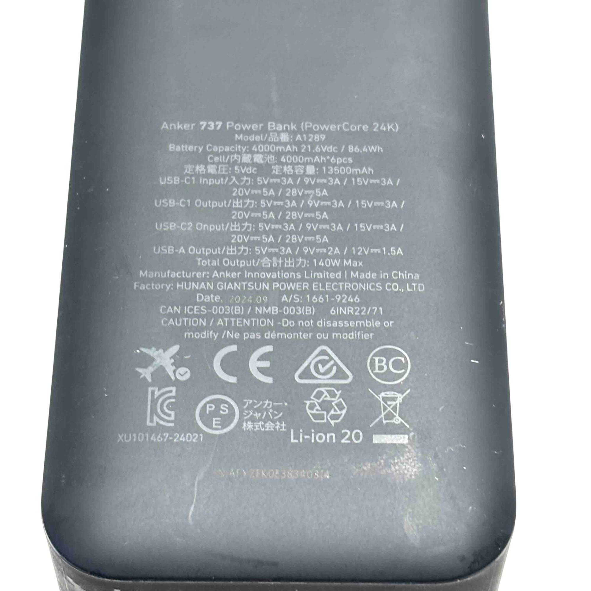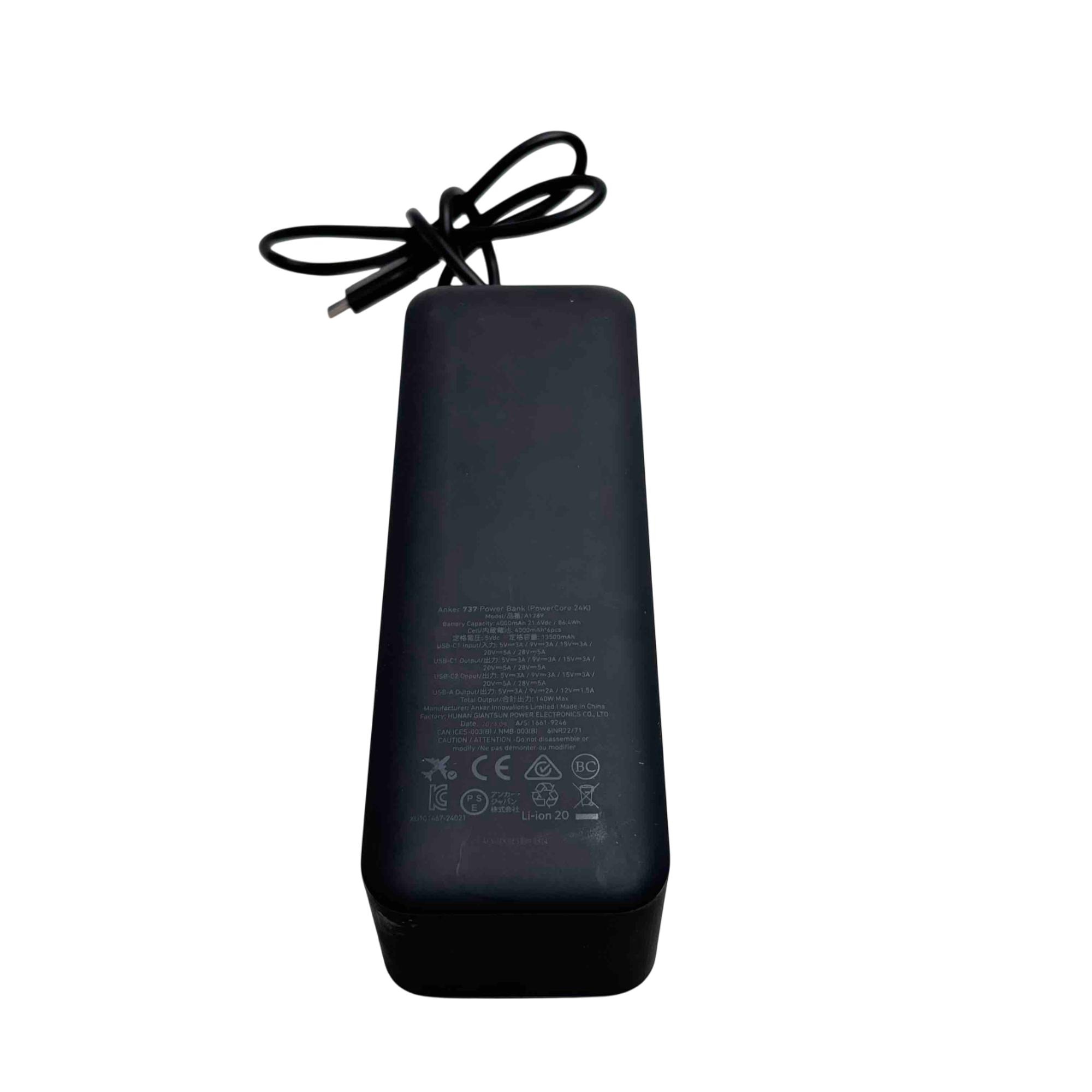 Introducing the Anker 737 Power Bank (PowerCore 24K), a powerhouse of energy to keep your devices running all day. With a massive 140W output and a battery capacity of 24,000mAh, this sleek black and silver power bank charges your devices with top efficiency. Perfect for travel or everyday use, it’s an essential gadget for staying connected wherever you are.