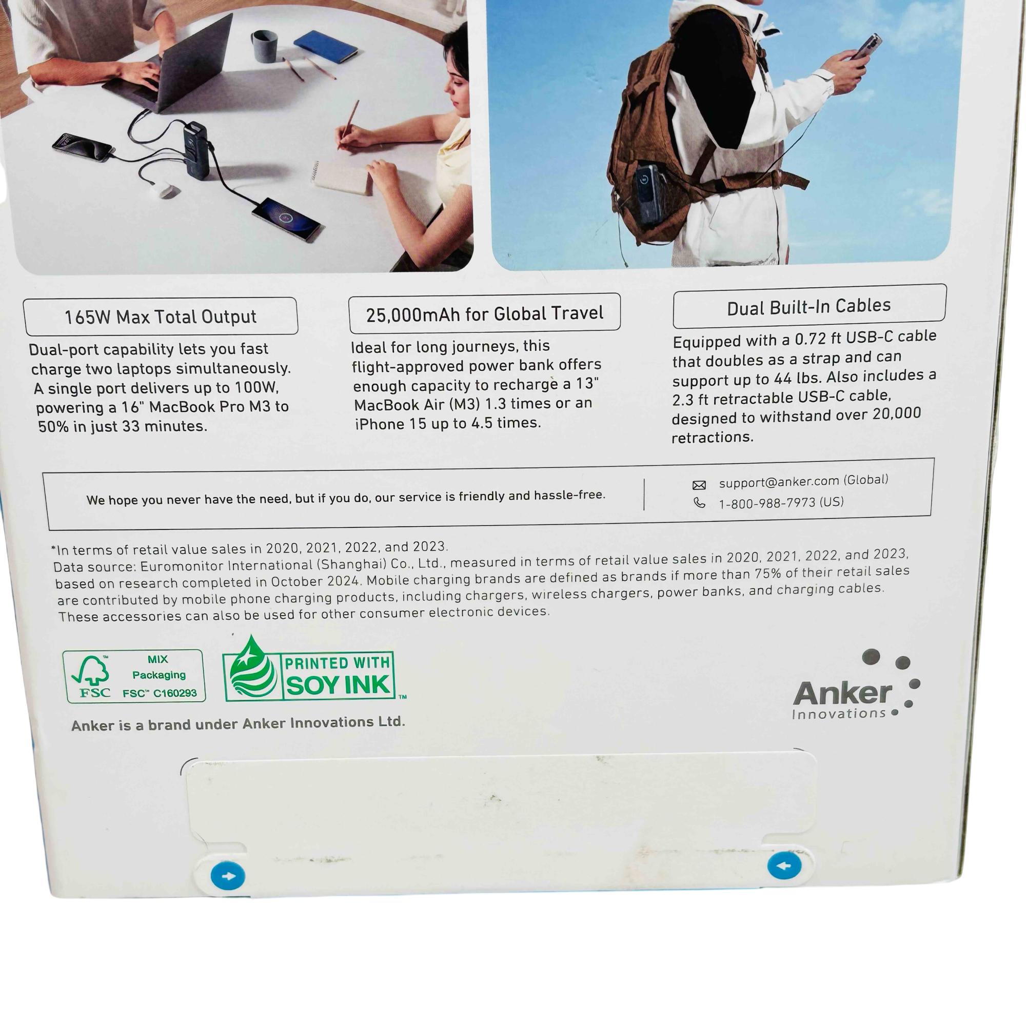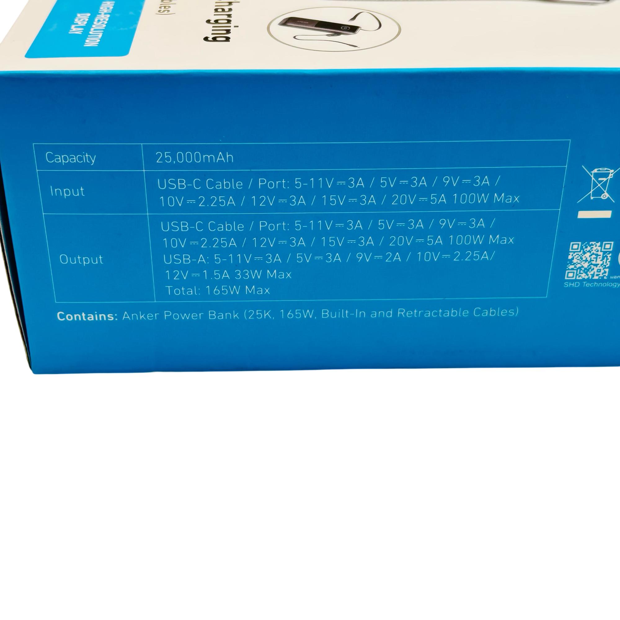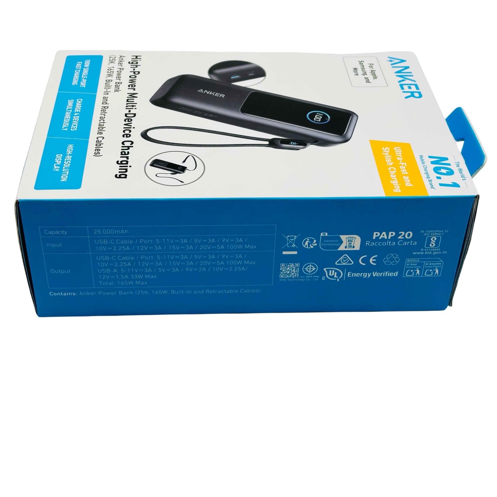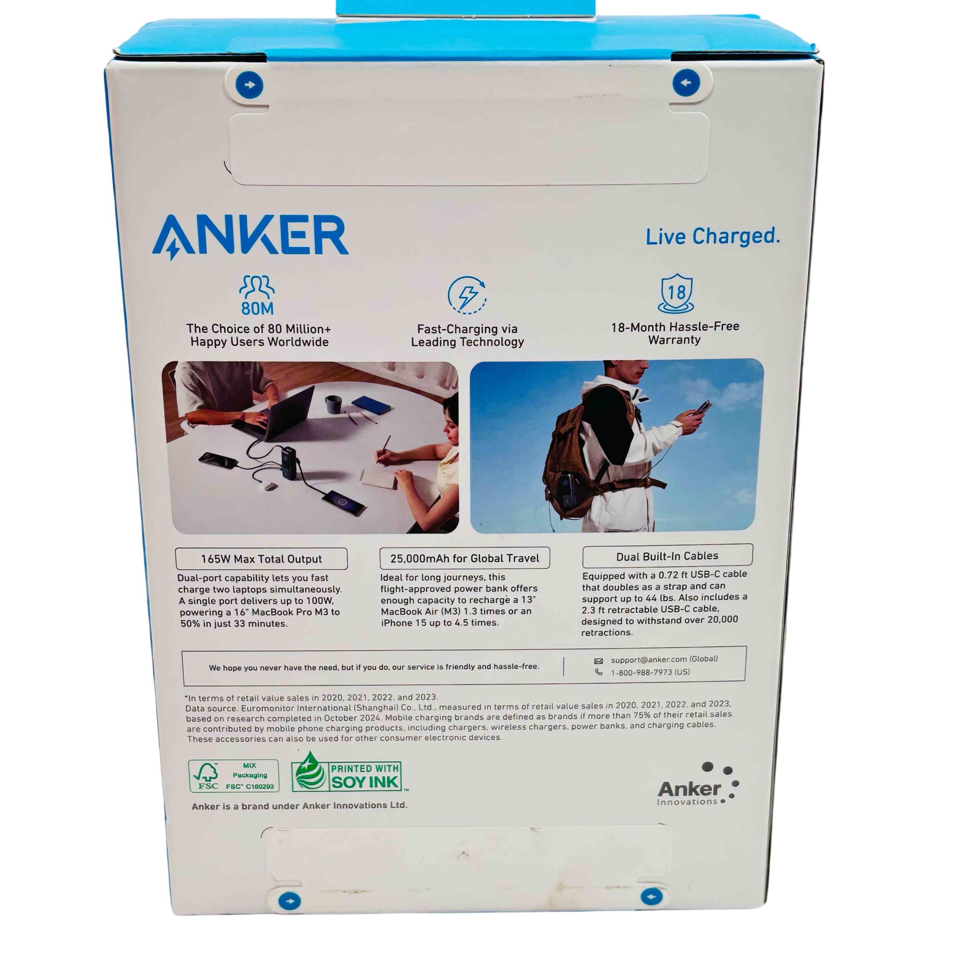Anker Power Bank 25K (A1695H11) offers a massive 25000mAh capacity with 165W high-power output for fast and efficient charging. Designed for multi-device use, it features built-in and retractable cables, allowing simultaneous charging of up to four devices including laptops, smartphones, and other electronics. Compatible with a wide range of devices such as iPhone, Samsung, Google Pixel, MacBook, and more, it delivers both portability and powerful performance in a stylish and functional design.
