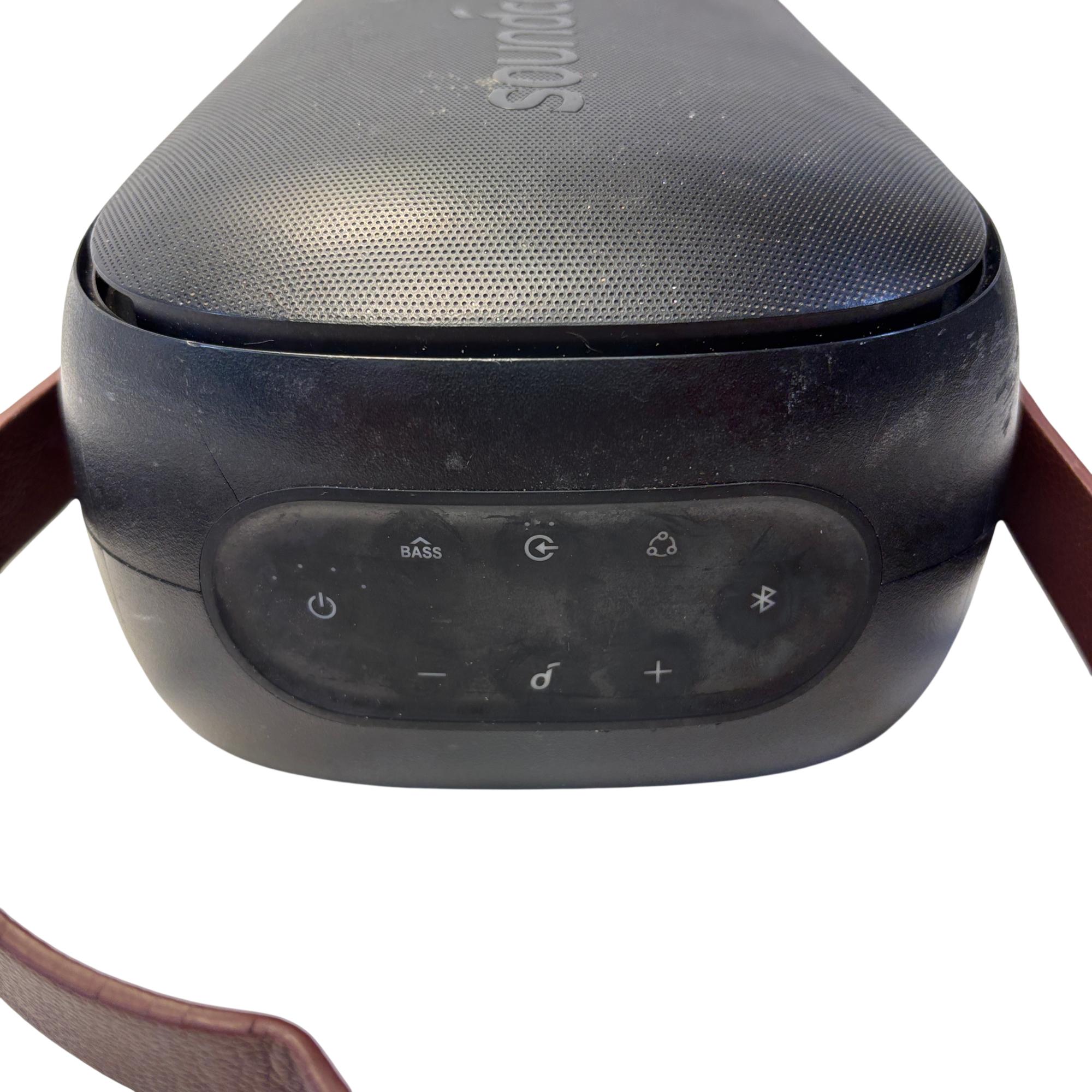 The Anker Soundcore Trance Go Bluetooth Speaker delivers powerful, immersive sound with advanced BassUp technology for enhanced bass performance. This portable speaker features a sleek black design with a red handle, making it easy to carry while providing crisp audio for outdoor and indoor use. Engineered for on-the-go music lovers, it offers reliable Bluetooth connectivity and robust build quality suited for everyday adventures.