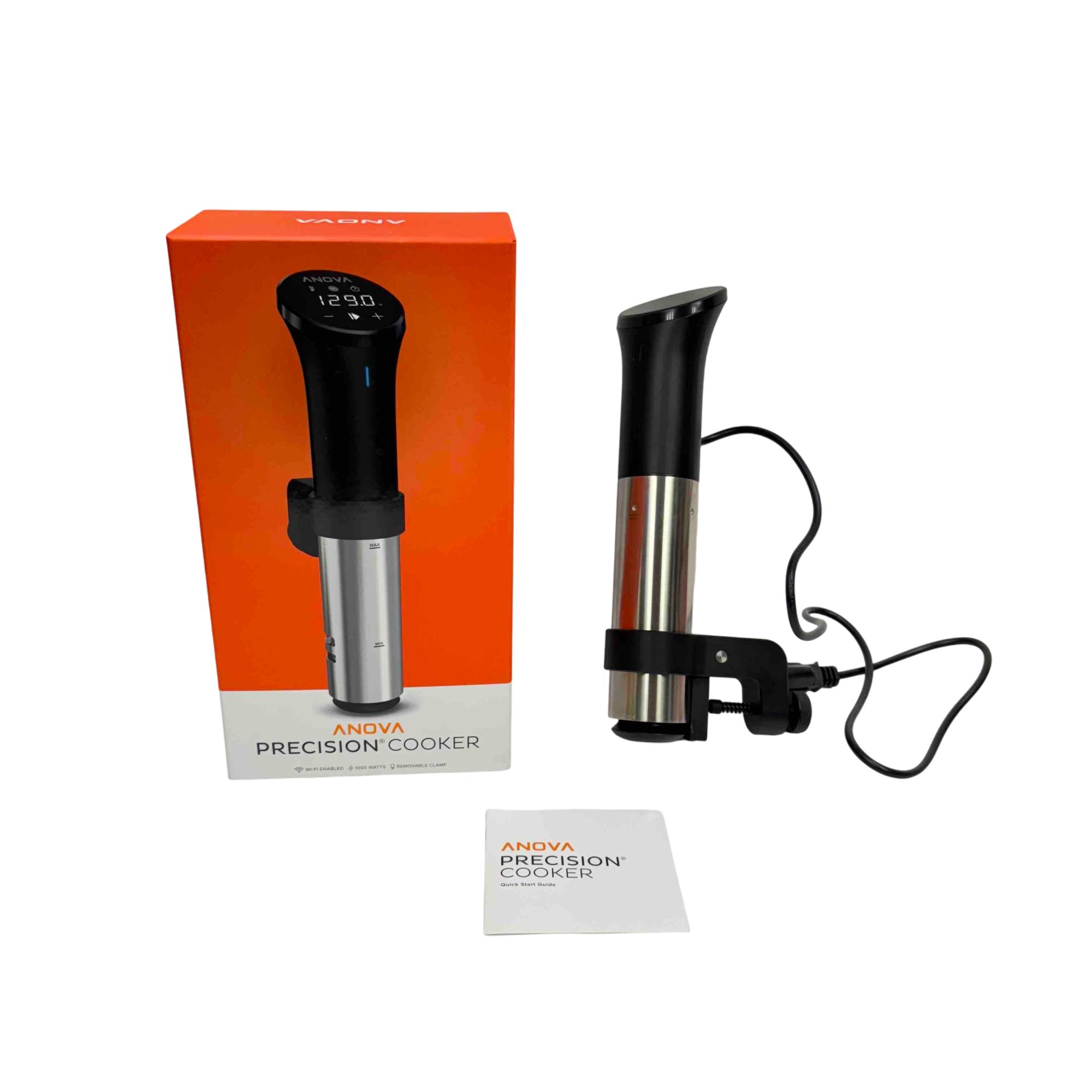 Transform your home cooking with the Anova Precision Cooker, a top-of-the-line sous vide immersion circulator that guarantees perfect results every time. With Bluetooth connectivity and a powerful 1000-watt heating element, this device brings professional cooking precision to your kitchen, ensuring meats, vegetables, and more are cooked to perfection. Lightly used and in excellent condition, its the perfect companion for achieving restaurant-quality dishes at home.