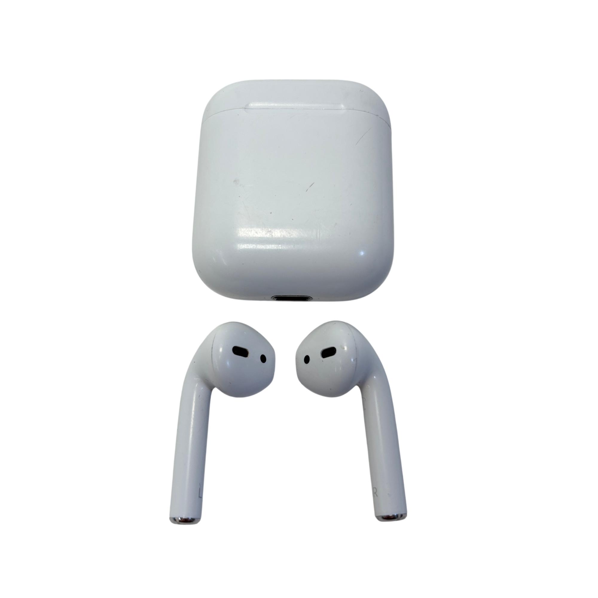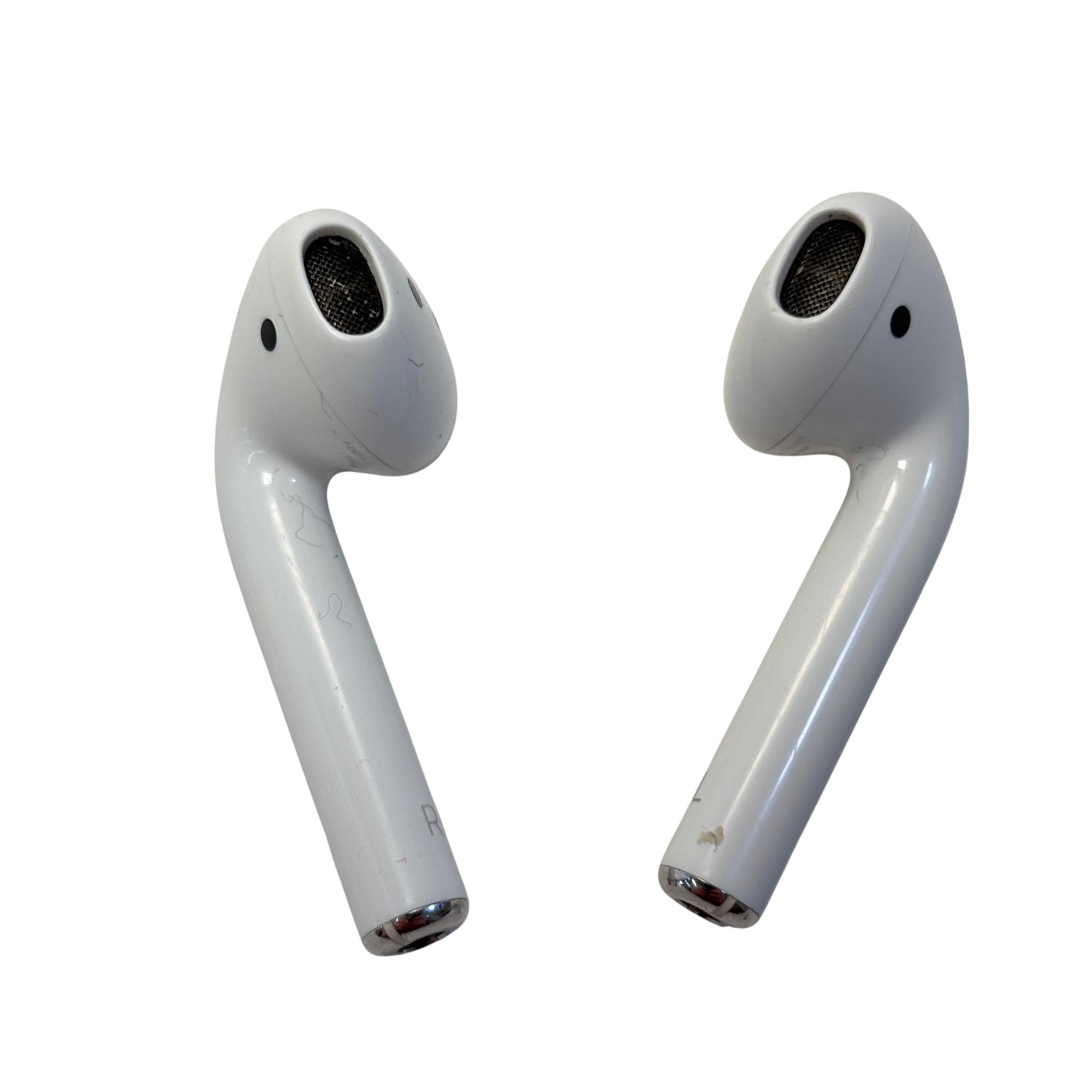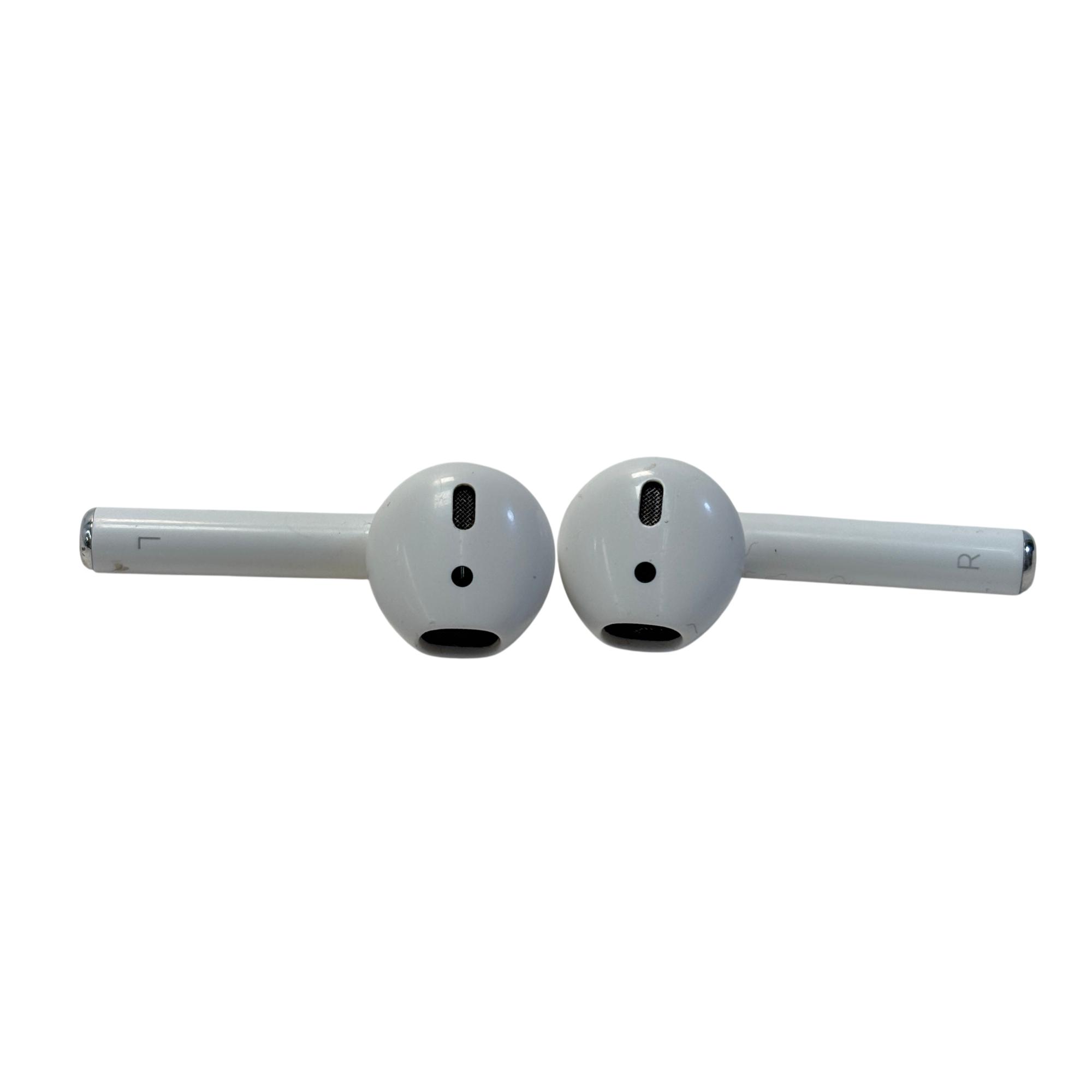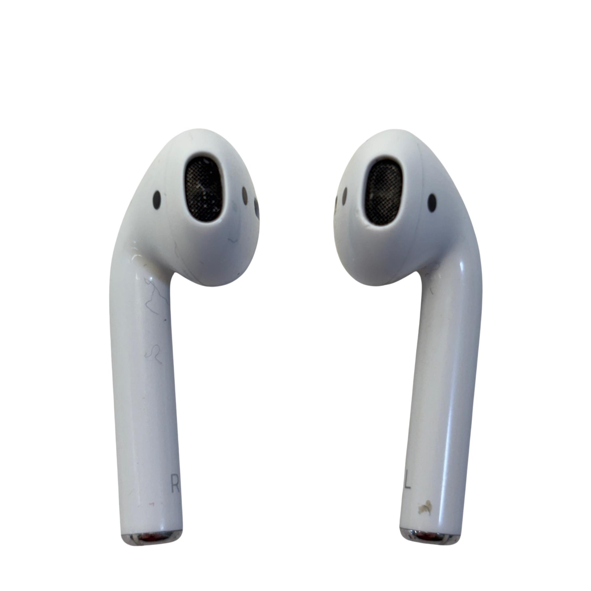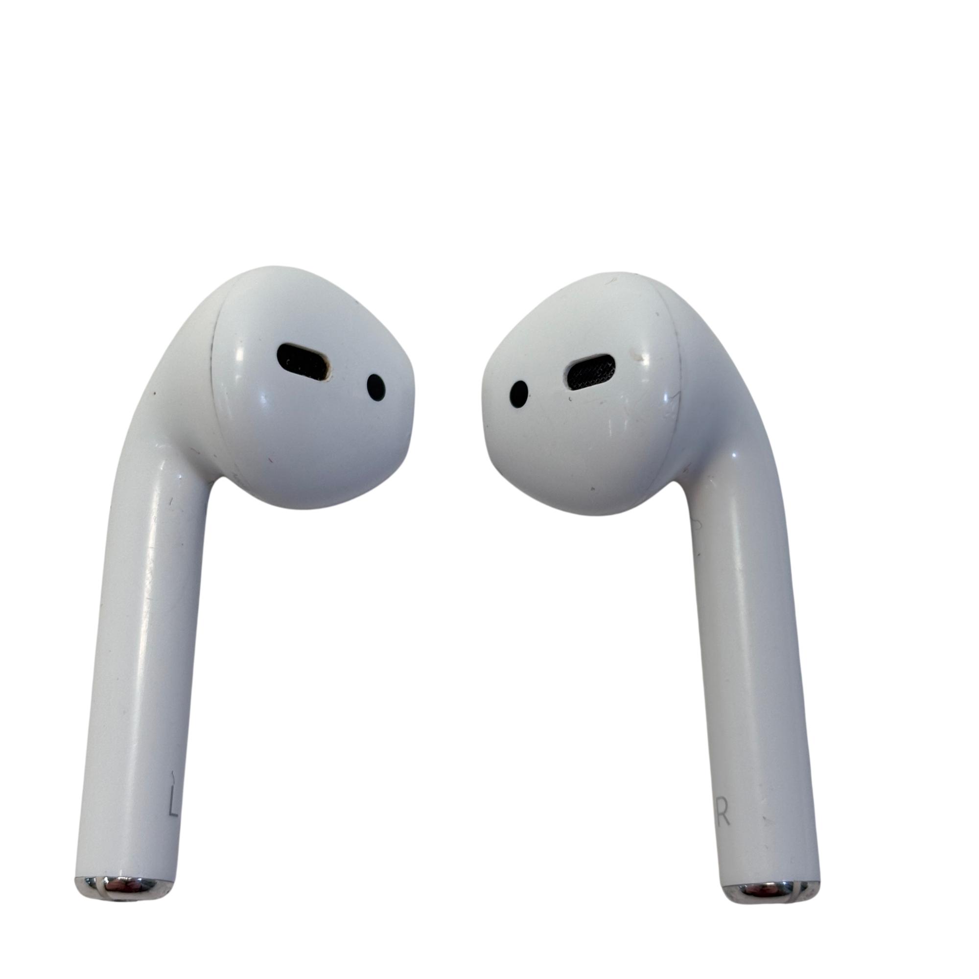 The Apple AirPods 1st Generation feature a sleek white design with ergonomic earbuds that deliver clear, high-quality sound and seamless wireless connectivity. These wireless earphones offer a comfortable fit and easy pairing for an enhanced audio experience on the go.