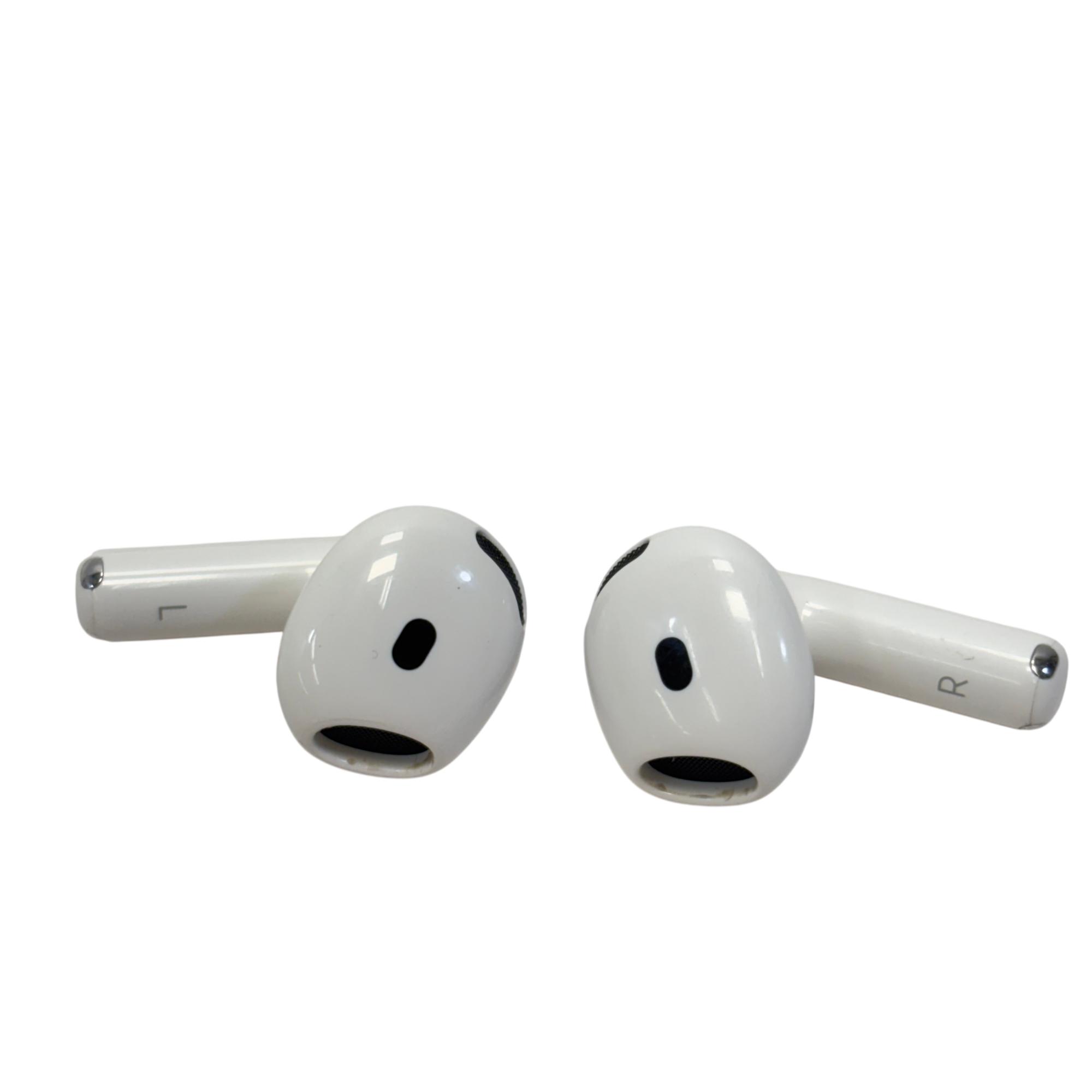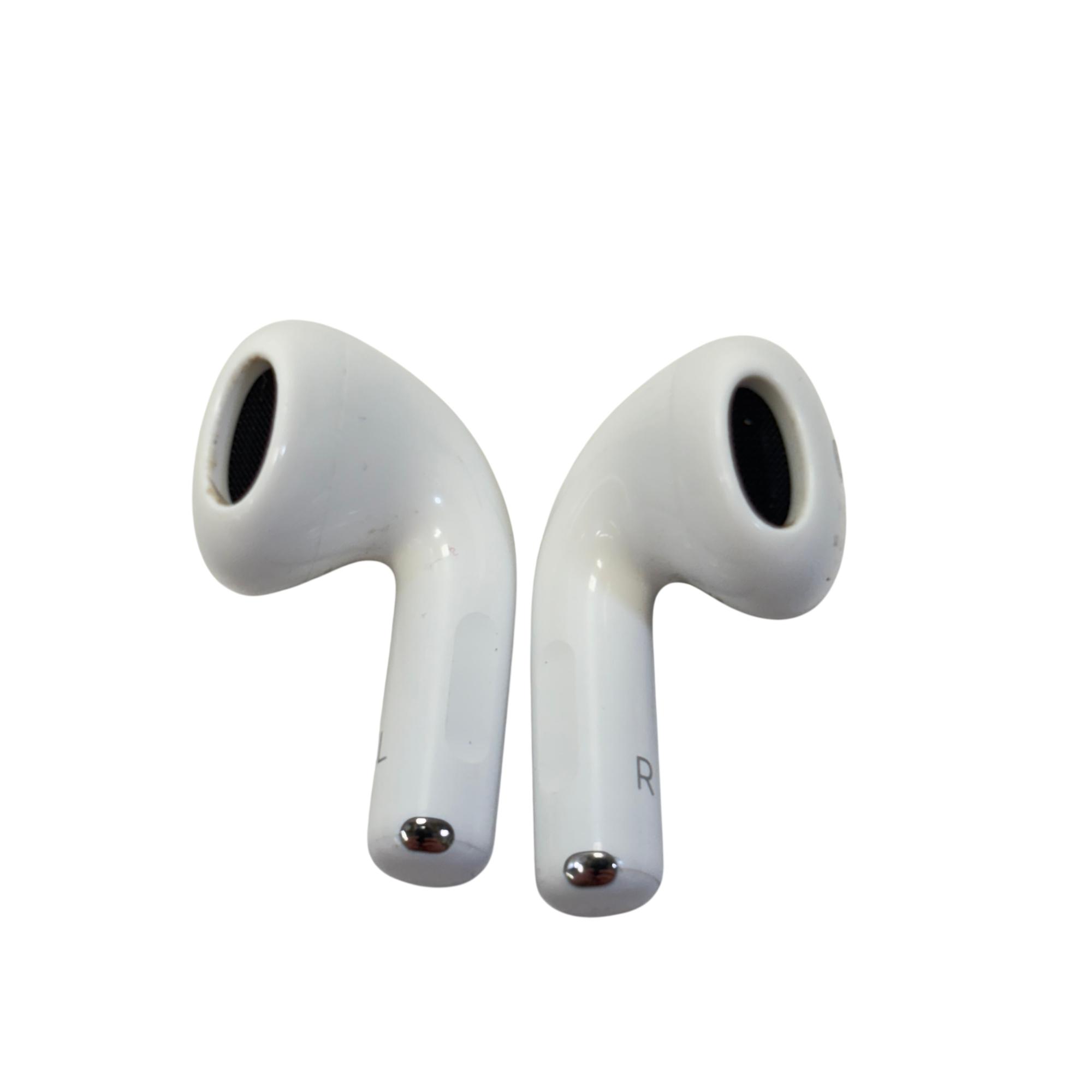 The Apple AirPods 3rd Generation provide an advanced wireless audio experience with a sleek white design and ergonomic fit. Featuring a compact form with clearly marked left and right earbuds, these earbuds deliver high-quality sound optimized for everyday use and seamless Bluetooth connectivity.