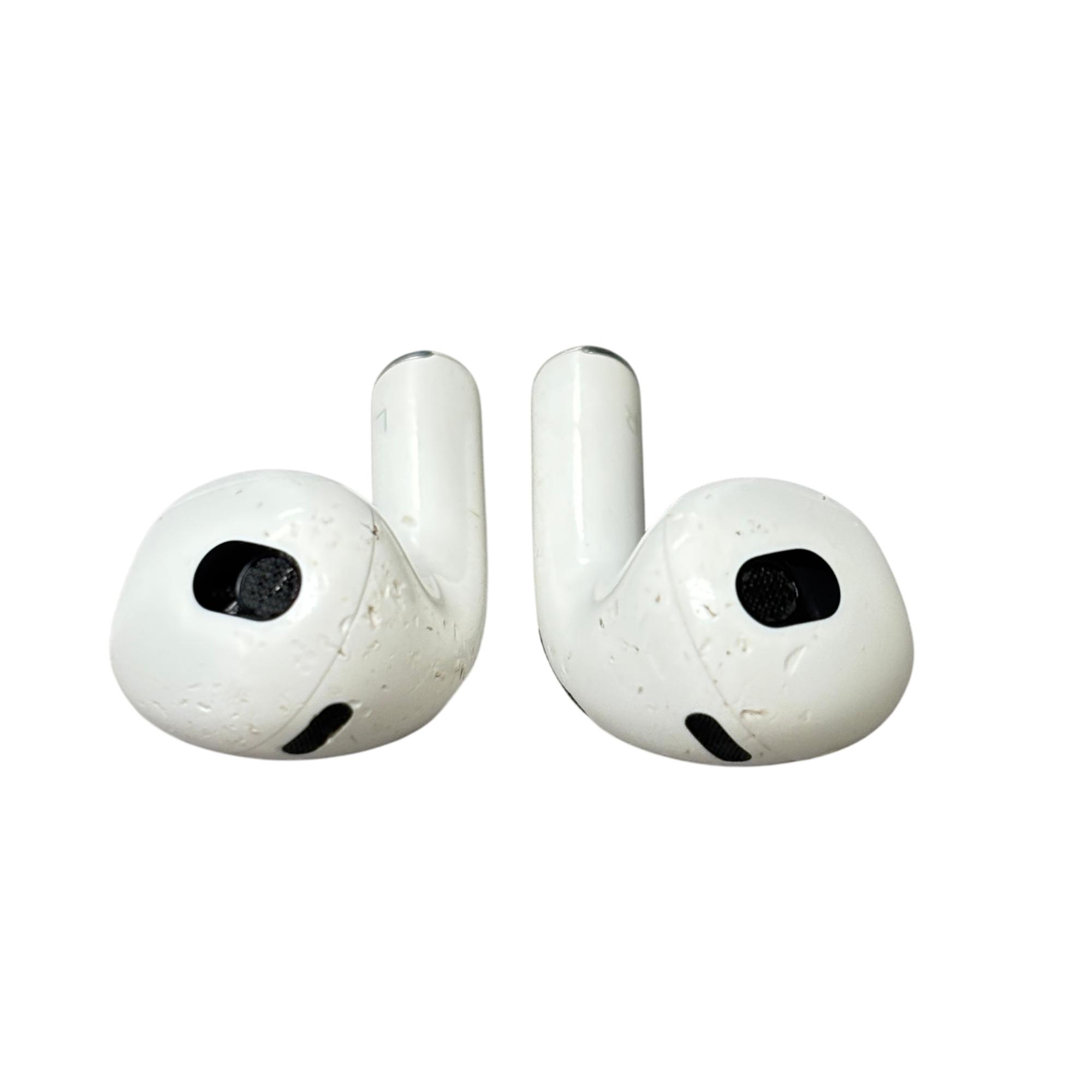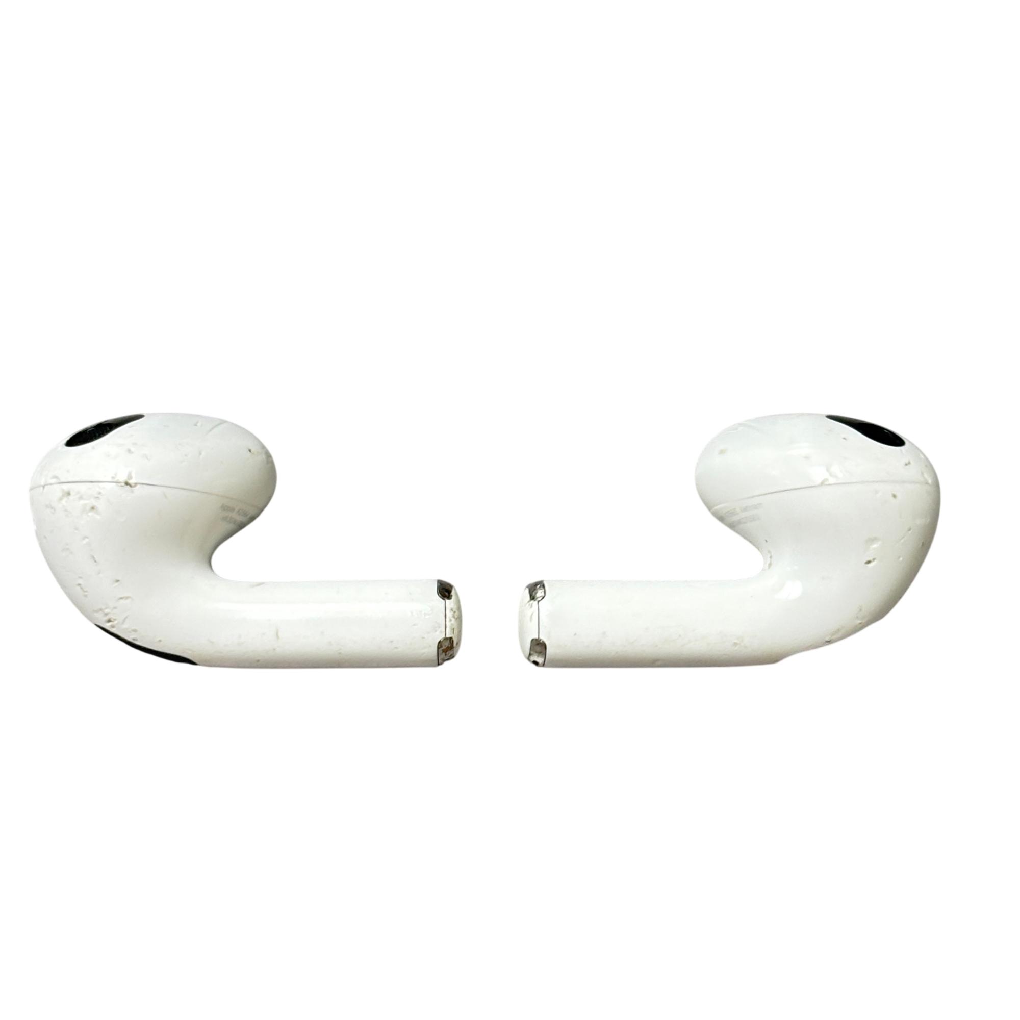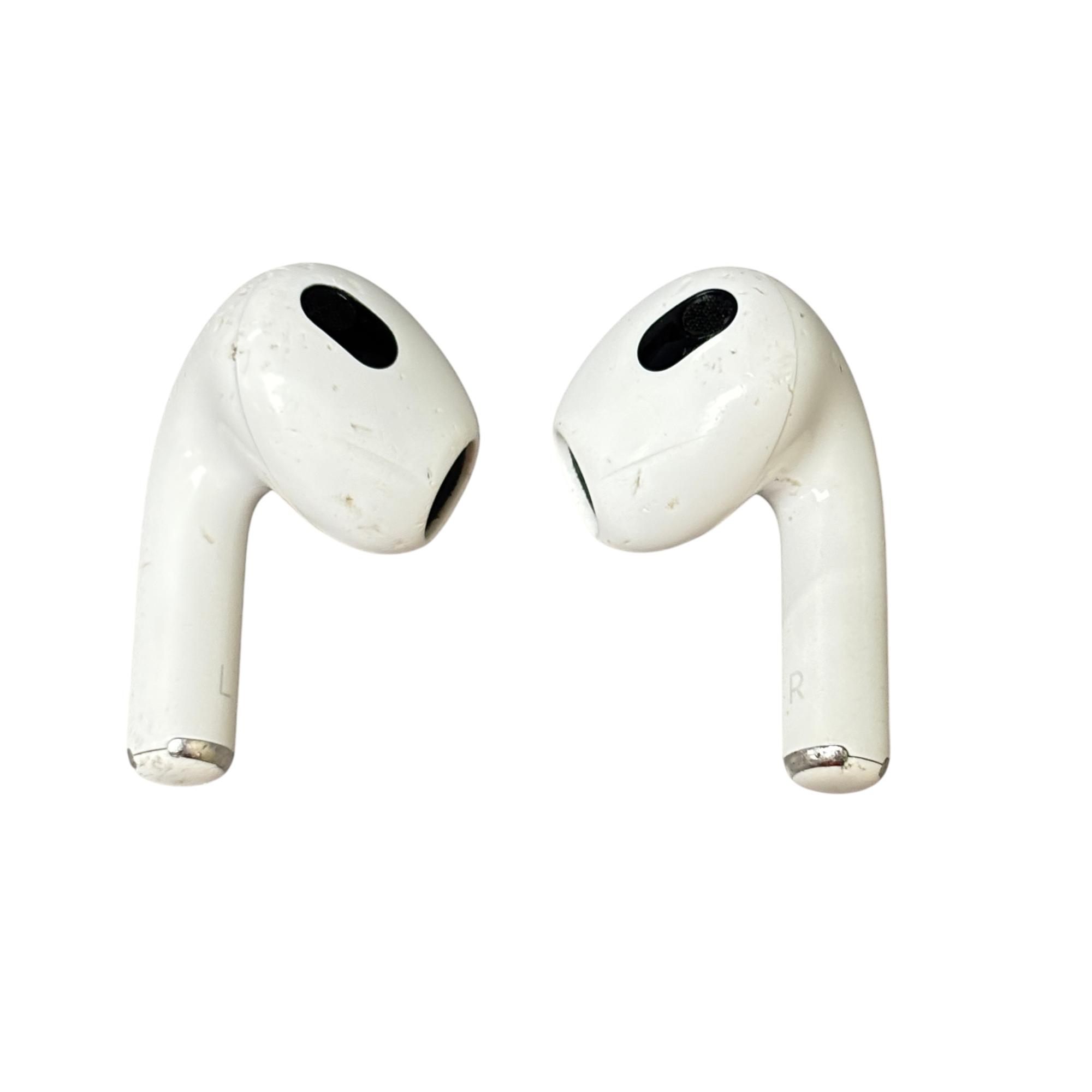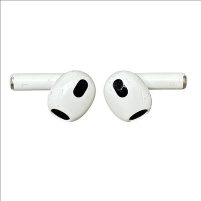 These Apple AirPods 3rd Generation deliver immersive, high-quality wireless audio with a comfortable, ergonomic design that fits securely in the ear. Featuring advanced spatial audio technology and adaptive EQ, these earbuds provide an enhanced listening experience with rich, detailed sound and dynamic head-tracking. Their sleek white finish and compact form factor make them ideal for everyday use and on-the-go convenience.