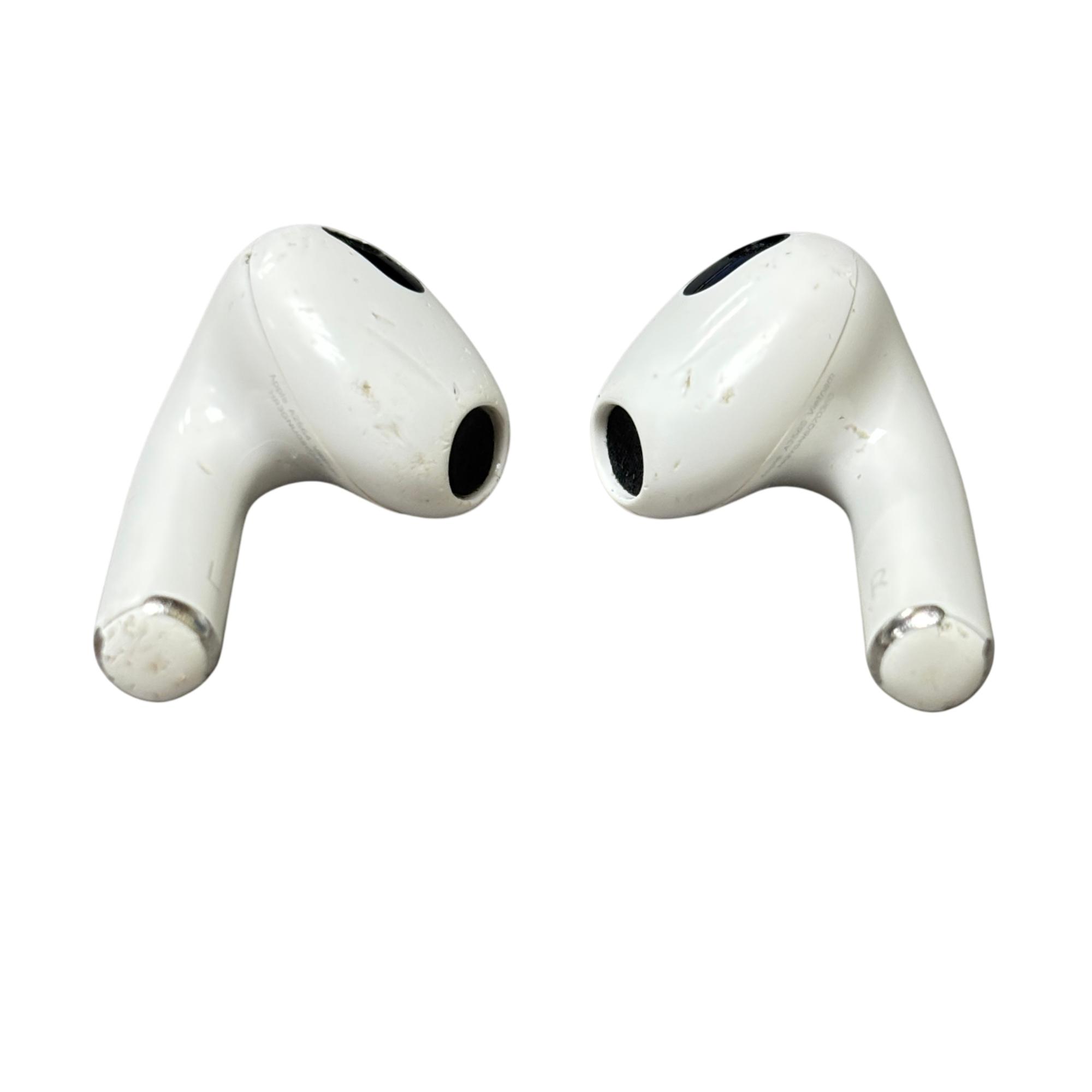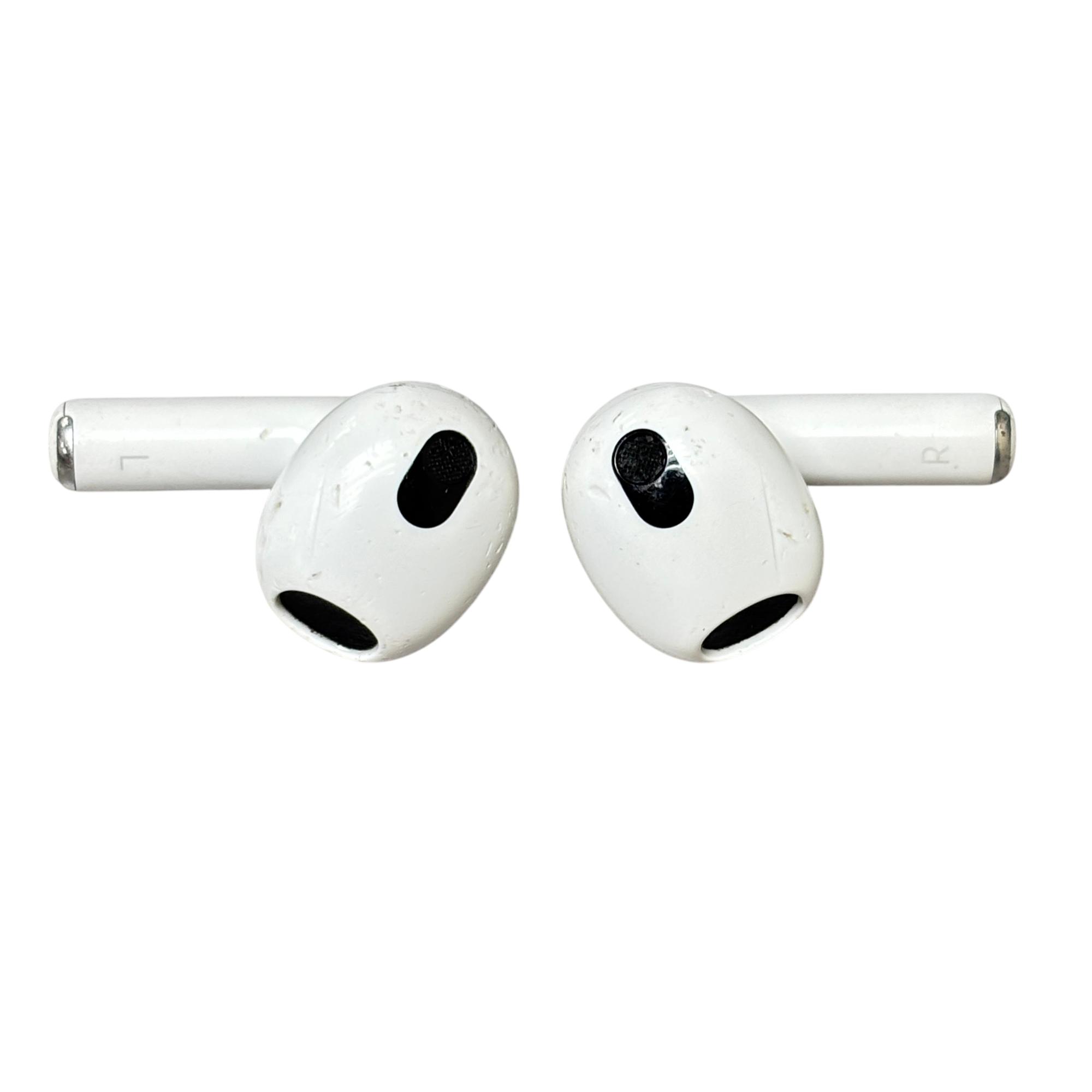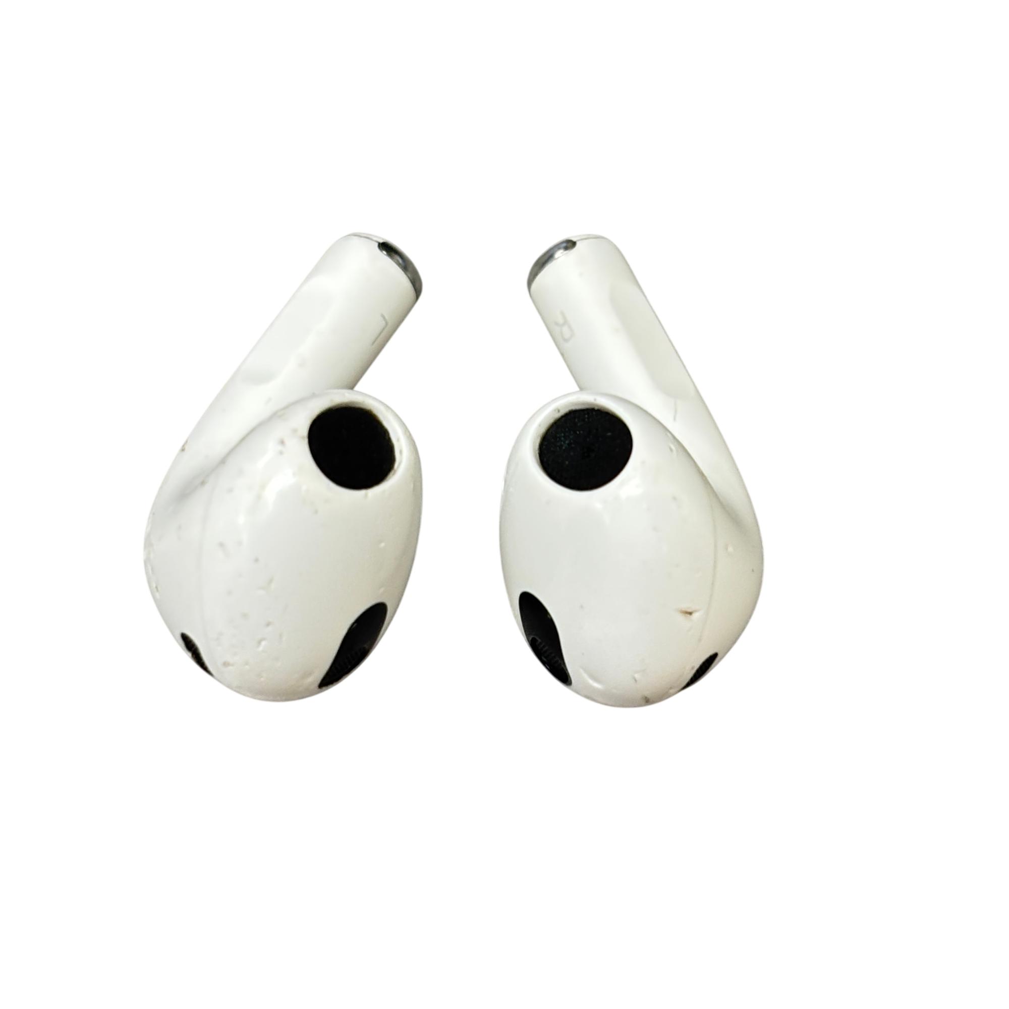 These Apple AirPods 3rd Generation deliver immersive, high-quality wireless audio with a comfortable, ergonomic design that fits securely in the ear. Featuring advanced spatial audio technology and adaptive EQ, these earbuds provide an enhanced listening experience with rich, detailed sound and dynamic head-tracking. Their sleek white finish and compact form factor make them ideal for everyday use and on-the-go convenience.