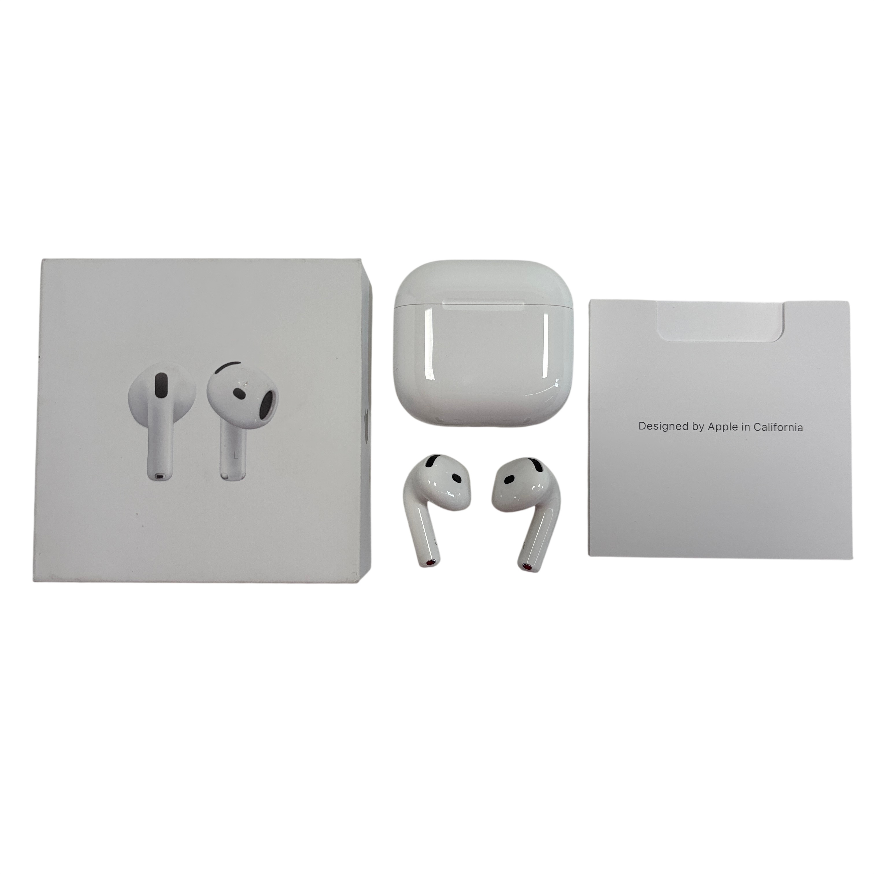 The Apple AirPods 4 A3050/A3053 White Wireless Earbuds MXP63LL/A deliver high-quality sound and seamless connectivity in a compact, lightweight design. These earbuds come with a sleek charging case for convenient on-the-go power and feature Bluetooth wireless technology for easy pairing with Apple devices.