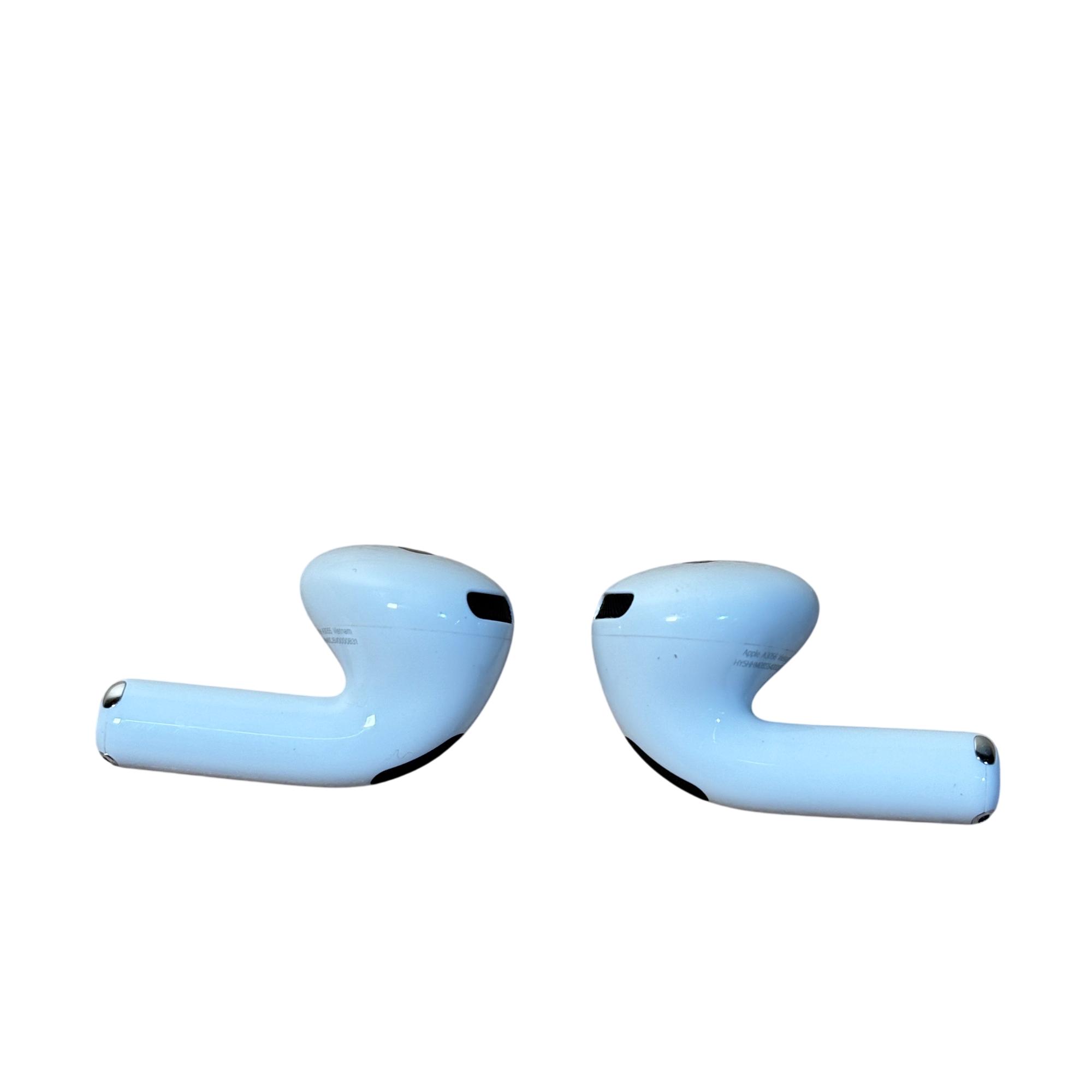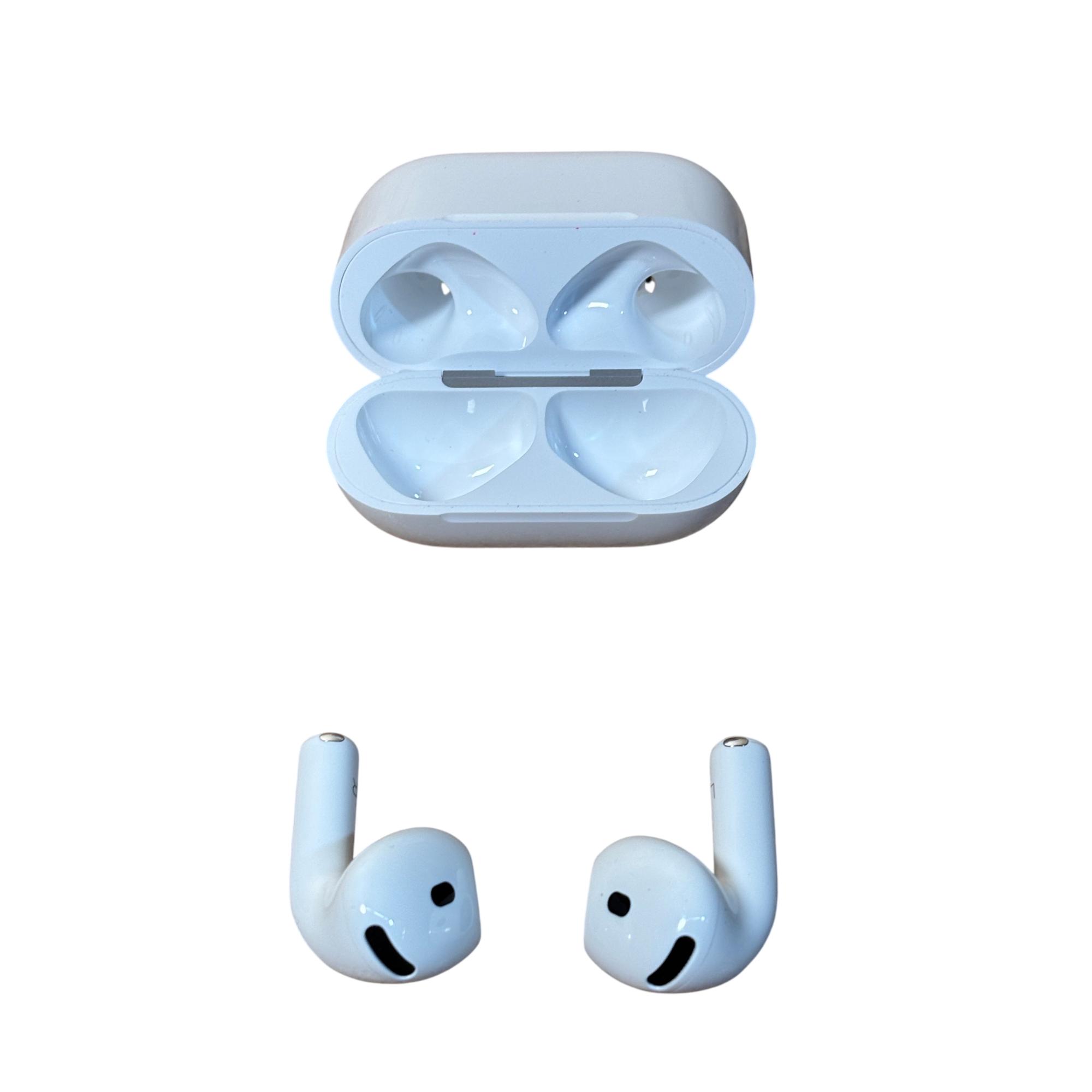 Apple AirPods 3rd Generation (Model A3059) True Wireless Earbuds with Charging Case feature an ergonomic, contoured design that offers a comfortable and secure fit for all-day wear. These wireless earbuds deliver rich, high-quality sound with spatial audio support and dynamic head tracking for an immersive listening experience. They include sweat and water resistance, making them suitable for workouts and outdoor use.