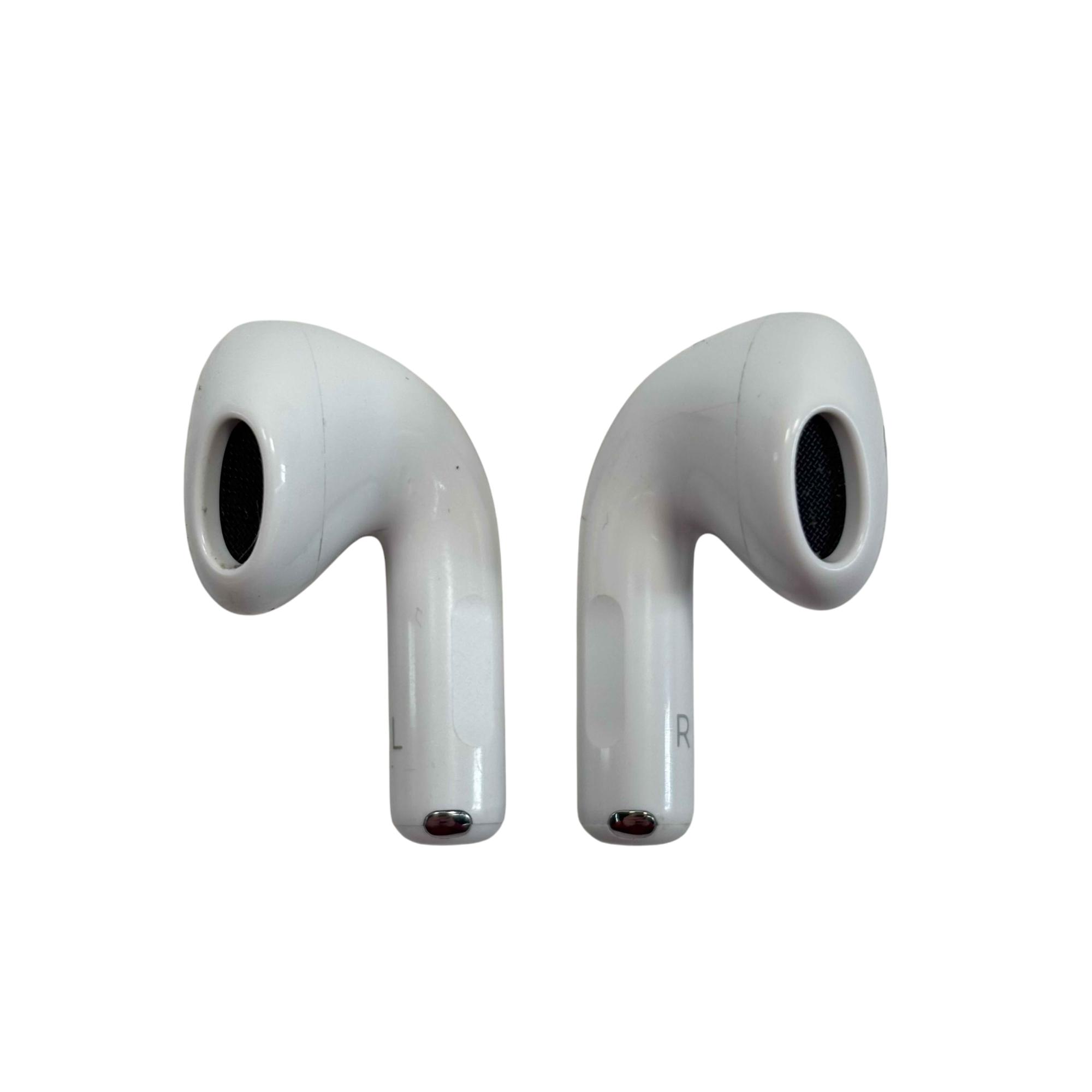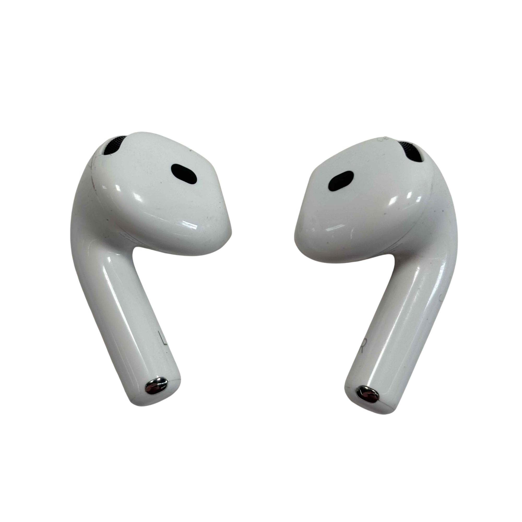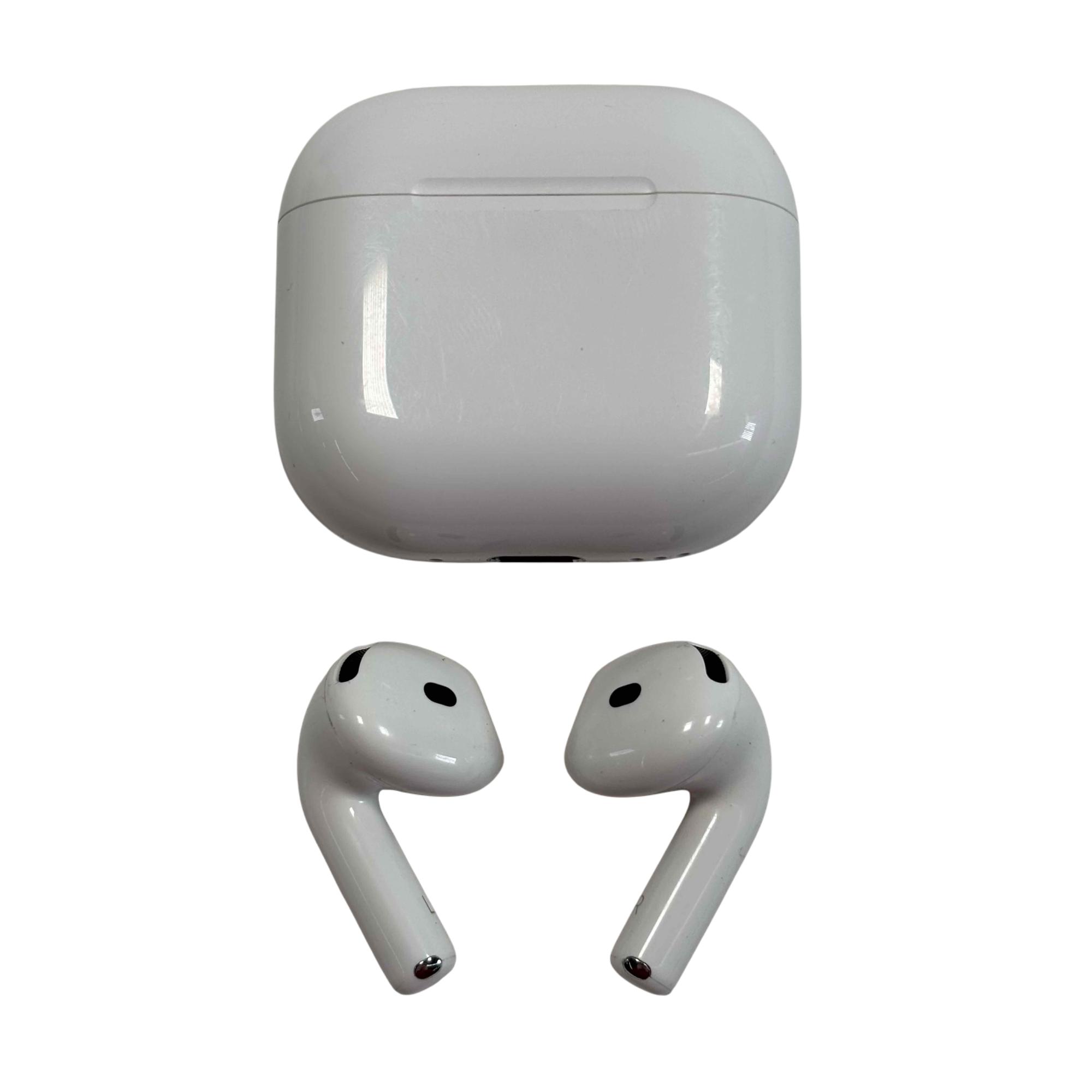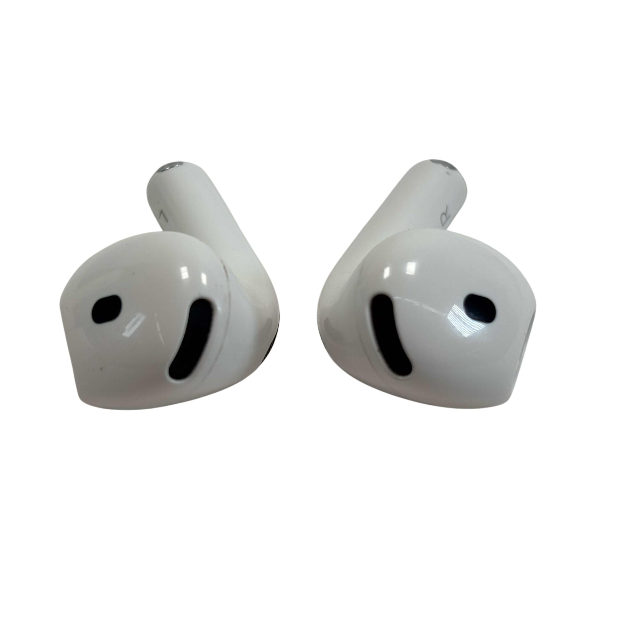 These Apple AirPods 4 (ANC) earbuds feature a sleek white design with an ergonomic shape that ensures a comfortable fit. These wireless earbuds deliver clear, high-quality audio and utilize advanced technology for seamless Bluetooth connectivity. Designed for everyday use, they offer an improved sound experience.