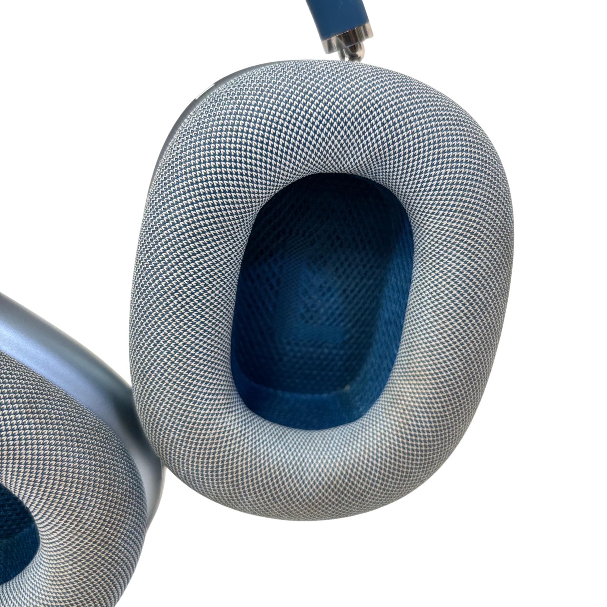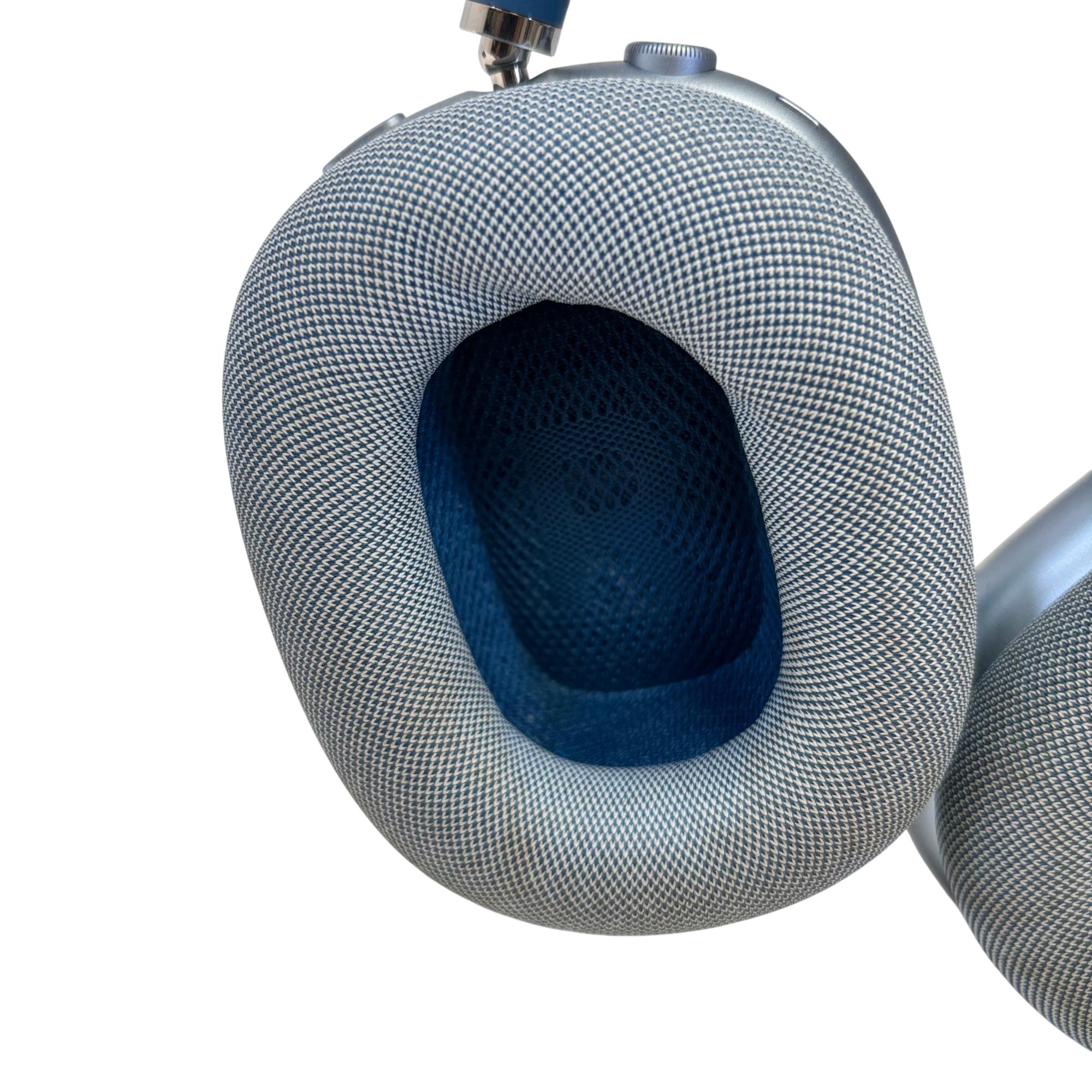 The Apple AirPods Max Over-Ear Headphones in Sky Blue feature a premium build with stainless steel and anodized aluminum components paired with a breathable knit mesh canopy. Designed to deliver immersive high-fidelity sound, these headphones combine dynamic drivers with computational audio for rich, detailed audio performance and active noise cancellation. The sleek sky blue finish adds a modern aesthetic to a comfortable, over-ear design suitable for extended listening sessions.
