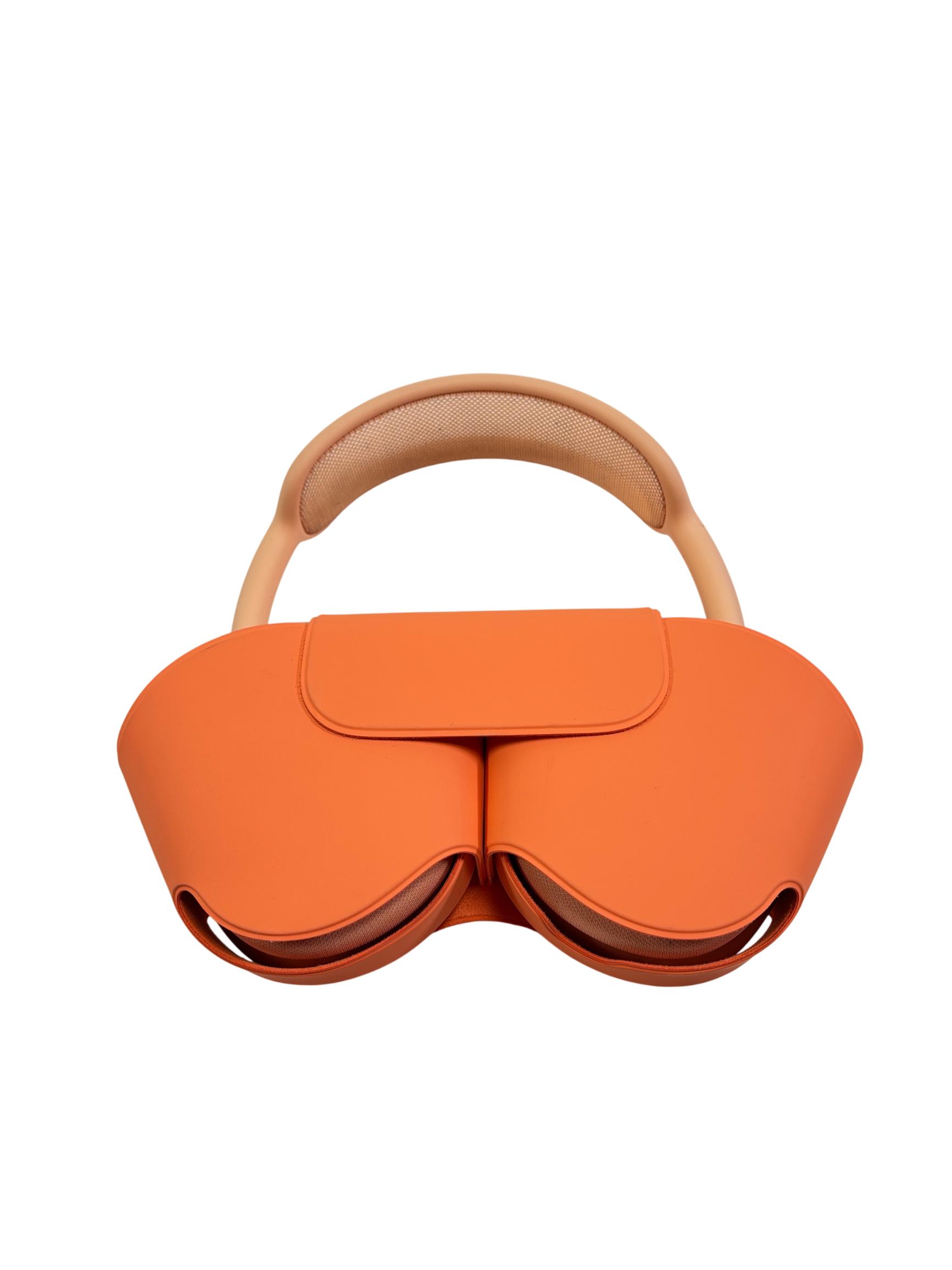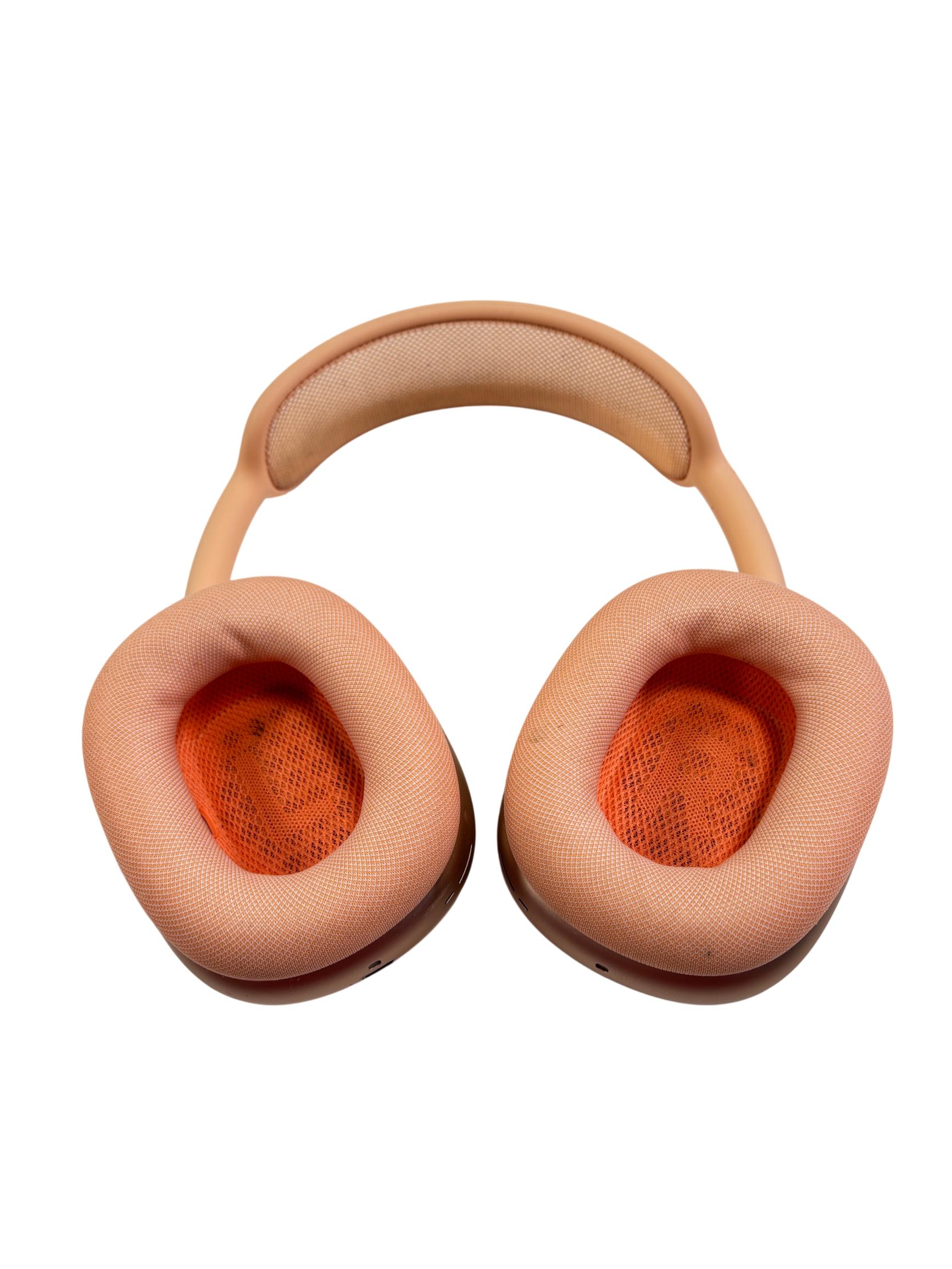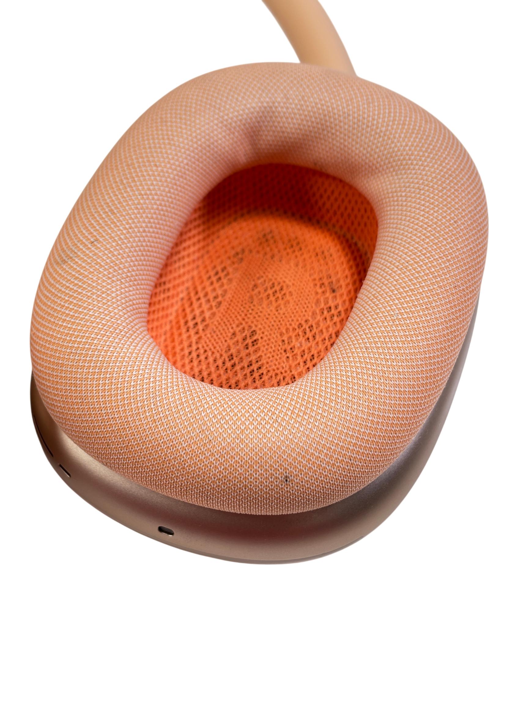 Apple AirPods Max (A3184) wireless headphones combine vibrant orange with a premium mesh design that enhances comfort and breathability. These on-ear headphones deliver high-fidelity audio with precise sound isolation, complemented by a sleek, modern aesthetic perfect for fashion-conscious users. Engineered for superior performance, they feature a lightweight build and ergonomic cushions to provide extended wearability.