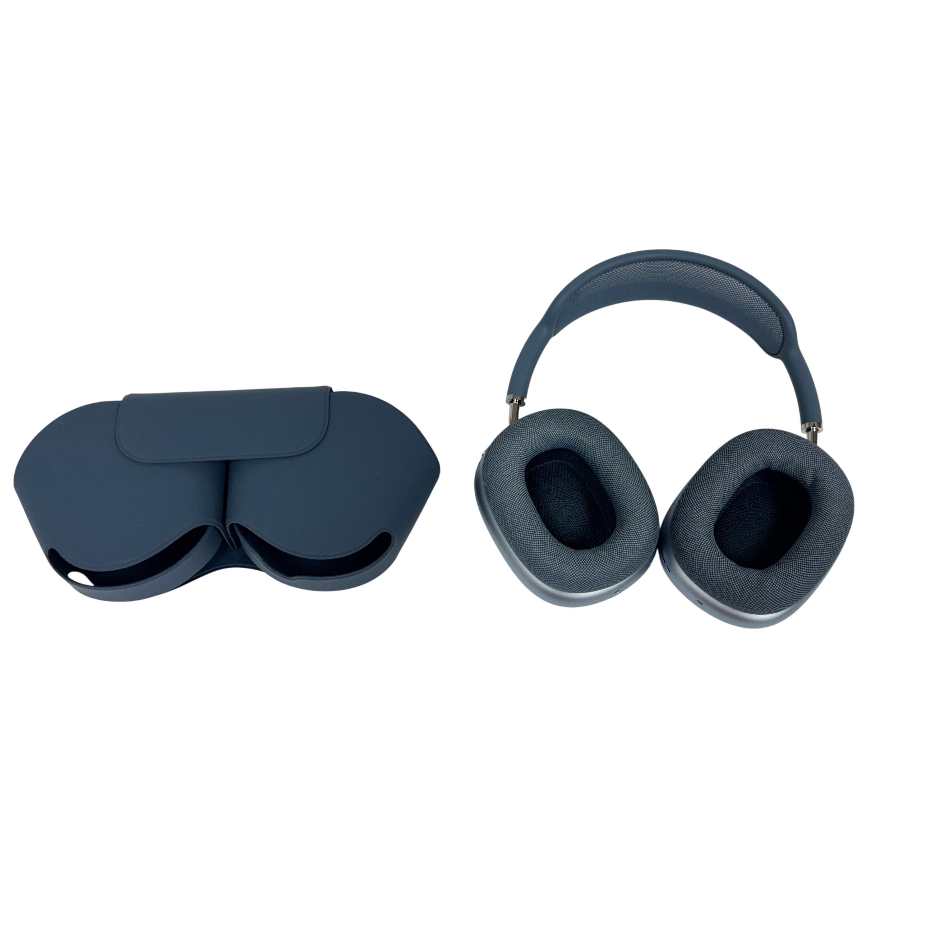 These Apple AirPods Max Over-Ear Headphones (Model A3184) deliver premium high-fidelity audio with active noise cancellation and spatial audio support. Featuring a sleek silver aluminum design with a comfortable blue mesh headband and ear cushions, these headphones provide immersive sound and precise control via the digital crown. The included silicone Smart Case protects the headphones. Ideal for audiophiles and Apple ecosystem users seeking top-tier wireless listening experience.