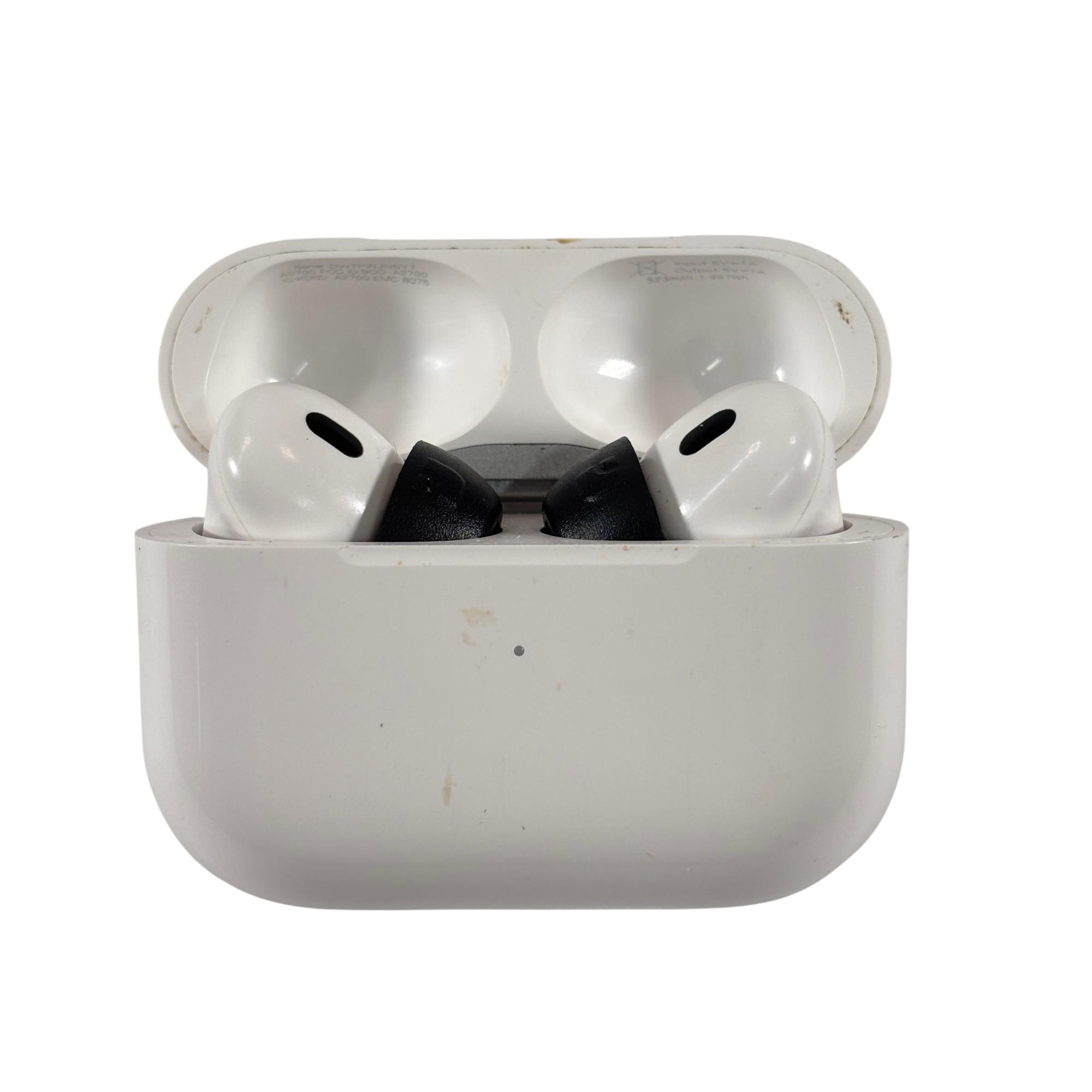 Apple AirPods Pro 2 A2618 Lightning noise cancelling Bluetooth earbuds deliver immersive sound with clear highs and deep bass, supported by advanced audio processing for enhanced listening and call quality. Active Noise Cancellation helps reduce background noise, while Transparency mode lets you hear your surroundings when needed. Conversation Awareness automatically lowers media volume when you begin speaking with someone nearby.