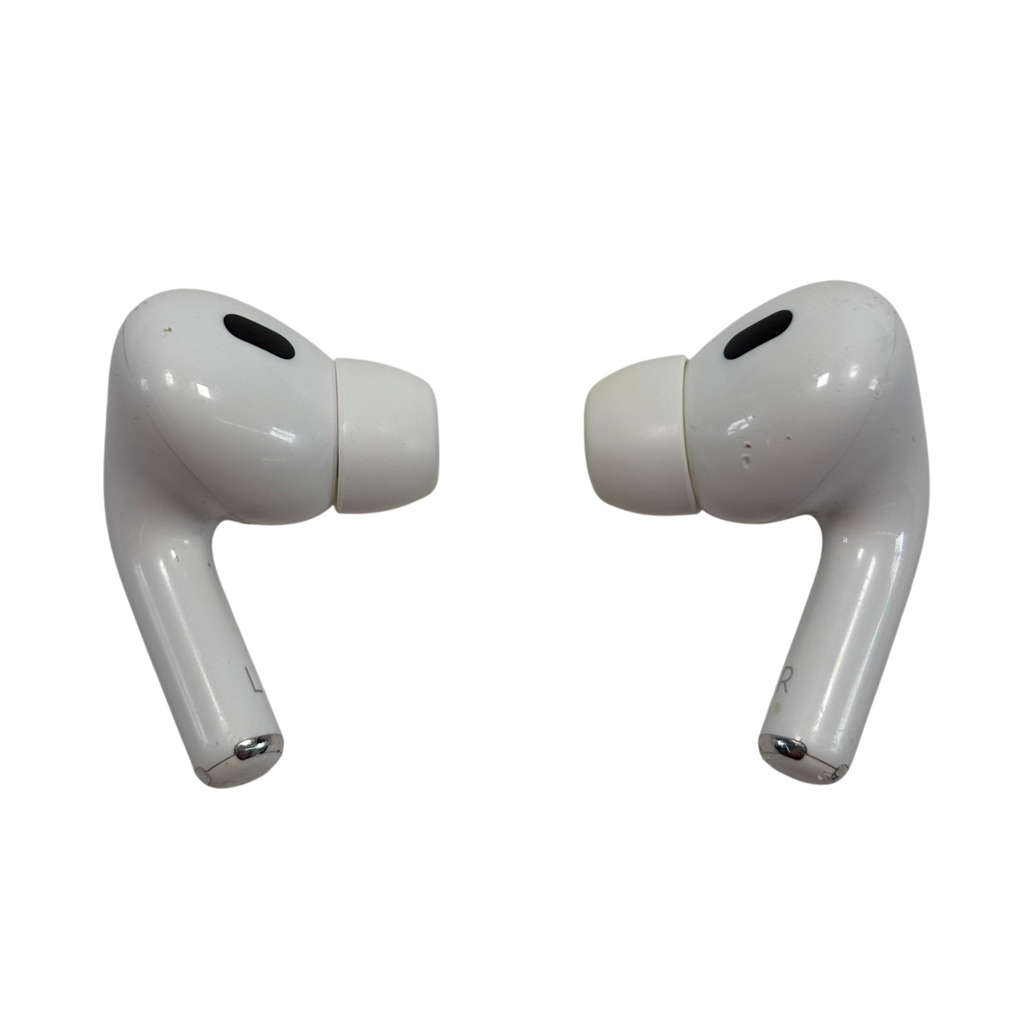 The Apple AirPods Pro 2 White Wireless Earbuds A3047/A3048 deliver advanced active noise cancellation and adaptive transparency for immersive sound and situational awareness. These wireless earbuds feature a MagSafe-compatible charging case designed for convenient wireless charging and rapid connectivity. Enhanced sound quality and spatial audio technology provide a premium listening experience on the go.