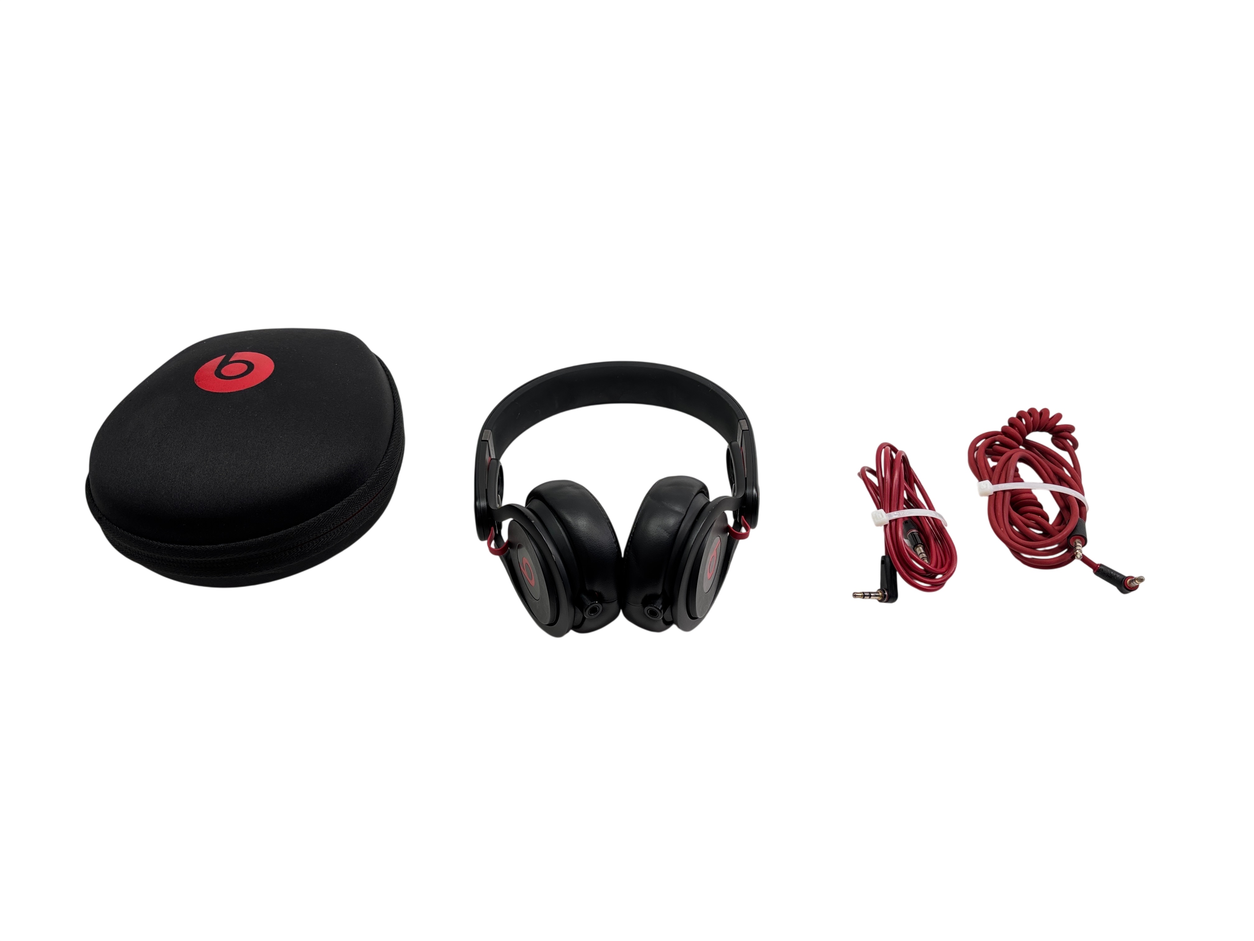 Apple Beats MIXR Headphones (Model 8100003400) are professional-grade over-ear headphones designed for DJs and audiophiles seeking high-quality sound and durability. Featuring a foldable design with comfortable ear cushions and a detachable 3.5mm audio cable, these headphones provide excellent passive noise isolation and portability. Included is a protective carrying case for easy transport. Ideal for studio monitoring, DJing, or everyday listening, the Beats MIXR delivers powerful sound with a sleek black and red aesthetic.