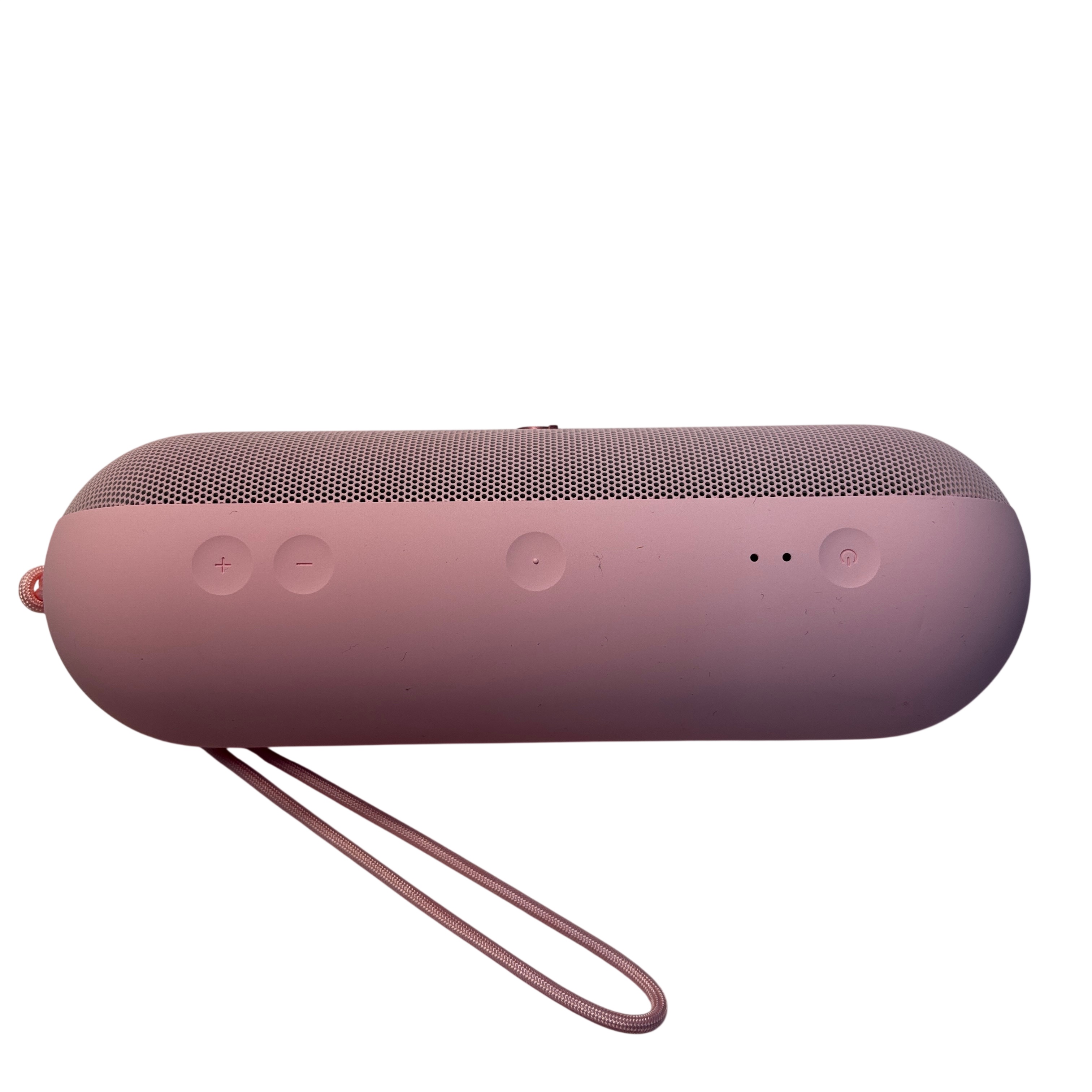 The Apple Beats Pill+ Portable Bluetooth Speaker offers high-quality wireless audio with a rechargeable lithium-ion battery for on-the-go use. This compact speaker features Bluetooth connectivity, easy-to-access volume controls, and a convenient carrying strap for portability. With power input of 15V 3A and output of 5V 1.5A, it delivers reliable performance in a sleek, durable design ideal for music lovers seeking style and convenience.