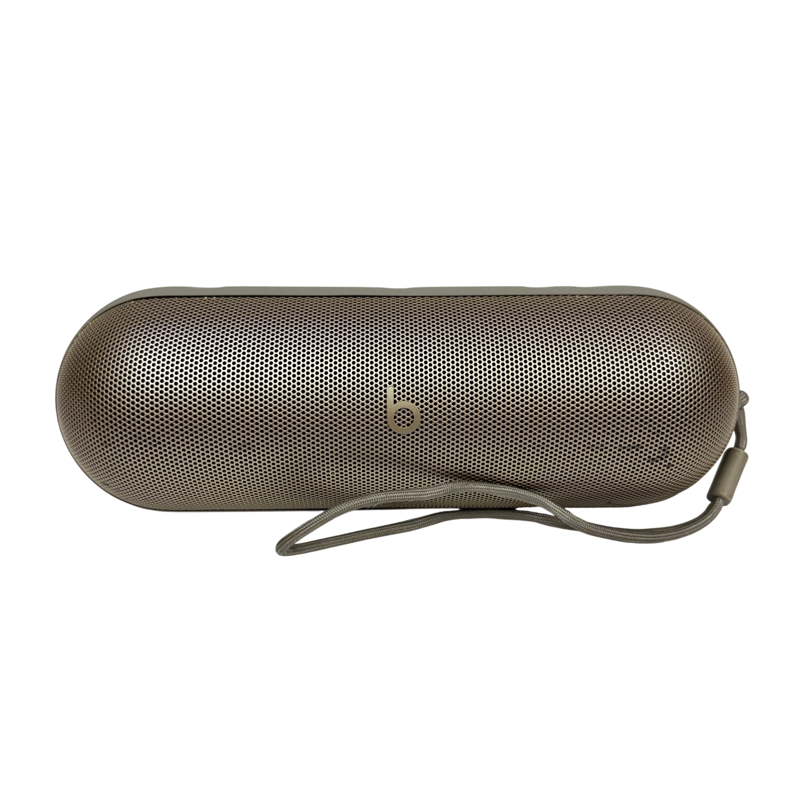 This Apple Beats Pill Portable Bluetooth Speaker (Model A3211) delivers high-quality wireless audio in a compact, portable design. Featuring Bluetooth connectivity and a built-in rechargeable lithium-ion battery. The speaker is protected by durable silicone edges and includes a wrist strap for easy carrying. Ideal for personal use or small gatherings, the Beats Pill combines style and functionality in a sleek gold finish.