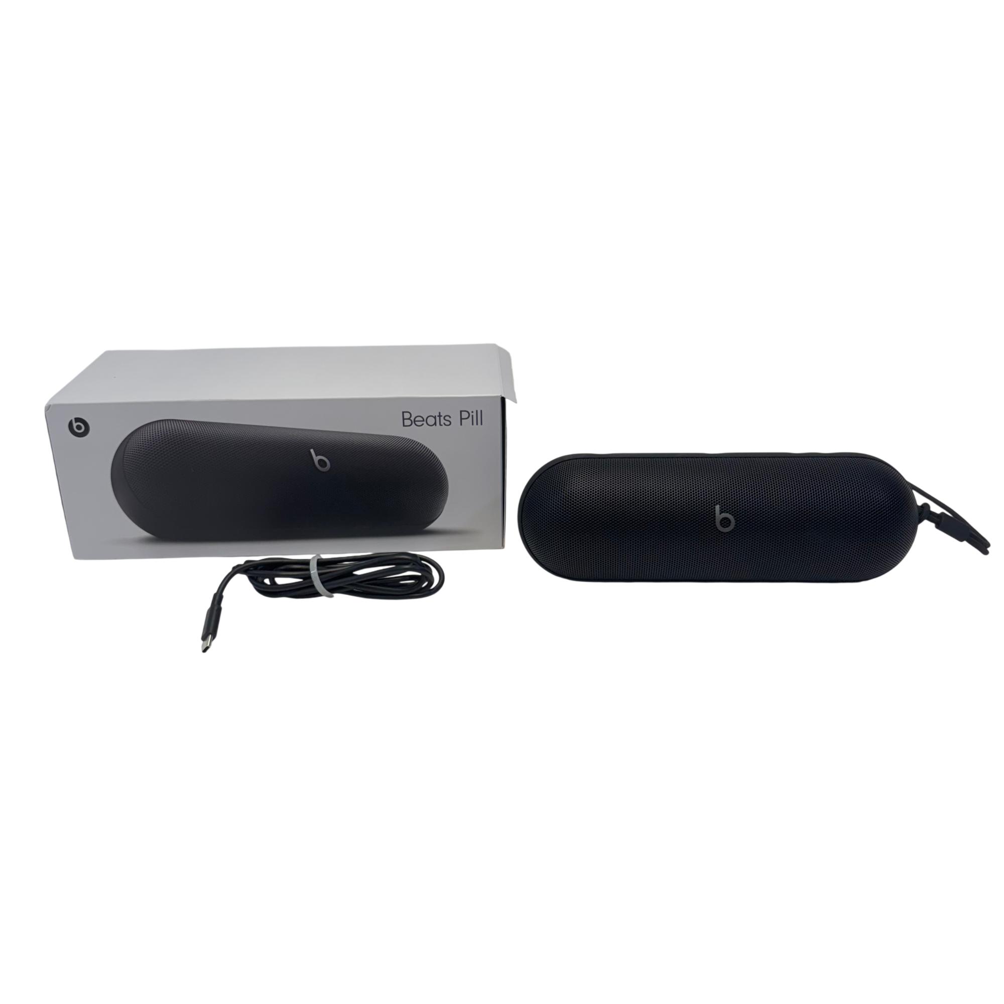 The Apple Beats Pill Portable Bluetooth Speaker delivers high-quality wireless audio with a sleek rectangular design and a striking matte black finish. Engineered for seamless Bluetooth connectivity, it features a built-in microphone for hands-free calls and compatibility across Apple and Android devices. Its compact form factor makes it ideal for on-the-go audio experiences while maintaining powerful sound performance.