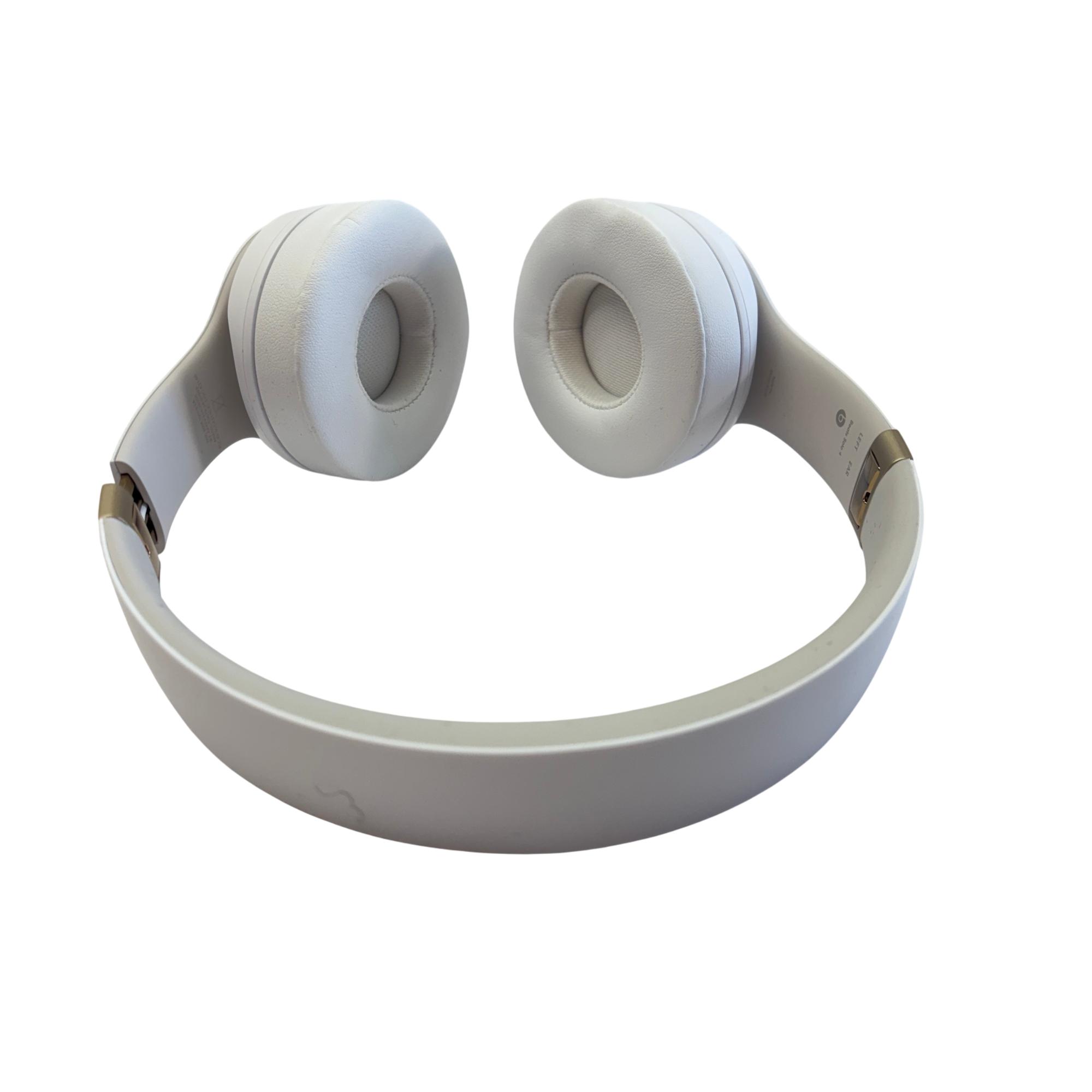 Apple Beats Solo 4 MC2M4LLA Wireless On-Ear Headphones feature a sleek white design accented with gold trim, offering a premium and stylish audio solution. These wireless headphones provide high-quality sound with a comfortable on-ear fit, making them ideal for immersive music listening and everyday use.