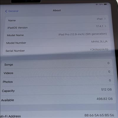 Apple iPad Pro 12.9-inch 5th Generation (Model MHNL3LL/A) features a stunning Liquid Retina XDR display and powerful Apple M1 chip, delivering exceptional performance for professional and creative tasks. This tablet comes with 512 GB of storage and runs on iPadOS 17.4.1, providing a smooth and versatile user experience. The device includes advanced dual rear cameras with a LiDAR scanner for enhanced AR capabilities and high-quality imaging. Its slim and lightweight design, measuring approximately 0.25 inches thick and weighing 1.5 pounds, makes it highly portable for on-the-go use.