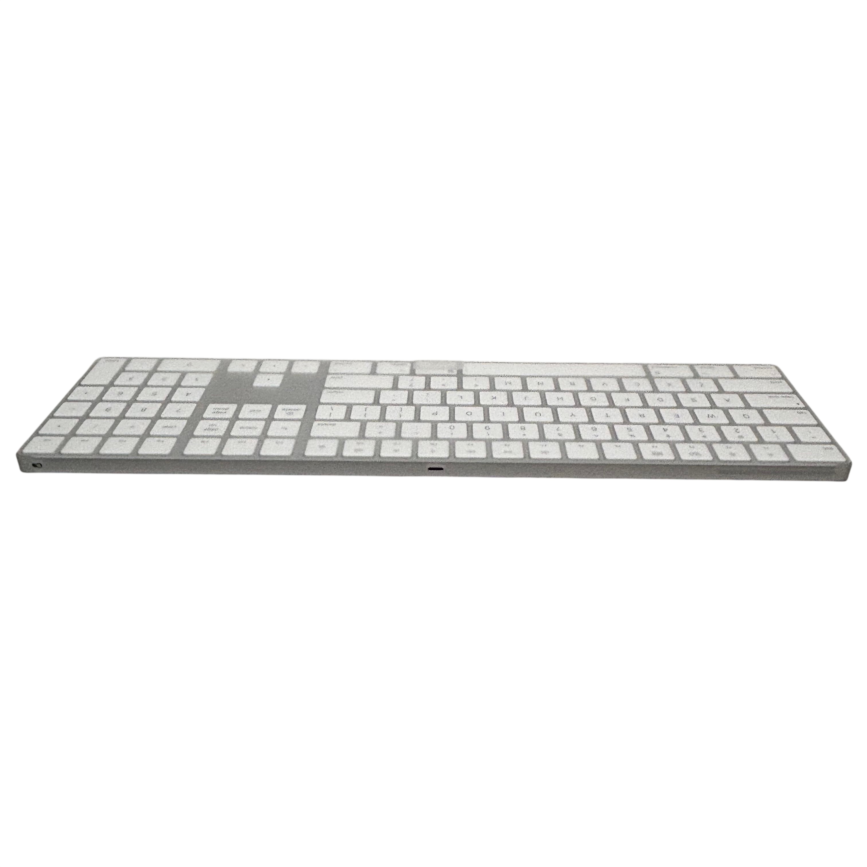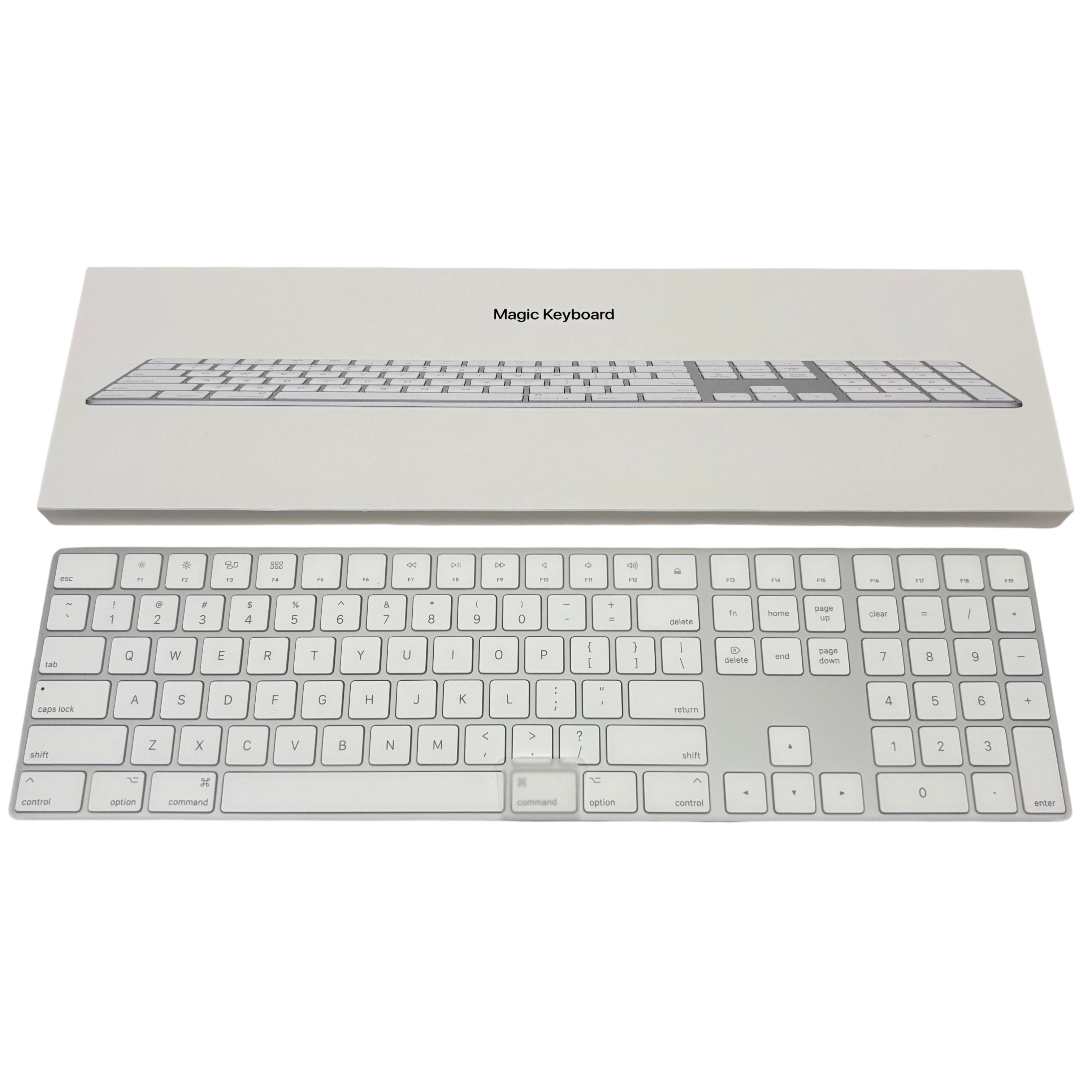 Apple Magic Keyboard with Numeric Keypad (Model MQ052LL/A) is a sleek, full-size wireless keyboard designed for Mac users. Featuring Bluetooth connectivity and a rechargeable battery, it requires a Mac with macOS 10.12.4 or later. The keyboard includes a numeric keypad for enhanced productivity and comes with a charge cable for convenient recharging. Its slim aluminum and plastic design measures 16.67 inches in length, 4.52 inches in width, and 0.16 inches in height, weighing just 0.77 pounds, making it a stylish and portable addition to any workspace.